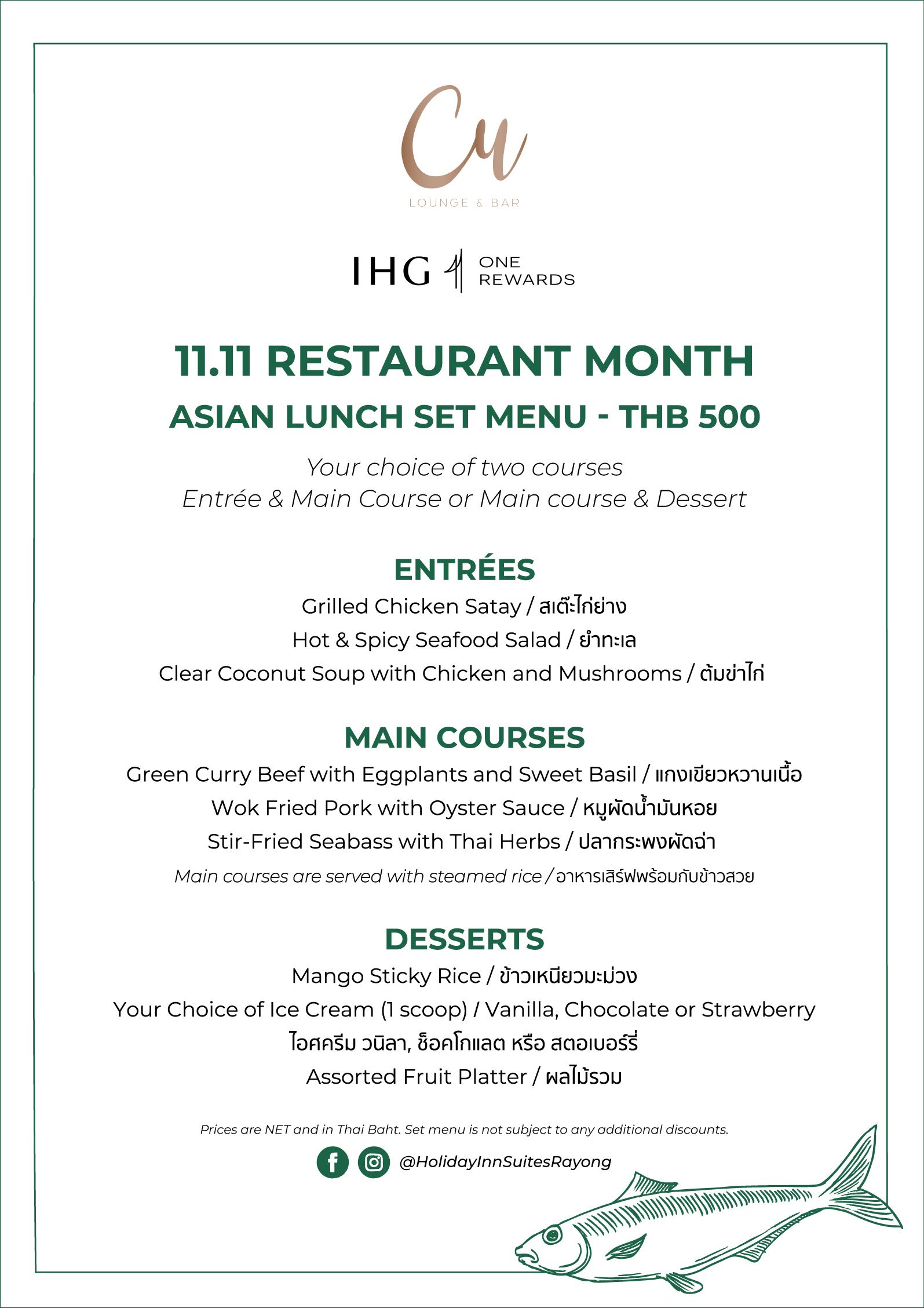 All November, IHG One Rewards' Dining Privileges Restaurant Month will bring you member-only menus at delicious promo nett prices.
