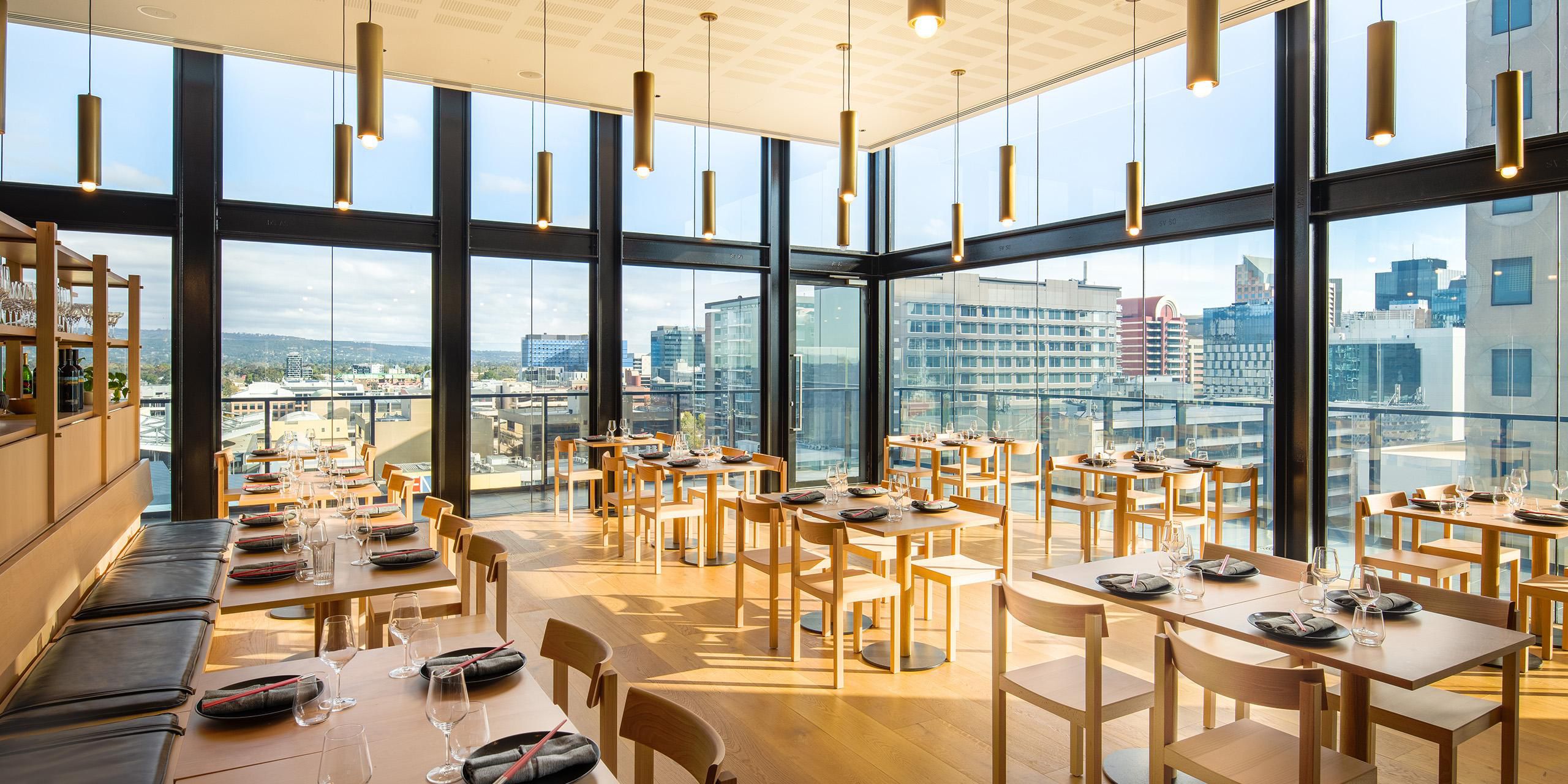 فن الآرت ديكو يلتقي بالأناقة اليابانية في الطابق 10. تناول الطعام وسط السحب مع إطلالات شاملة وقائمة طعام يابانية تضم أفضل المكونات الموسمية من جنوب أستراليا. مفتوح للإفطار والغداء والعشاء.