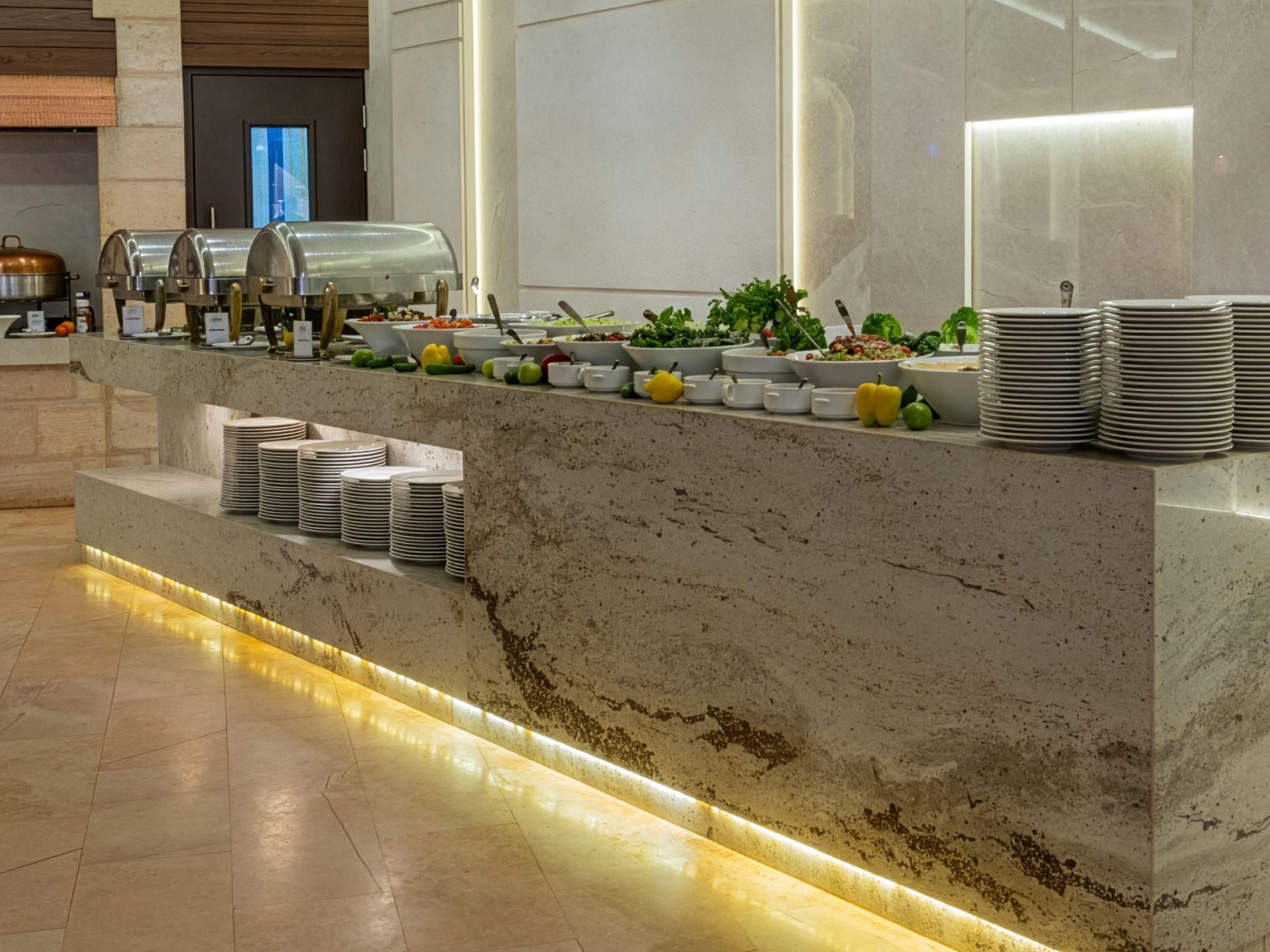 يدعوك مطعم النبطيين للاستمتاع بتجربة طعام متكاملة تمتد على مدار اليوم، من خلال قائمة مختارة بعناية تحتفي بالإرث المحلي الأصيل وتنوّع النكهات العالمية. من وجبات الإفطار الطازجة التي تبدأ بها يومك بنشاط، إلى الغداء الهادئ، وصولًا إلى عشاء غني ومتوازن، تُحضَّر جميع الأطباق بمكونات طازجة وعالية الجودة وباهتمام دقيق بالتفاصيل، لتقدّم نكهات نابضة وتجربة طهي مميّزة تترك أثرًا جميلًا في ذاكرتك طوال فترة إقامتك.