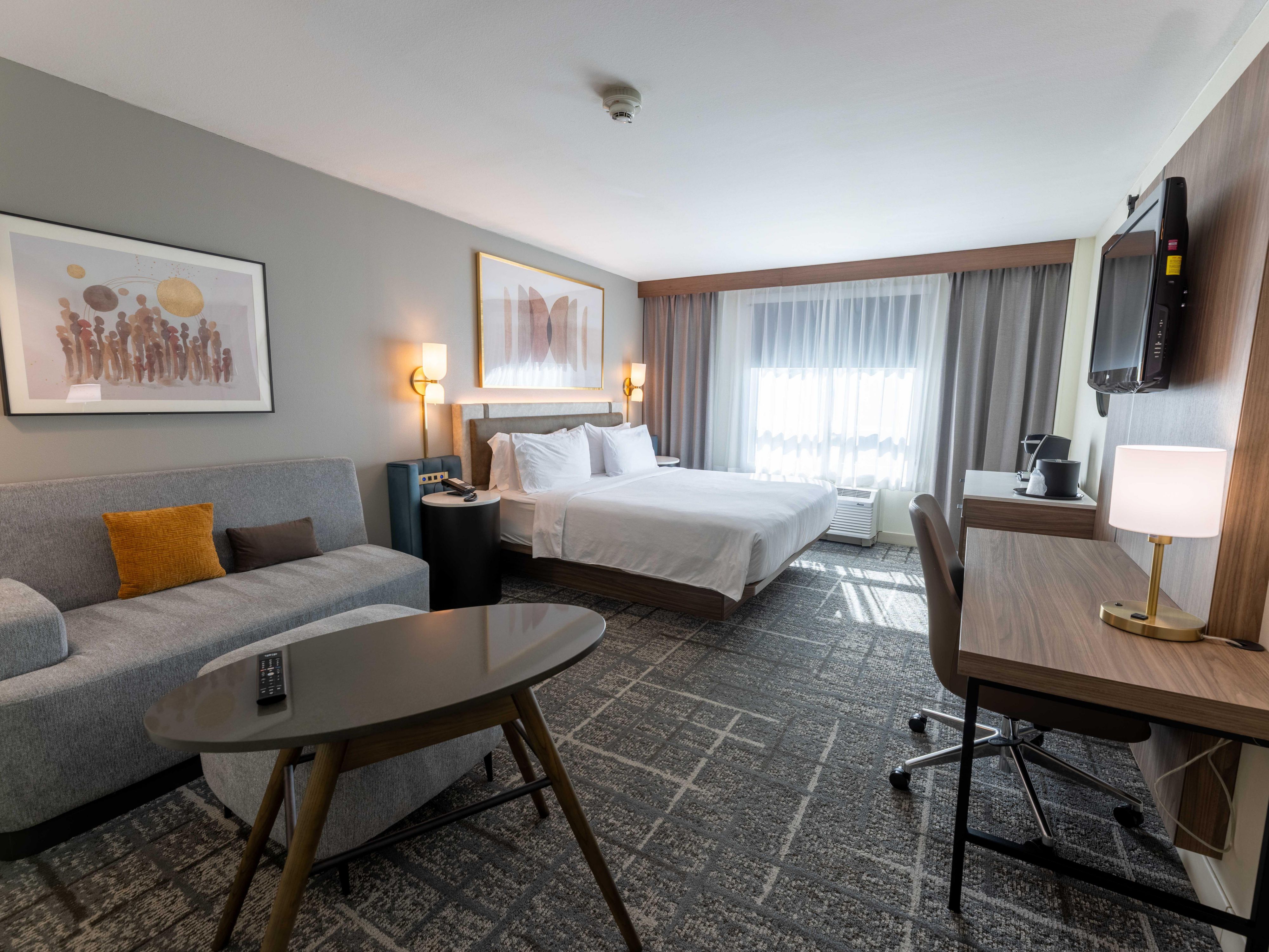 Designed with the modern traveler in mind, our hotel rooms in Houston blend contemporary style with elevated comfort and functionality. Enjoy an effortless stay with plush bedding, ergonomic workspaces, and essentials provided for your convenience.