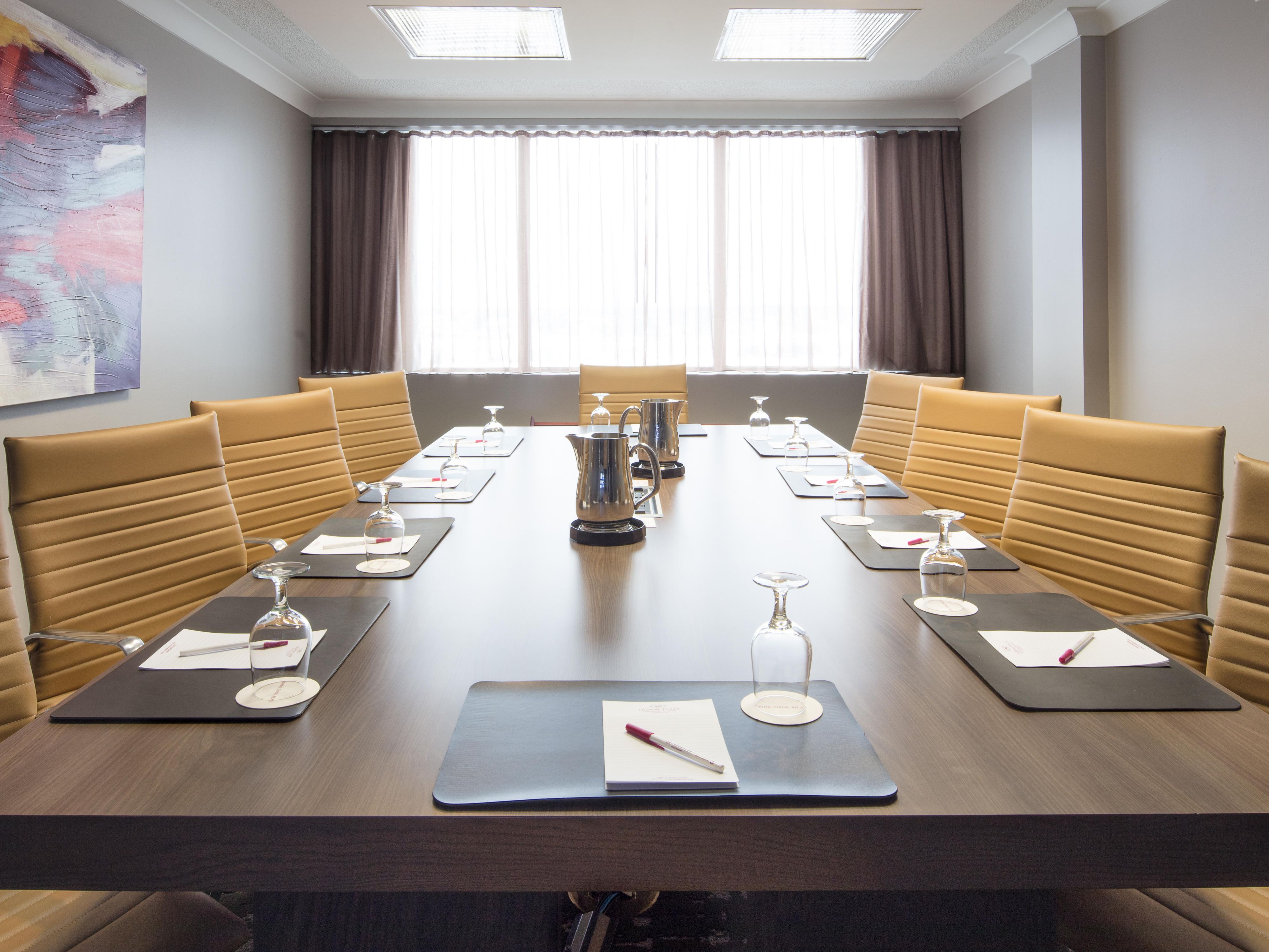 Explore our sophisticated 367 square-foot meeting space, nestled on the 9th floor of Crowne Plaza Moncton Downtown. プロフェッショナリズムと現代性を感じさせるスペースには、接続された大画面テレビがあり、プレゼンテーションやディスカッションに活用することができます。