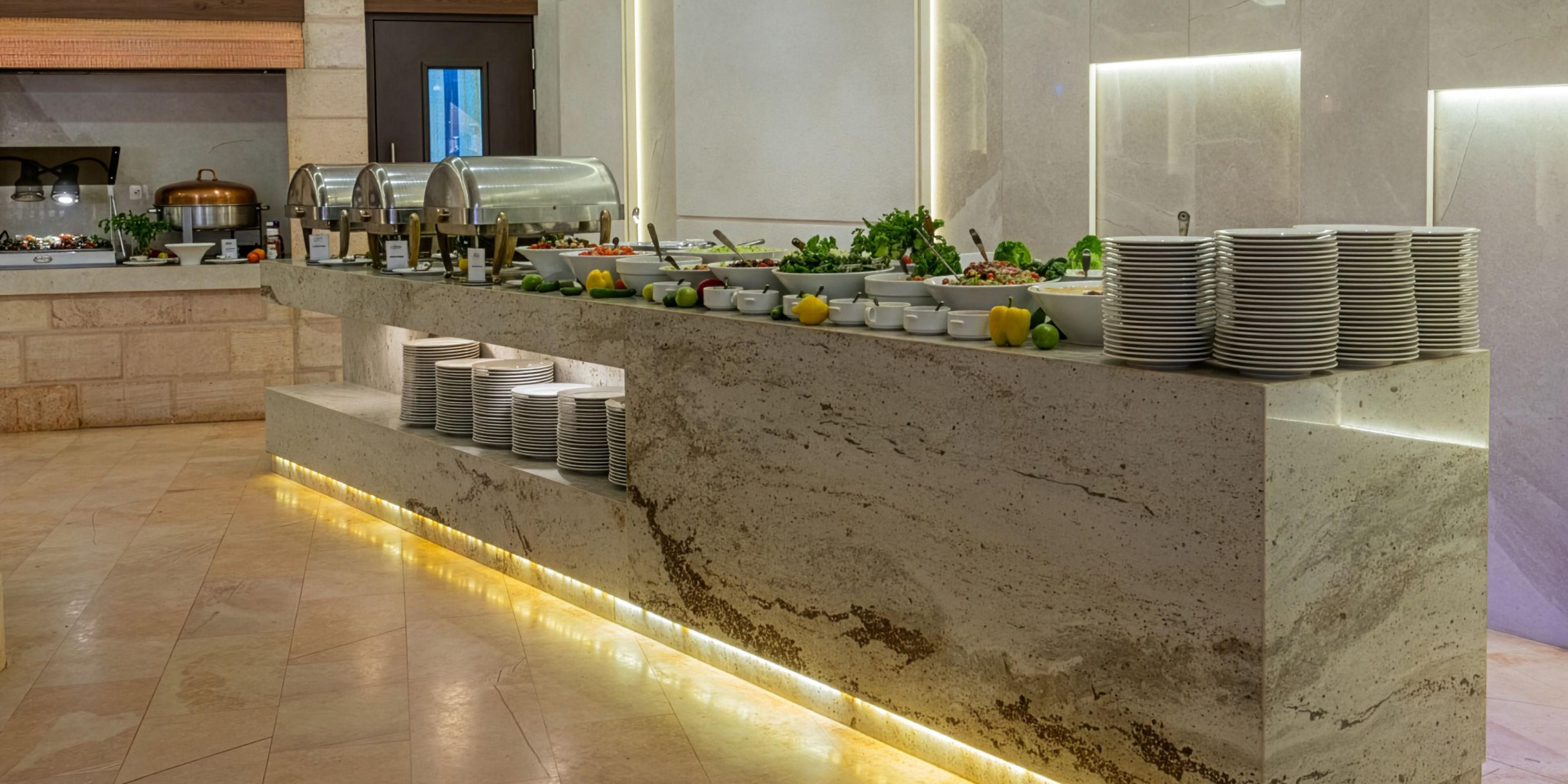 Basin Restaurant, nestled between Um Sihon and the Valley of Moses in Petra, offers a delightful off site open buffet lunch featuring both international and local cuisine, set amidst stunning mountain scenery where the basin yard meets the ascent to the monastery.