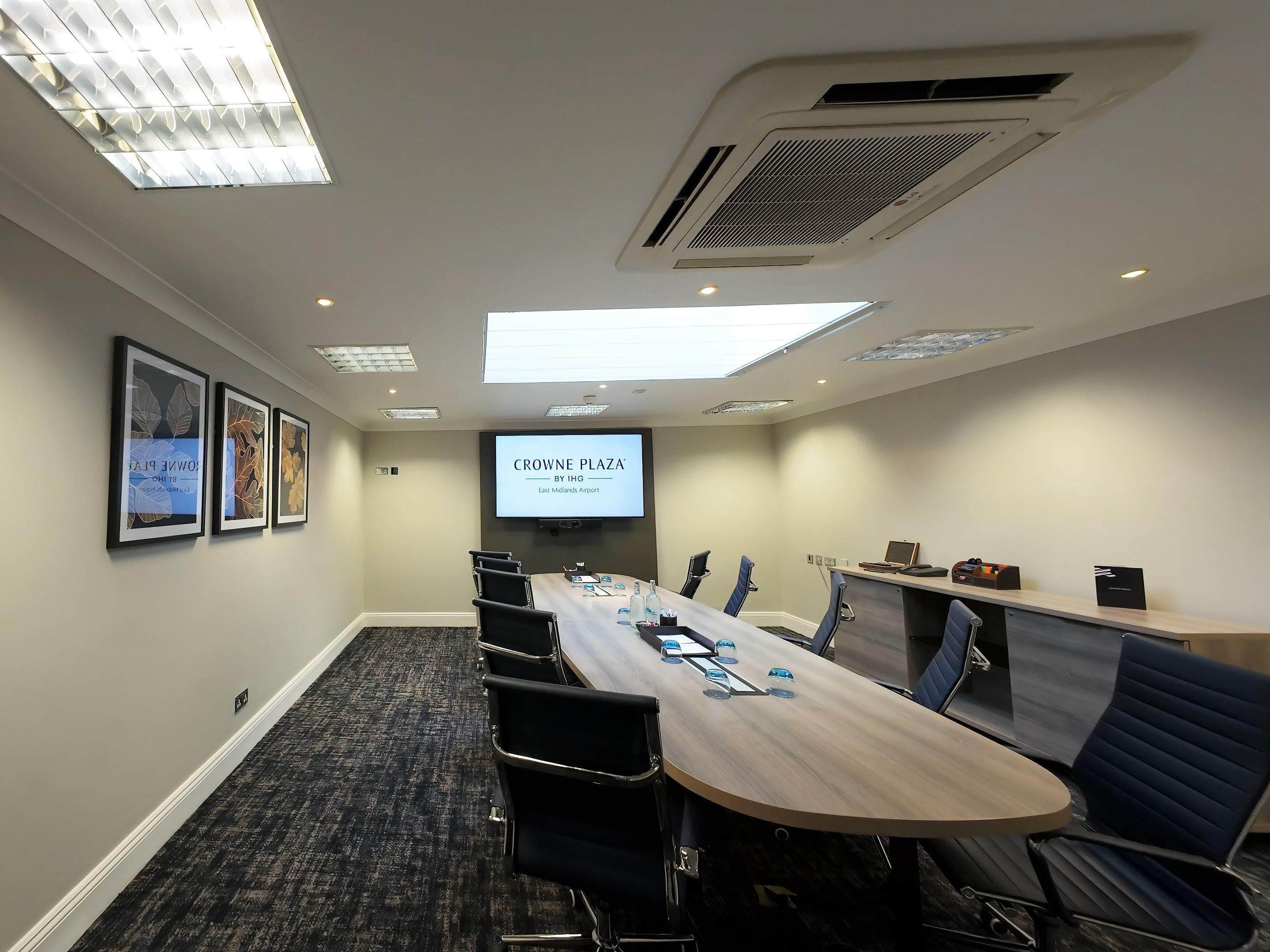 Flexible meeting room with natural light, fully equipped with air comfort system, state of the art AV offering and a 65” plasma screen TV. The perfect meeting space for up to 10 – 14 delegates.