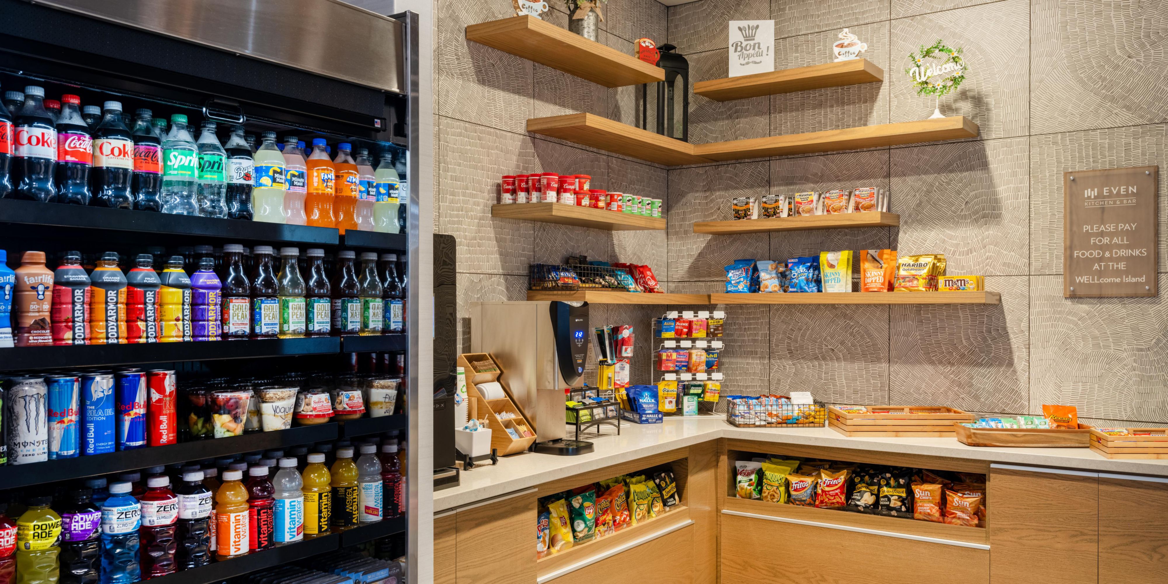 Located in the lobby, our grab and go shop is designed to make your stay seamless. Guests can enjoy a selection of refreshing beverages, satisfying snacks, and light bites that are perfect for busy days or a quick pick me up. You will also find essential items you may have forgotten, giving you peace of mind and more time to focus on your plans. Whether you are heading out for the day or winding down for the evening, everything you need is right at your fingertips.