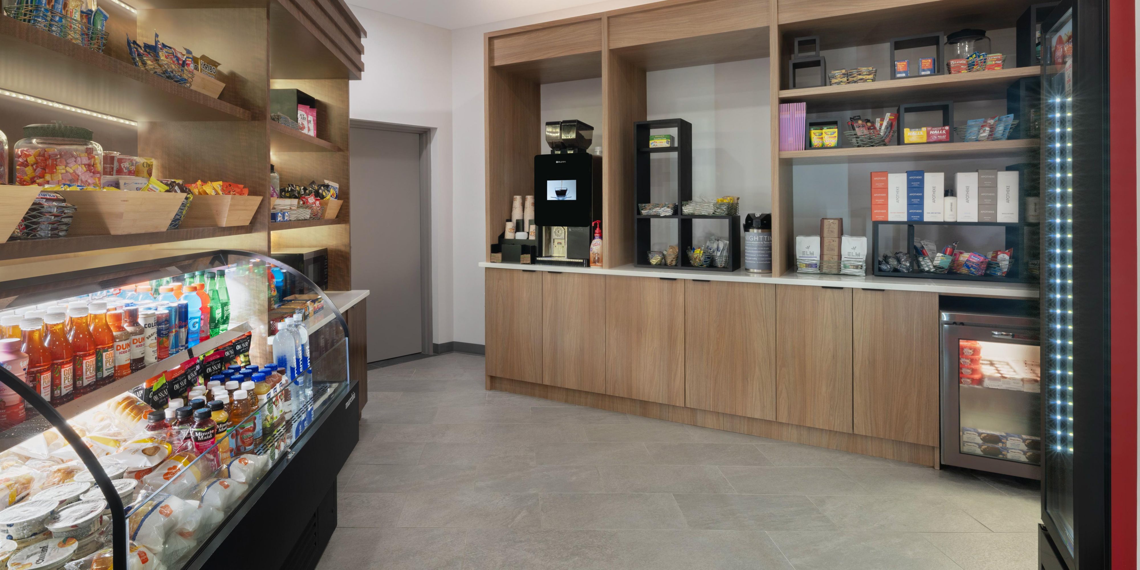 Located in the lobby, our grab and go shop is designed to make your stay seamless. Guests can enjoy a selection of refreshing beverages, satisfying snacks, and light bites that are perfect for busy days or a quick pick me up. You will also find essential items you may have forgotten, giving you peace of mind and more time to focus on your plans in the city. Whether you are heading out for the day or winding down for the evening, everything you need is right at your fingertips.