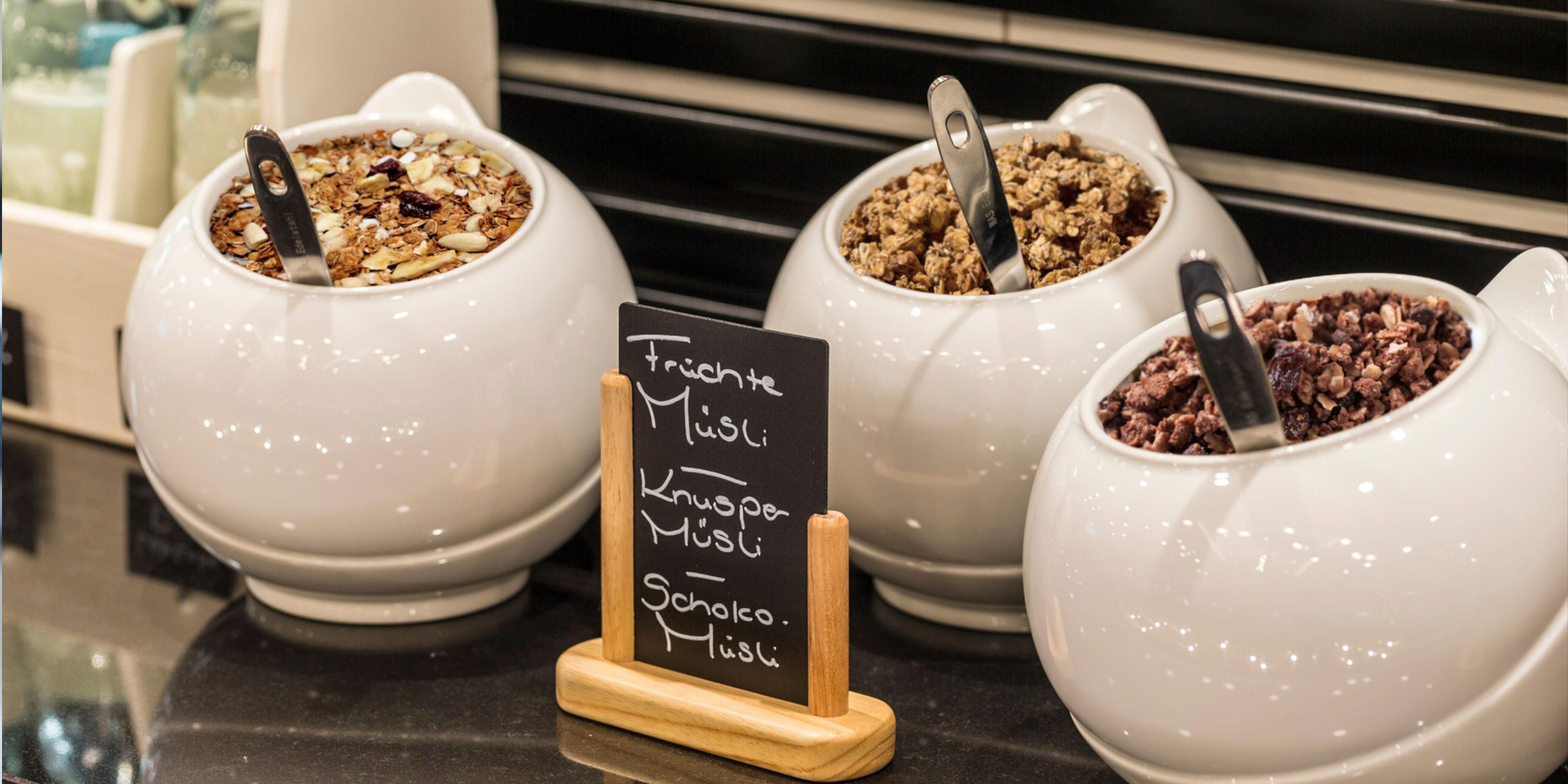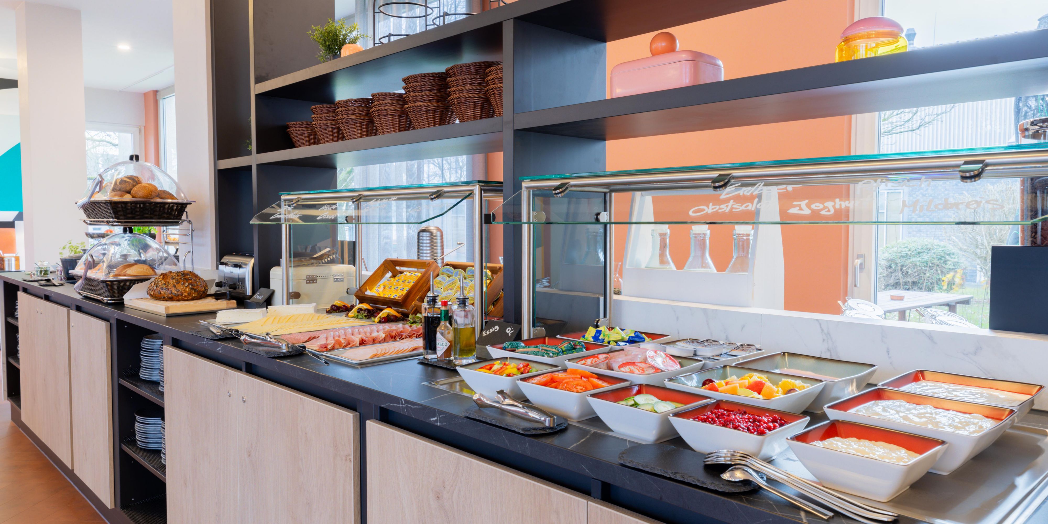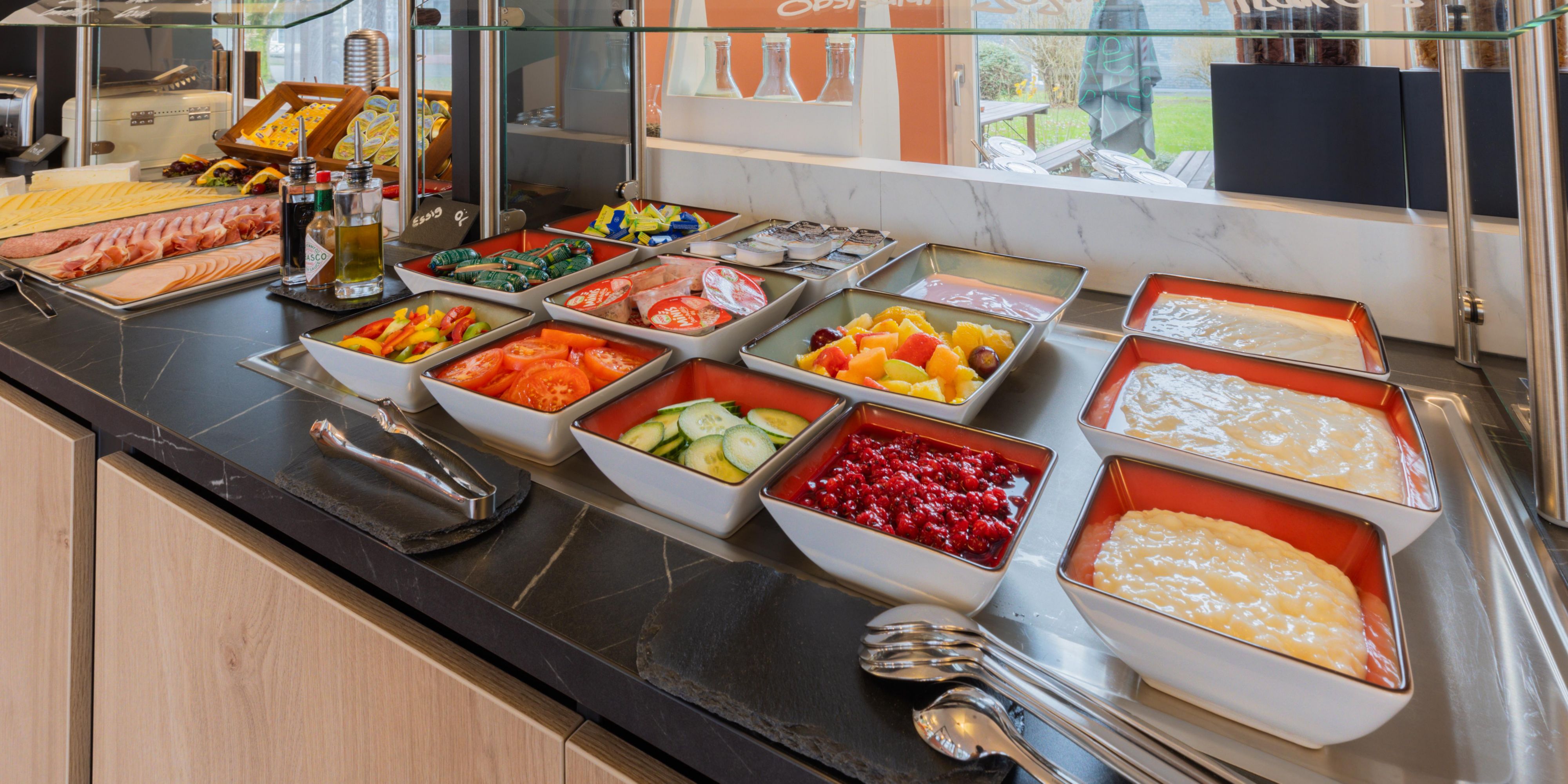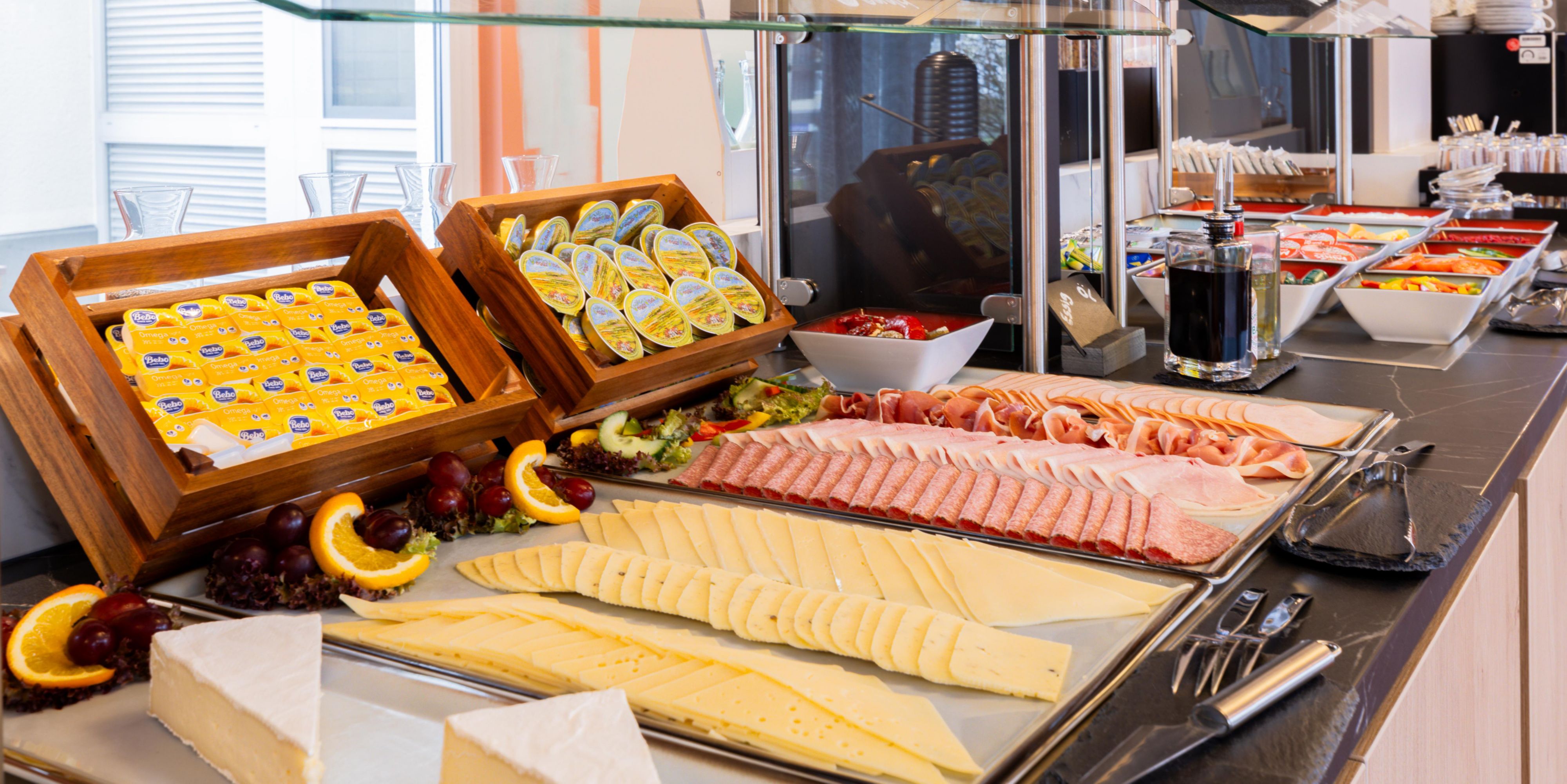 For your perfect start into the day, we offer a generous breakfast buffet with a large selection of sweet and savory dishes. Enjoy delicious coffee specialties of your choice as well as tea or juices to suit your taste. Frühstück