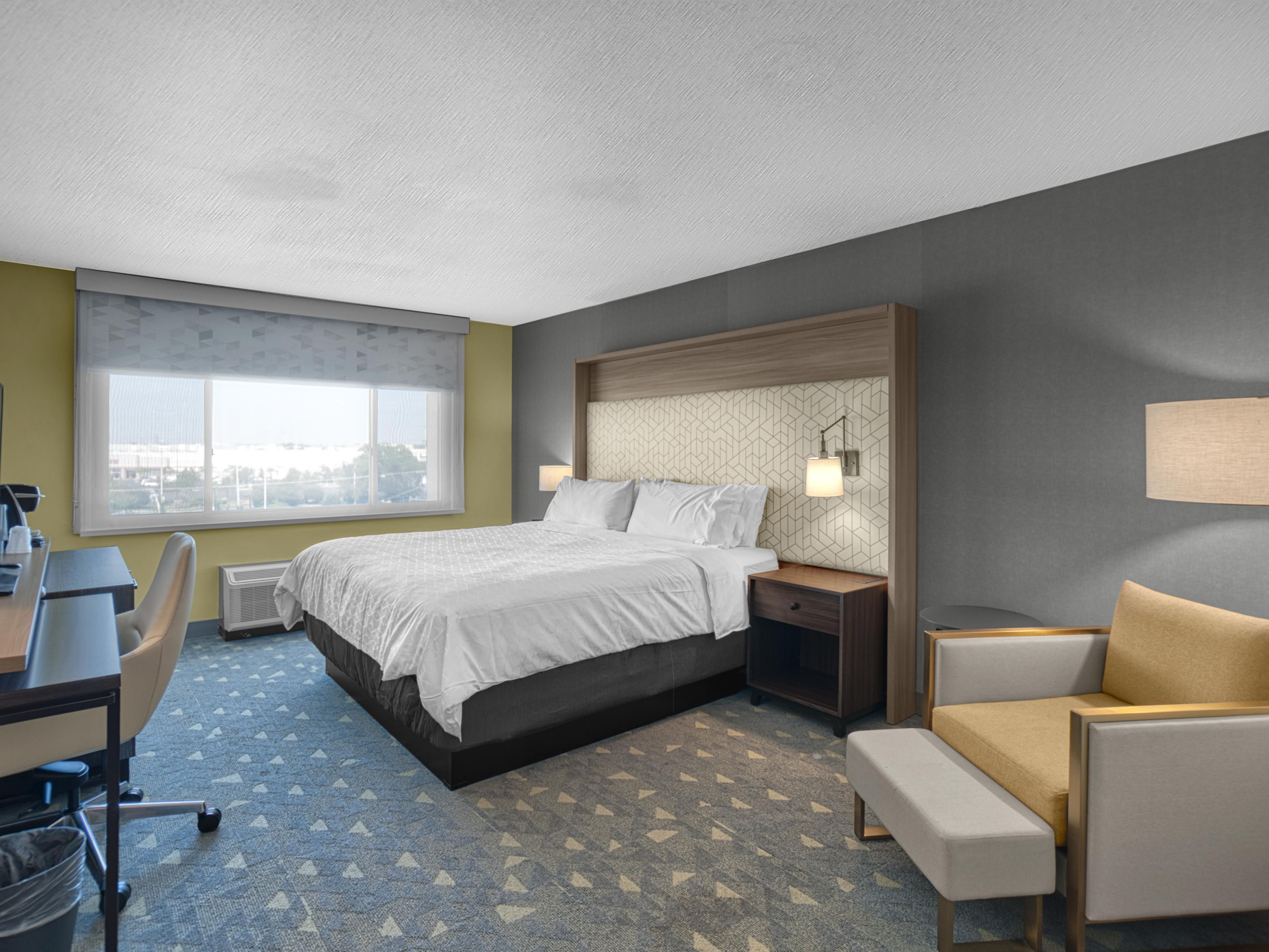 توفر غرفة فندق في مطار شيكاغو للزوار تجربة فريدة من نوعها في وسائل الراحة والراحة المذهلة ، مع الغرف التي توفر للضيوف أسرّة فخمة وخدمة واي فاي مجاناً عالية السرعة وآلات صنع القهوة Keurig وأجهزة التلفزيون الذكية والثلاجات الصغيرة.