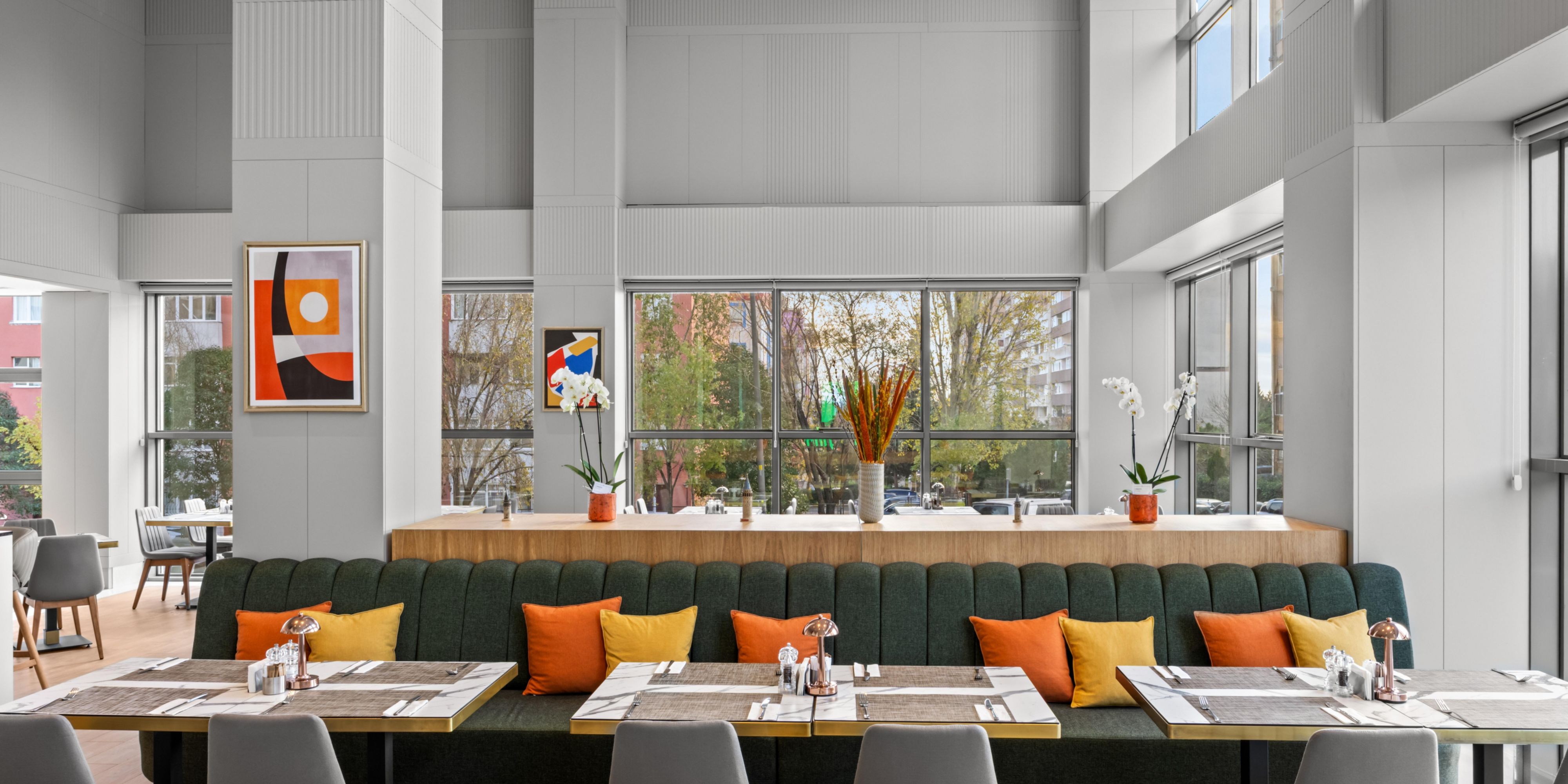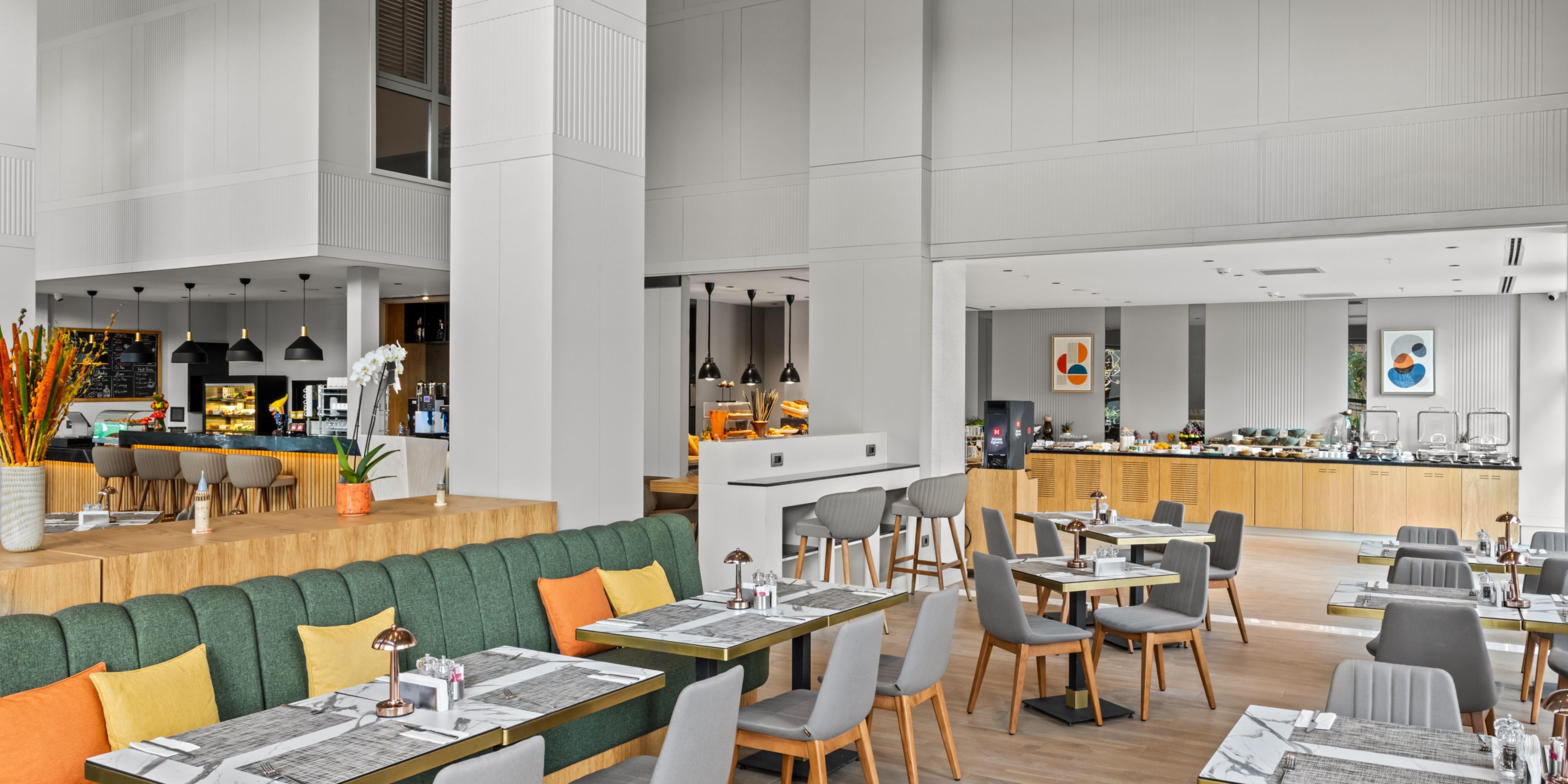 تم تصميم ردهة الفندق لتكون مساحة متكاملة مع منطقة المطعم ، مما يوفر أجواءً مريحة وجذابة لتناول الطعام والتواصل مع الآخرين والاسترخاء على مدار اليوم.