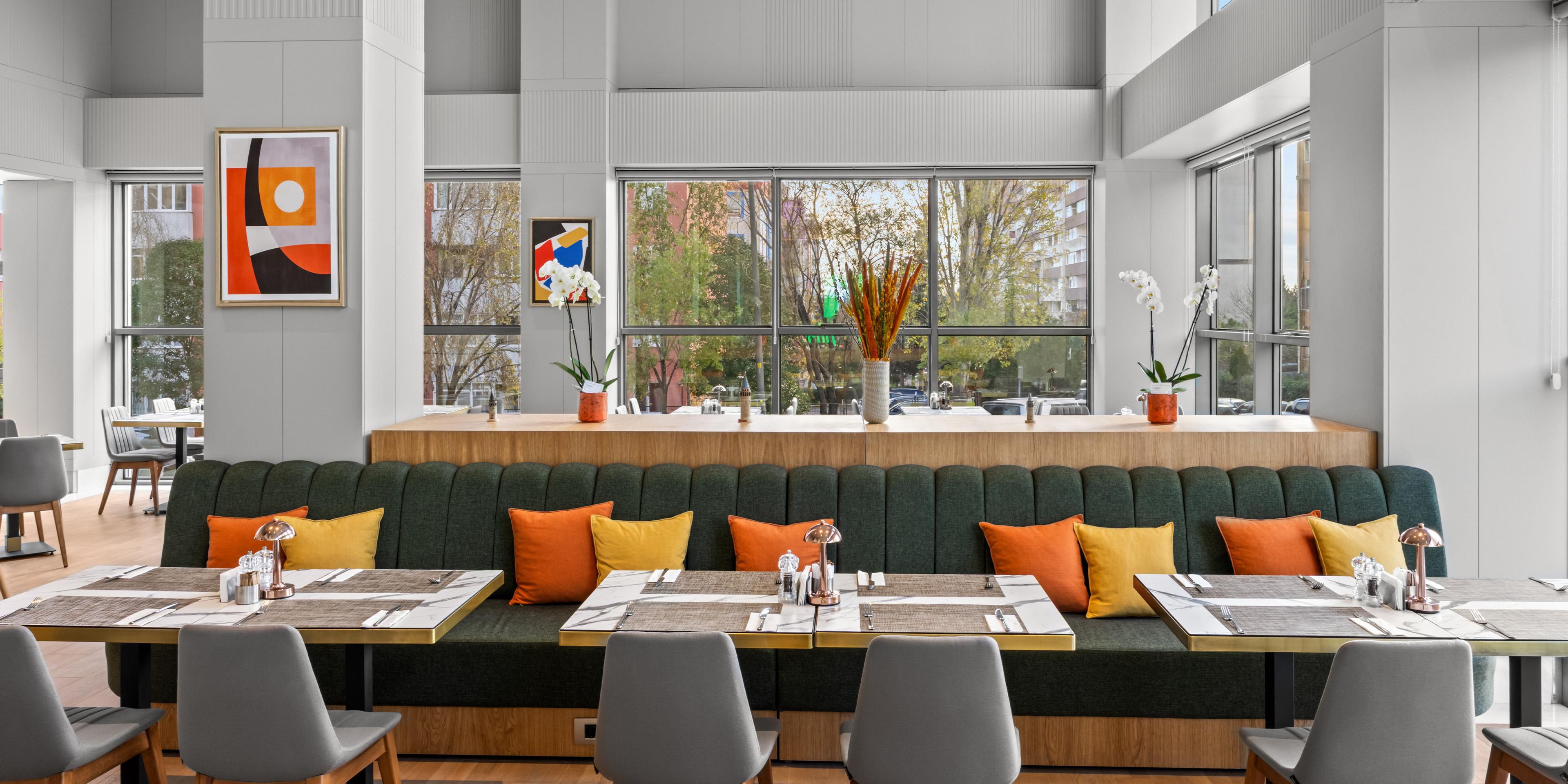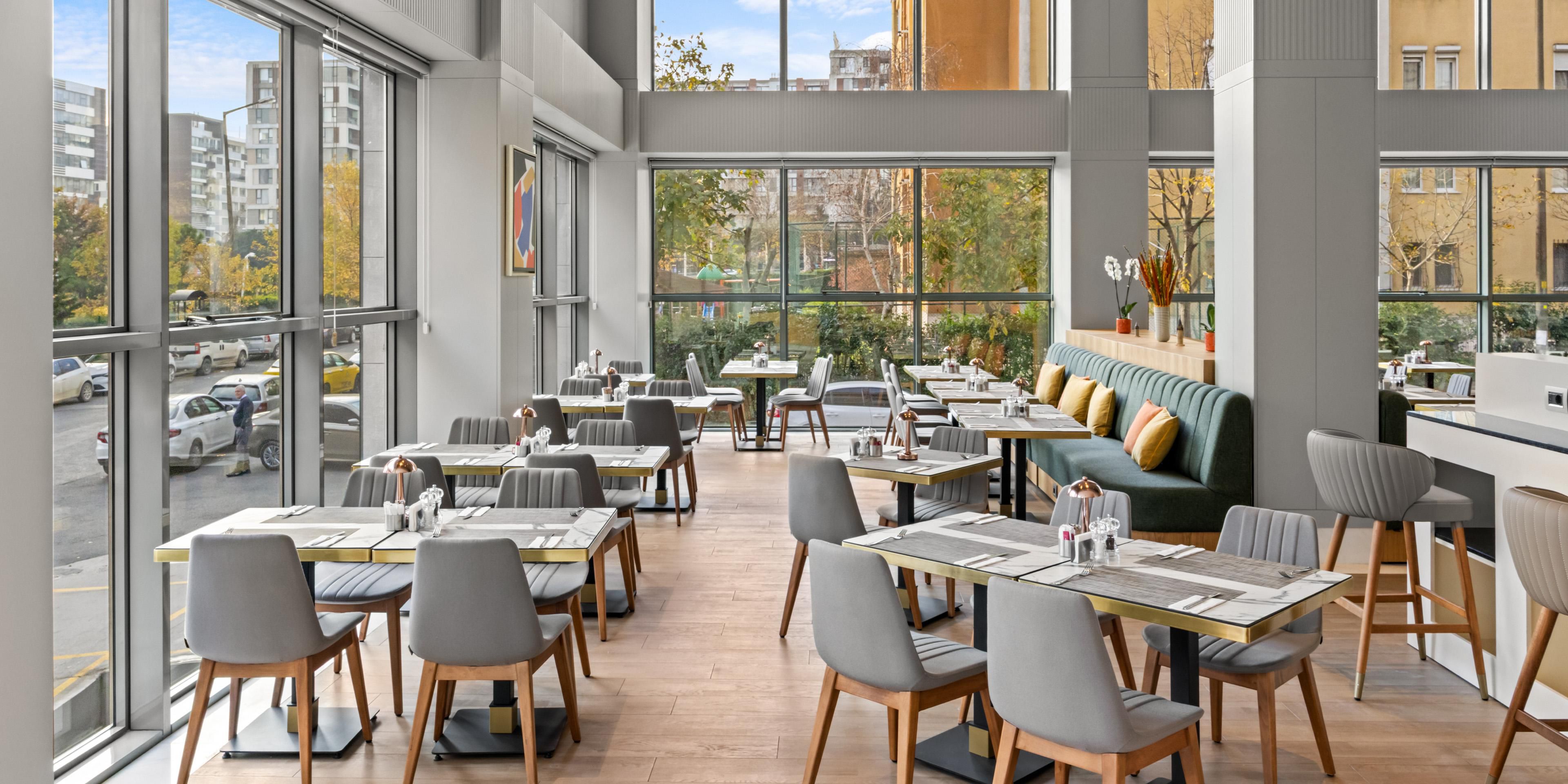 ابدأ يومك ببوفيه إفطار مفتوح ، أو استمتع بتناول الطعام من قائمة انتقائية ، أو استرخ في مطعم The Pause مع المشروبات والوجبات الخفيفة ، أو تناول وجبة سريعة. 24 تتوفر أيضًا خدمة الغرف على مدار الساعة وعروض المأدبة الكاملة.