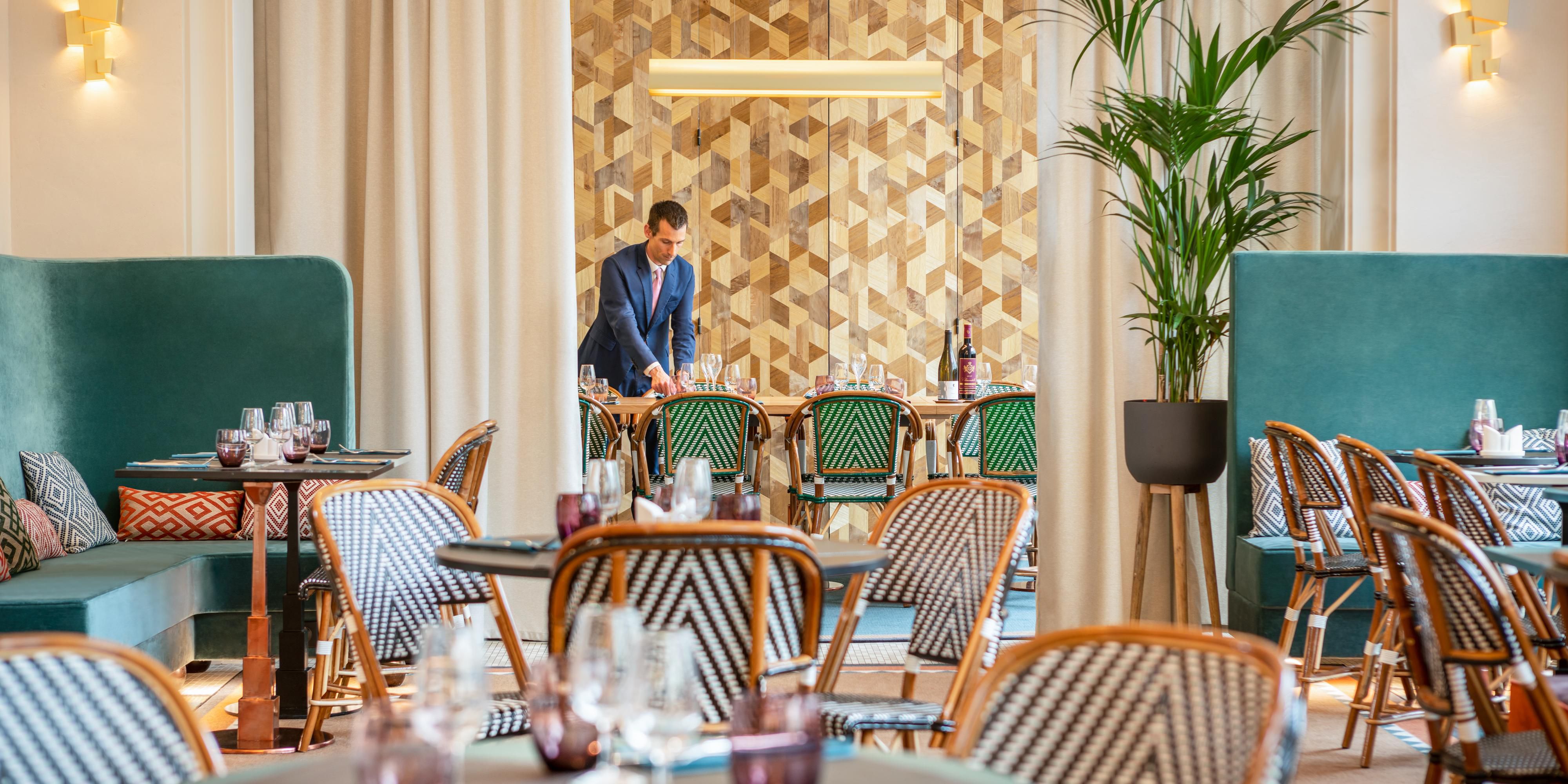 يستمتع نزلاء فندق هوليداي إن باريس - غار دو ليون باستيل بتناول الإفطار في مطعم الفندق ما بين الساعة 6:30 ص و10:00 ص أيام الأسبوع وحتى 11=10:00 ص في عطلات نهاية الأسبوع. ويتوافر الغداء والعشاء من خلال خدمة الغرف حتى 10:00 م يوميًّا.