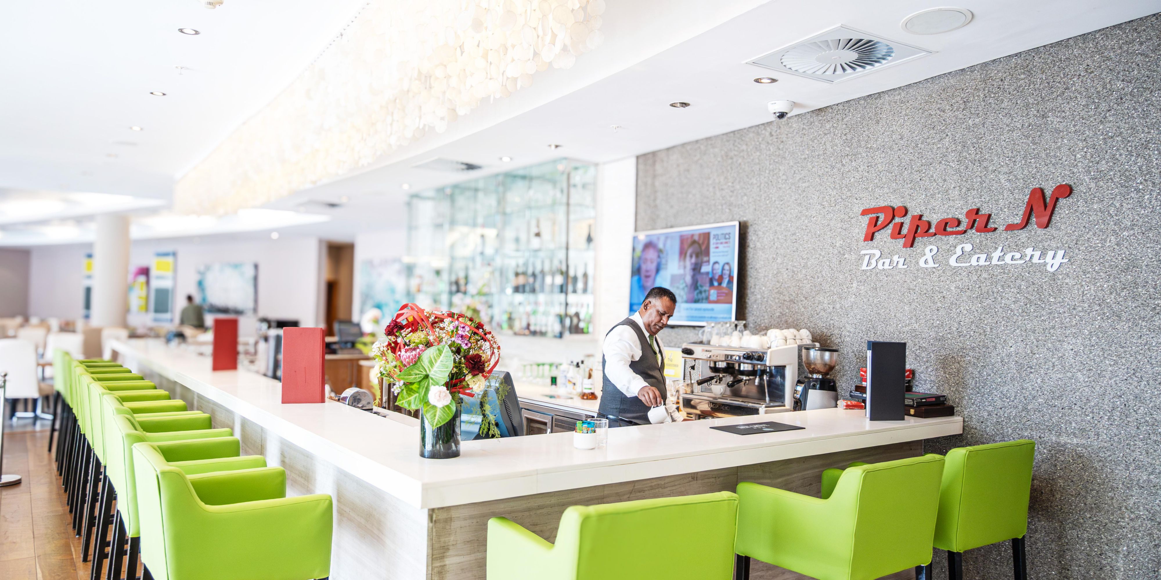 ادخل إلى بار بايبر إن ، حيث يلتقي الانغماس بالاسترخاء في أجواء هادئة. يقدم البار الخاص بنا مجموعة مغرية من المشروبات التي ترضي جميع الأذواق. من الموكتيلات المنعشة الممتلئة بالفواكه الطازجة إلى البيرة النقية والكوكتيلات المصنوعة بخبرة والتي ترفع من مستوى تجربتك ، تم تصميم كل رشفة لتكمل الأجواء الهادئة. سواء أكنت تسترخي مع كأس من النبيذ الفاخر أو تتذوق مشروب خاص، يعدك Piper N Bar بملاذ مبهج.