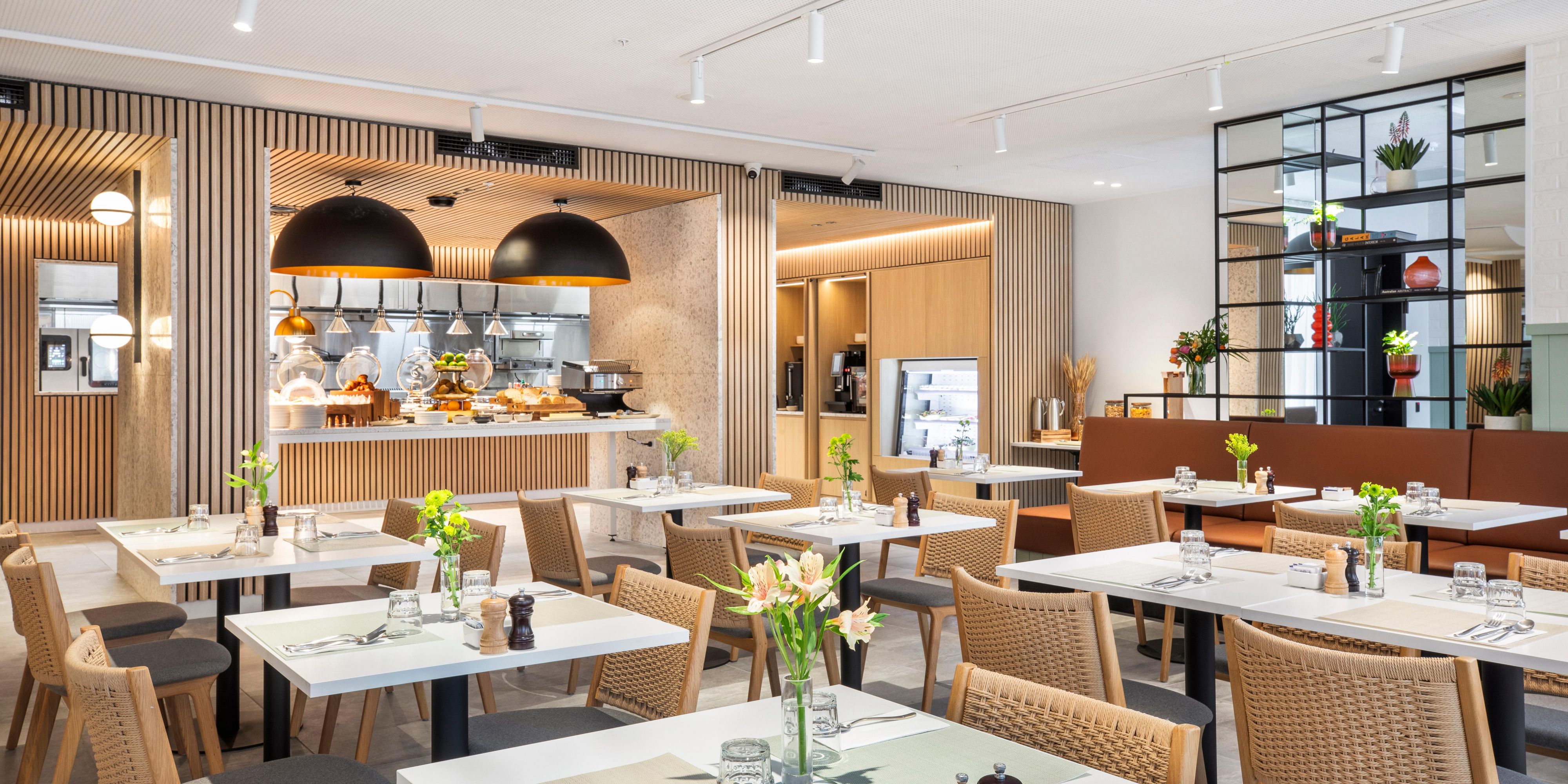 Relax in our spacious dining area, designed for comfort and a welcoming atmosphere. Enjoy a buffet breakfast, quick snack, lunch, or delicious dinner with a mix of local and international dishes. Plus, kids eat free in the restaurant! Room service is also available.