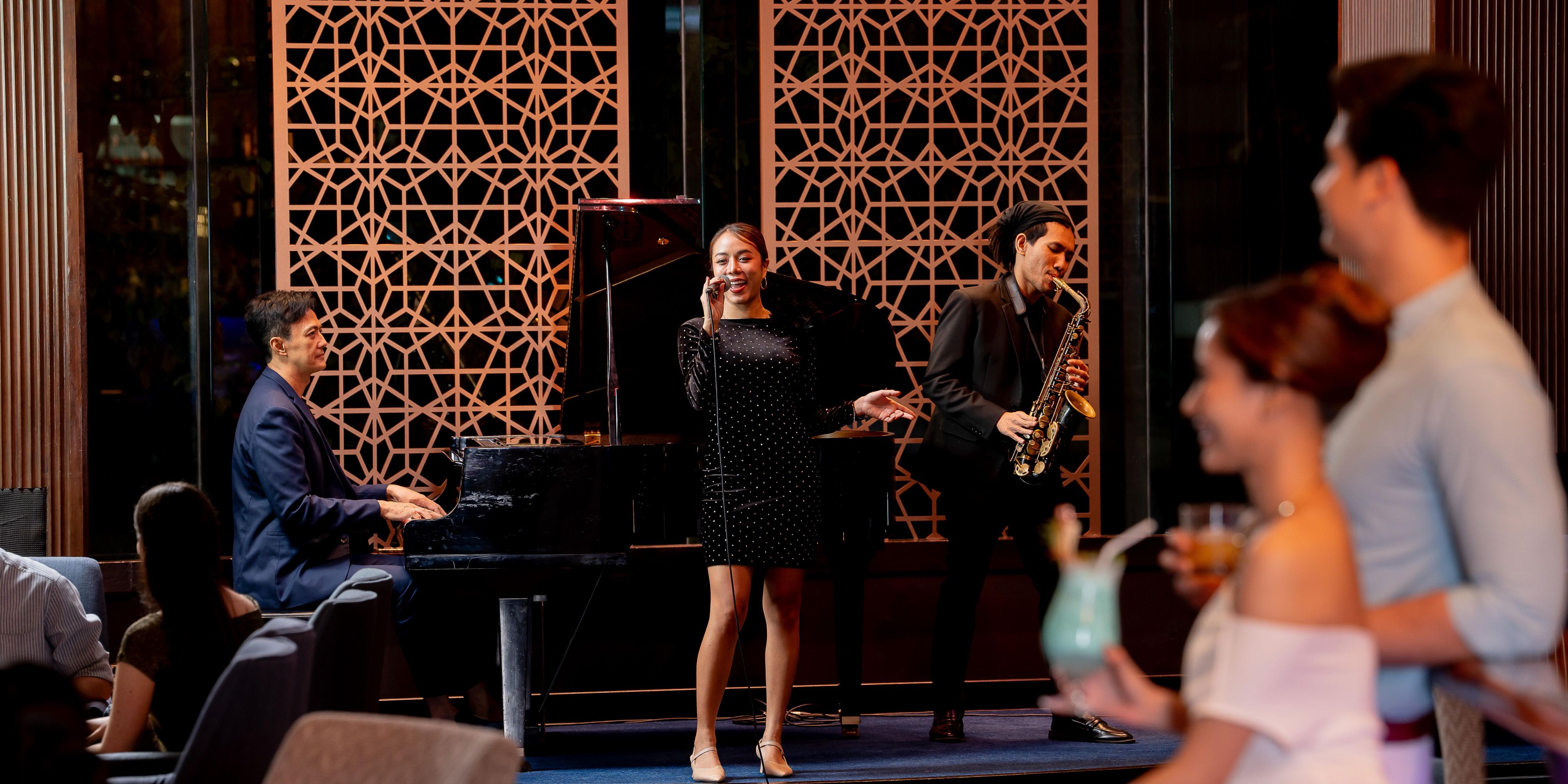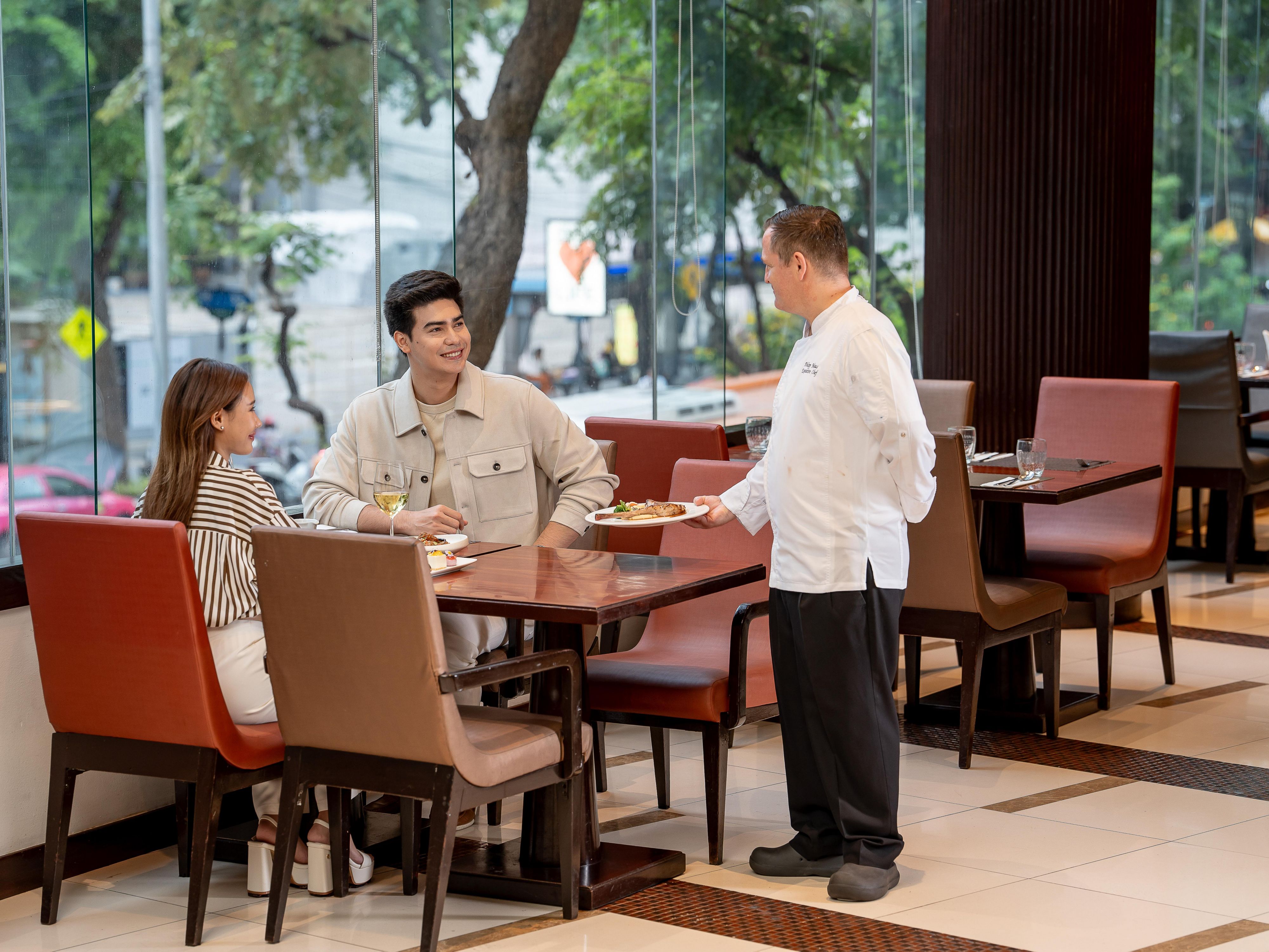 活気に満ちたシーロムロードで世界を一望するのを見ながら、The Brasserieのオープンキッチンから鉄板焼きとパスタの山をお楽しみください。 私たちの居住者の3ピースバンドが楽しませている間、チャンやシンハビールのような冷たいビールは隣のハリのバーで出されます。