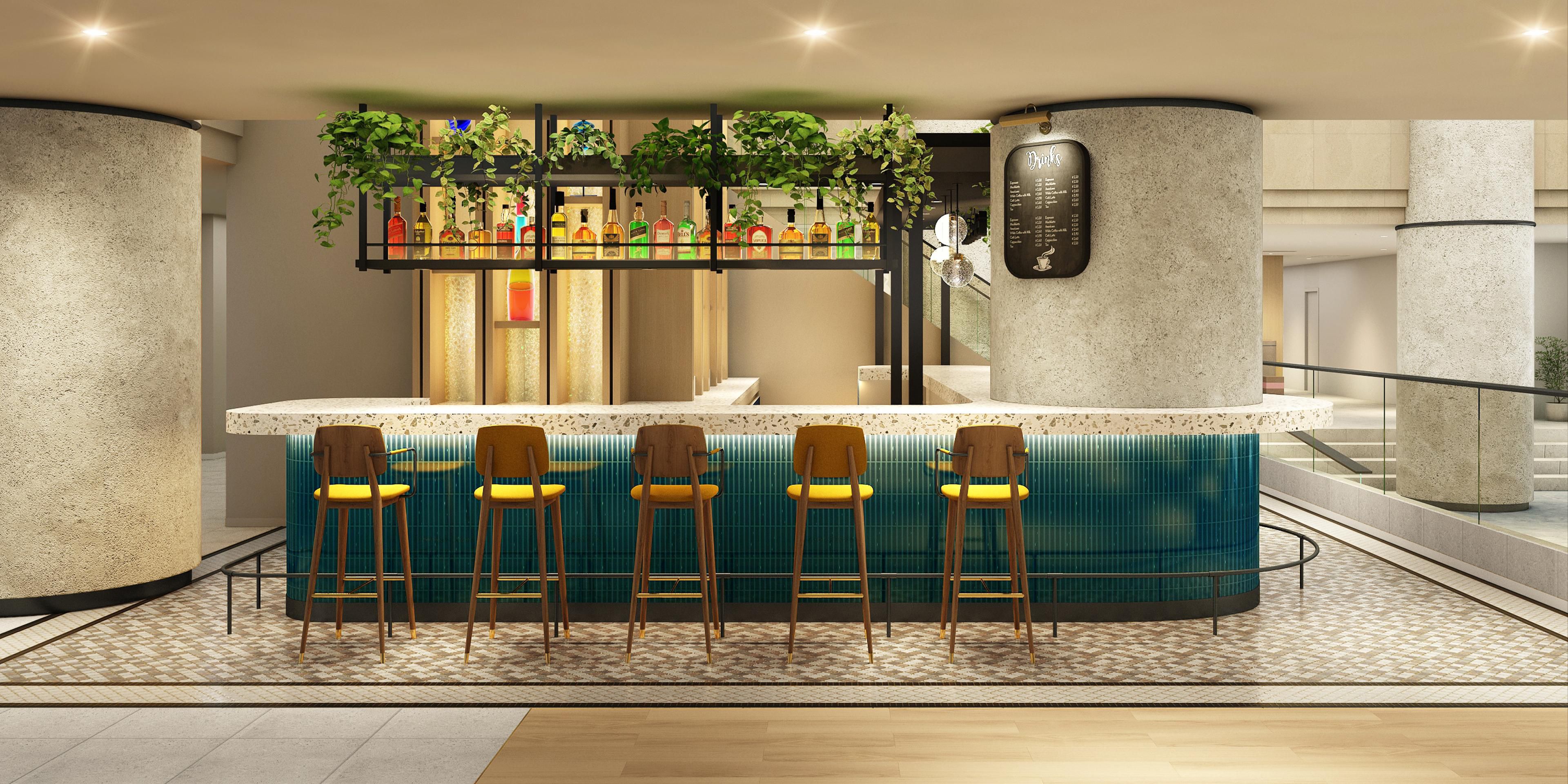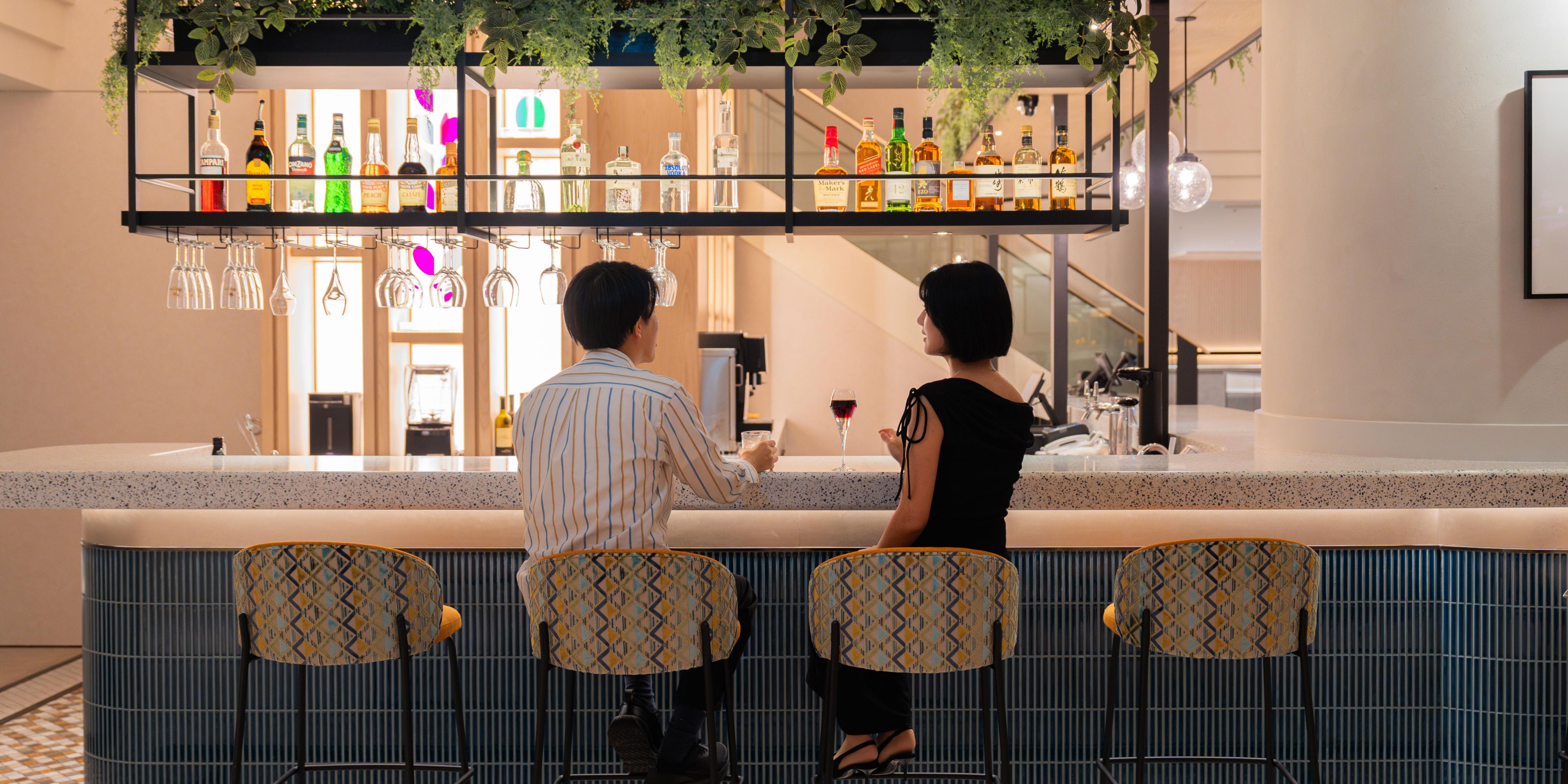 ロビー階に位置するカフェ&バー。解放感のあるバーでは、コーヒーやアルコールを提供。日中や夜、リフレッシュしたい気分になったらぜひこのバーでひと時を。