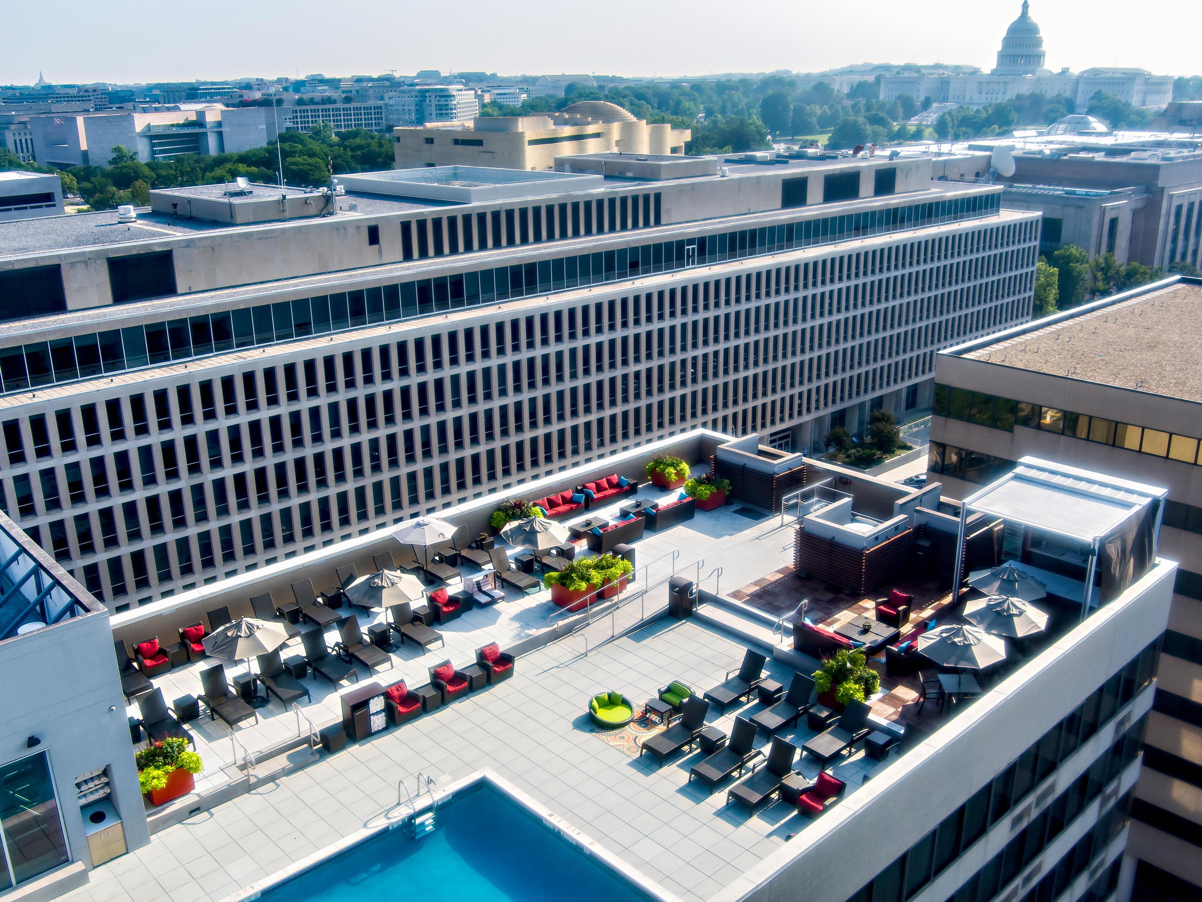 Relax at our seasonal rooftop pool and bar, stay active in the 24-hour fitness center, and enjoy on-site dining at 21st Amendment Bar & Grill, Capitol Bistro, or our full-service Starbucks.