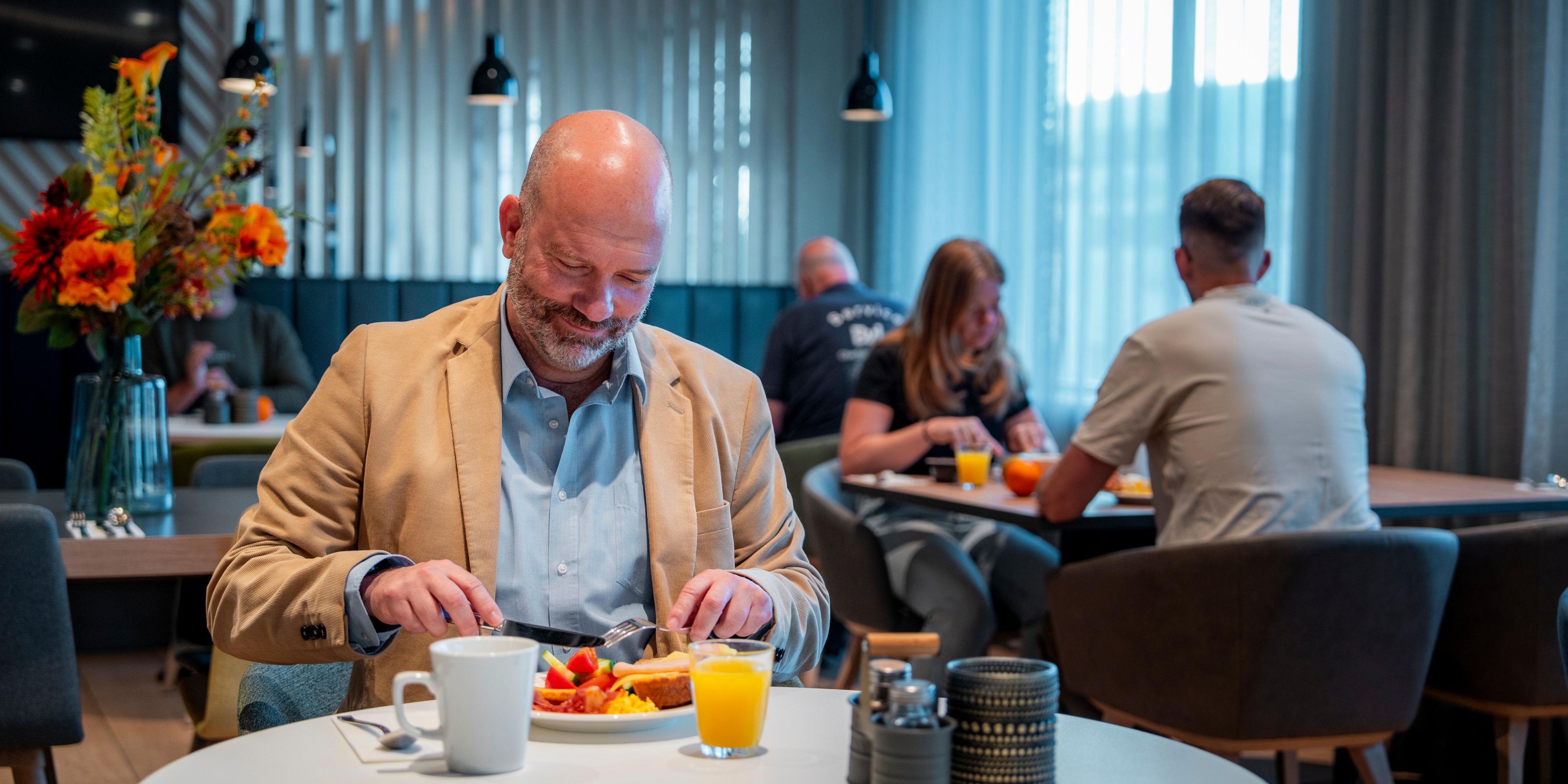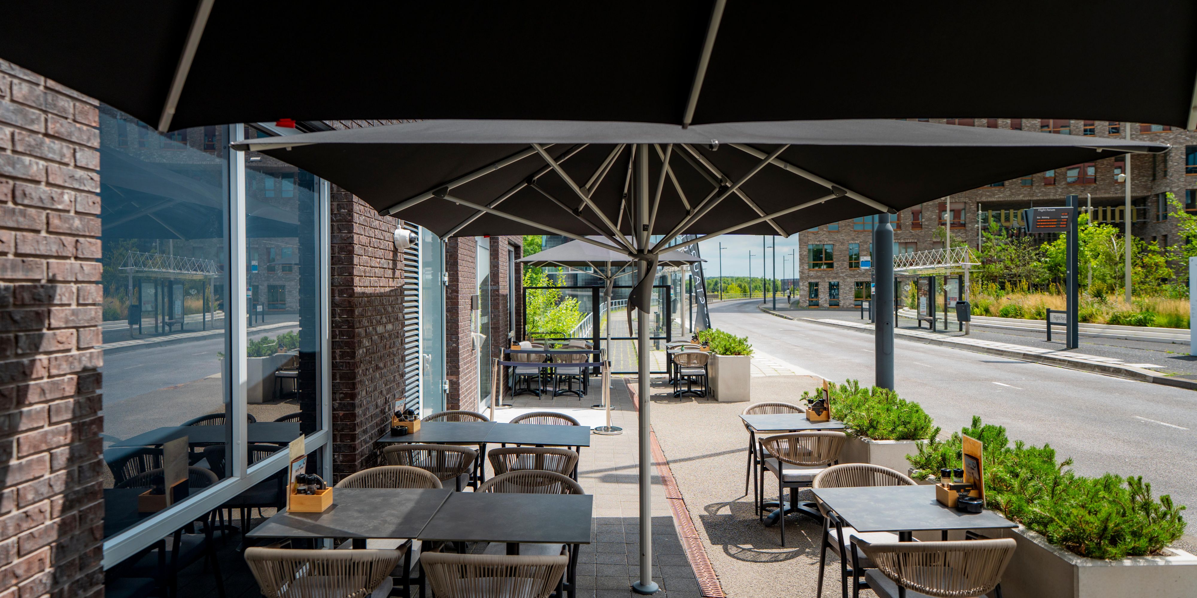¿Un delicioso desayuno buffet con opciones saludables, un rápido almuerzo de negocios o una cena completa? El vestíbulo abierto satisface todos los apetitos durante todo el día. Disponemos de servicio de habitaciones y de opciones para llevar y nuestro bar sirve café y bebidas hasta tarde.