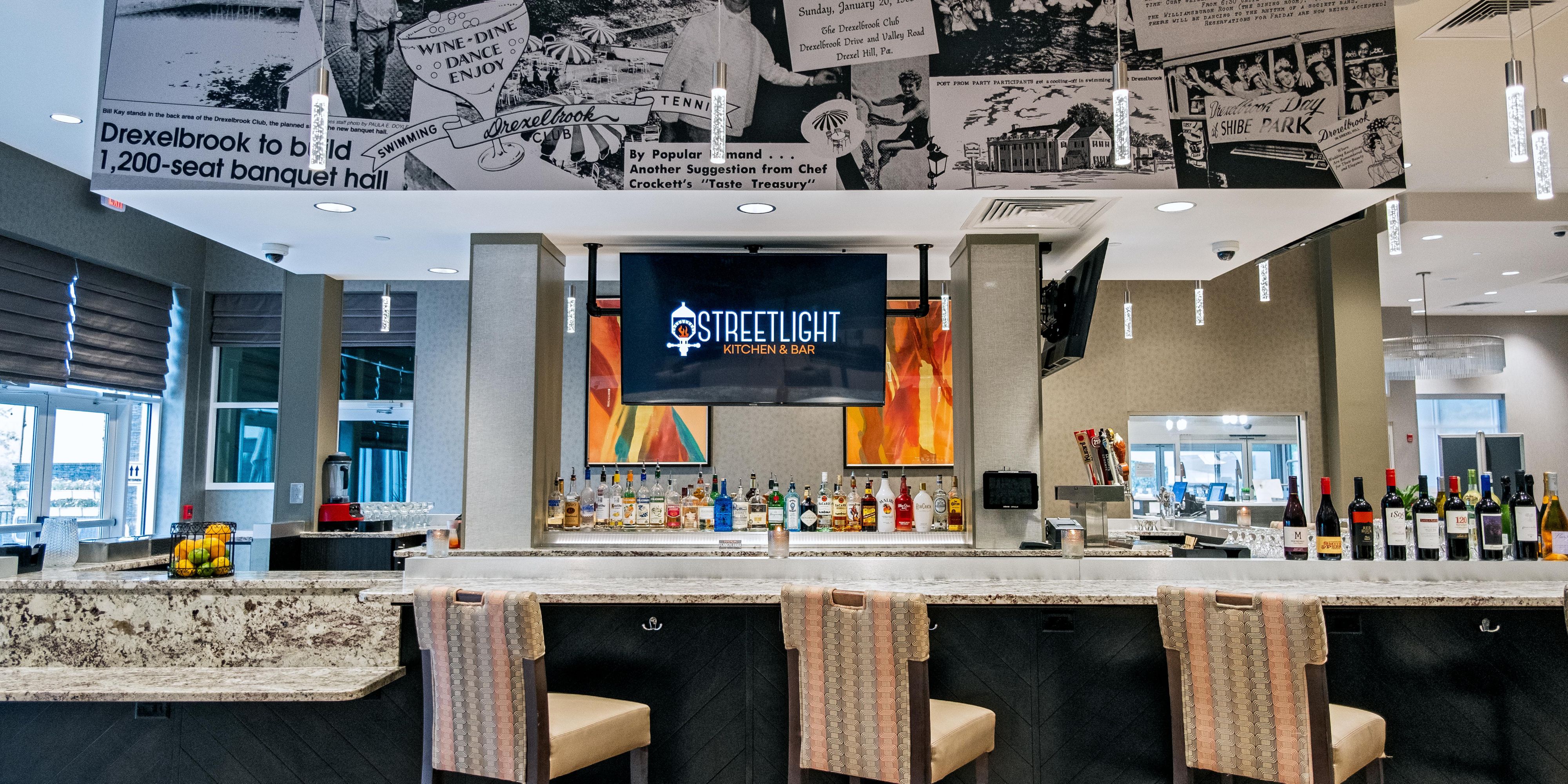 Looking for restaurants in Drexel Hill? You don't have to leave the building. Streetlight Kitchen & Bar serves American comfort food, wood-fired dishes, and craft beer right in our lobby. Kids eat free, too.