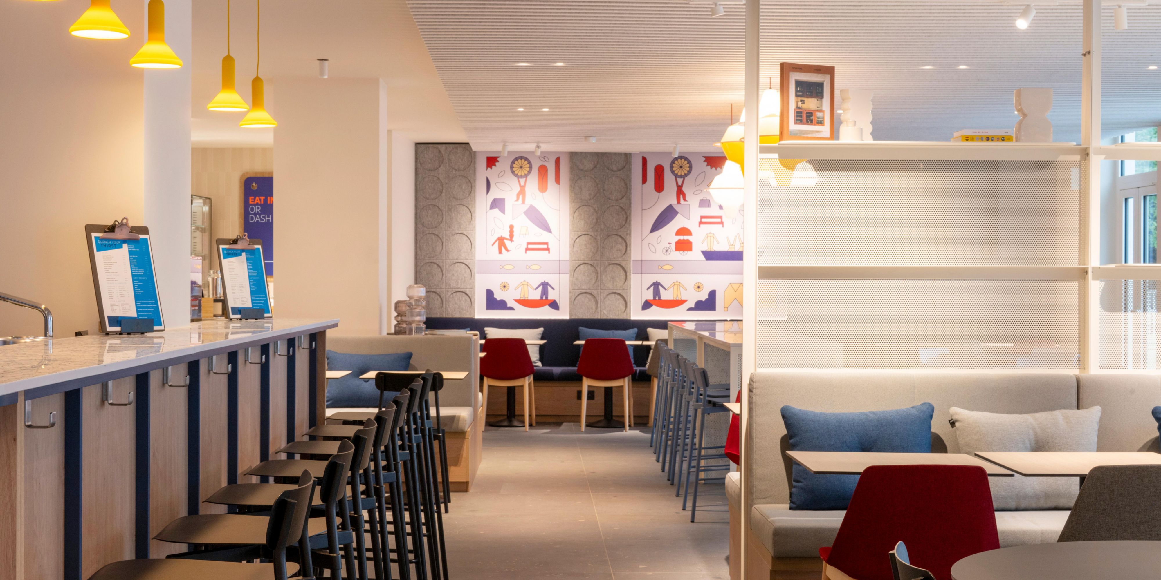 قم بزيارة بار الردهة، Café Express، من 9 صباحًا حتى 11 مساءً لتناول المشروبات والوجبات الخفيفة المقدمة في مكان مريح وسهل. استقر بين الخطط ، واجتمع مع الزملاء ، أو استمتع بلحظات هادئة في نهاية اليوم بشيء بسيط ومرضي.