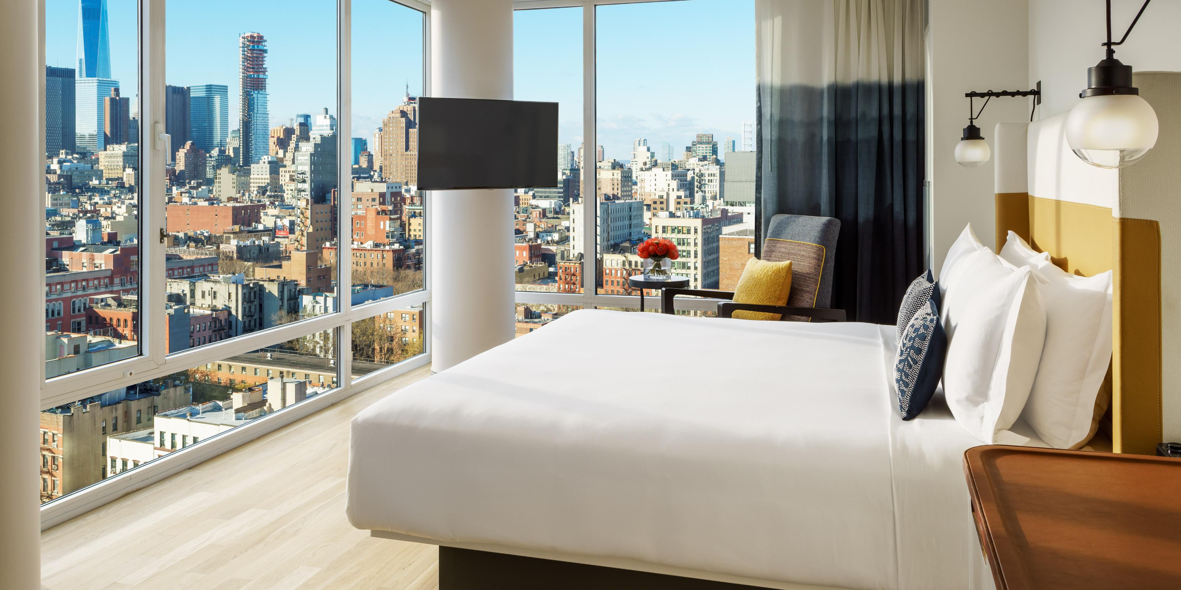 داخل الفندق ، تعكس اللوحة الجدارية الجريئة لأسطورة الجرافيتي لي كوينونيس الجذور الفنية للحي وتضع أسلوب إقامتك. نوافذ ممتدة من الأرض حتى السقف في كل غرفة تطل على مناظر شاملة لأفق مانهاتن ، مما يمنحك مقعدًا في الصف الأمامي للاستمتاع بالطاقة ليلا ونهارا في المدينة. تجول في سوق Essex أو المشي على جسر بروكلين لرؤية المزيد مما يجعل هذه الزاوية من نيويورك لا تُنسى.