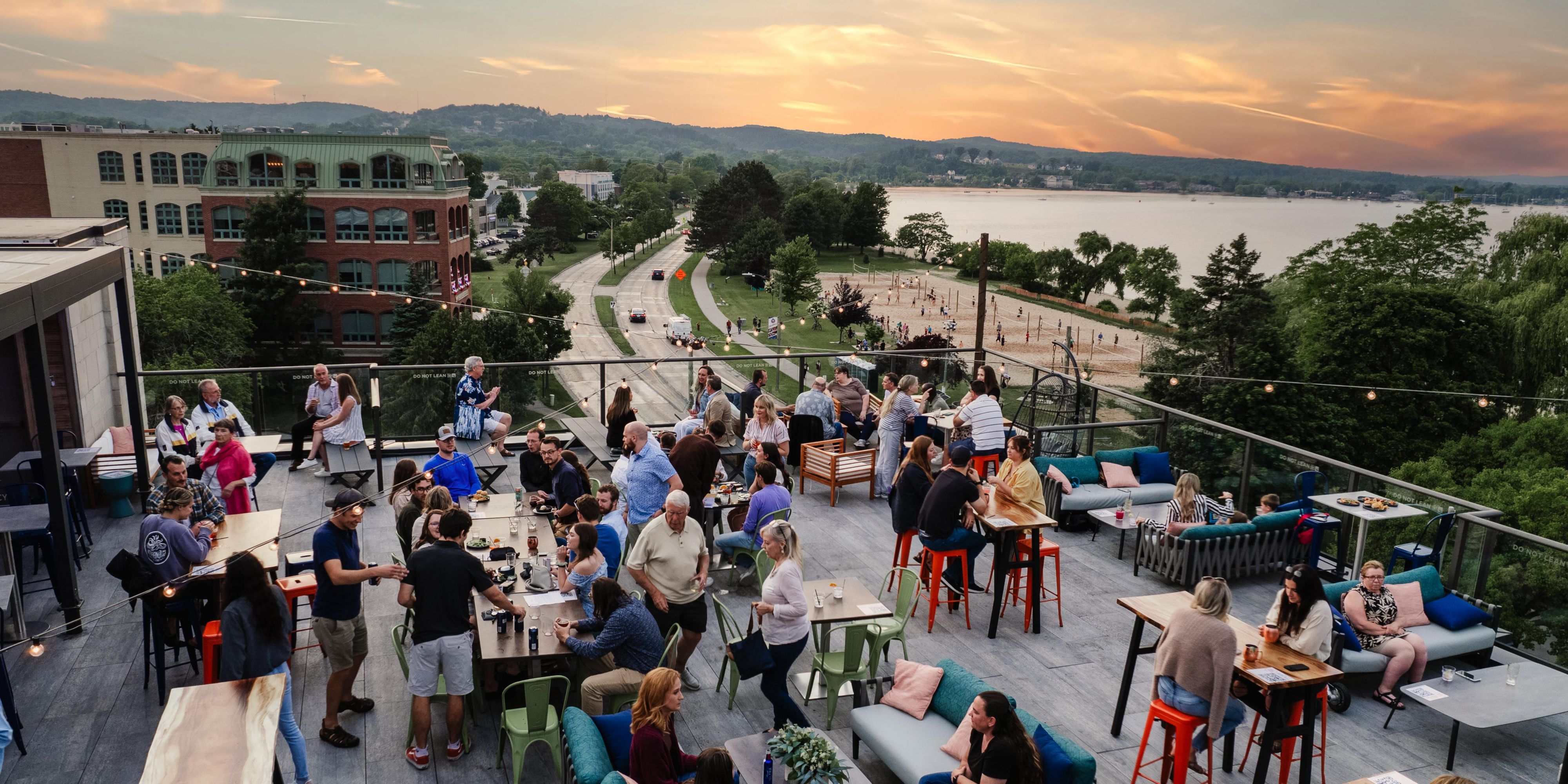 أفضل مكان موسمي على السطح في مدينة ترافيرس يطل على خليج ويست جراند ترافيرس الجميل. تفتح الخدمة من مايو إلى أكتوبر خدمة الطعام والمشروبات يوميًا ، إذا سمحت الأحوال الجوية بذلك. دولار أمريكي5.00 رسوم التغطية في بعض ليالي الجمعة والسبت في يوليو وأغسطس ، الحجوزات غير مقبولة.