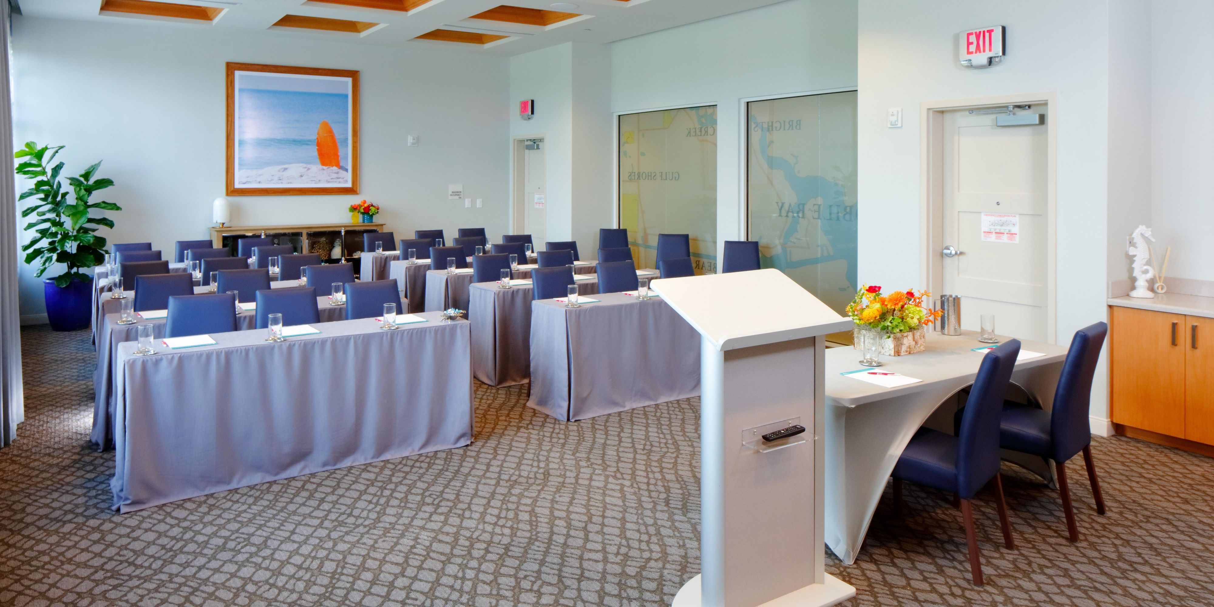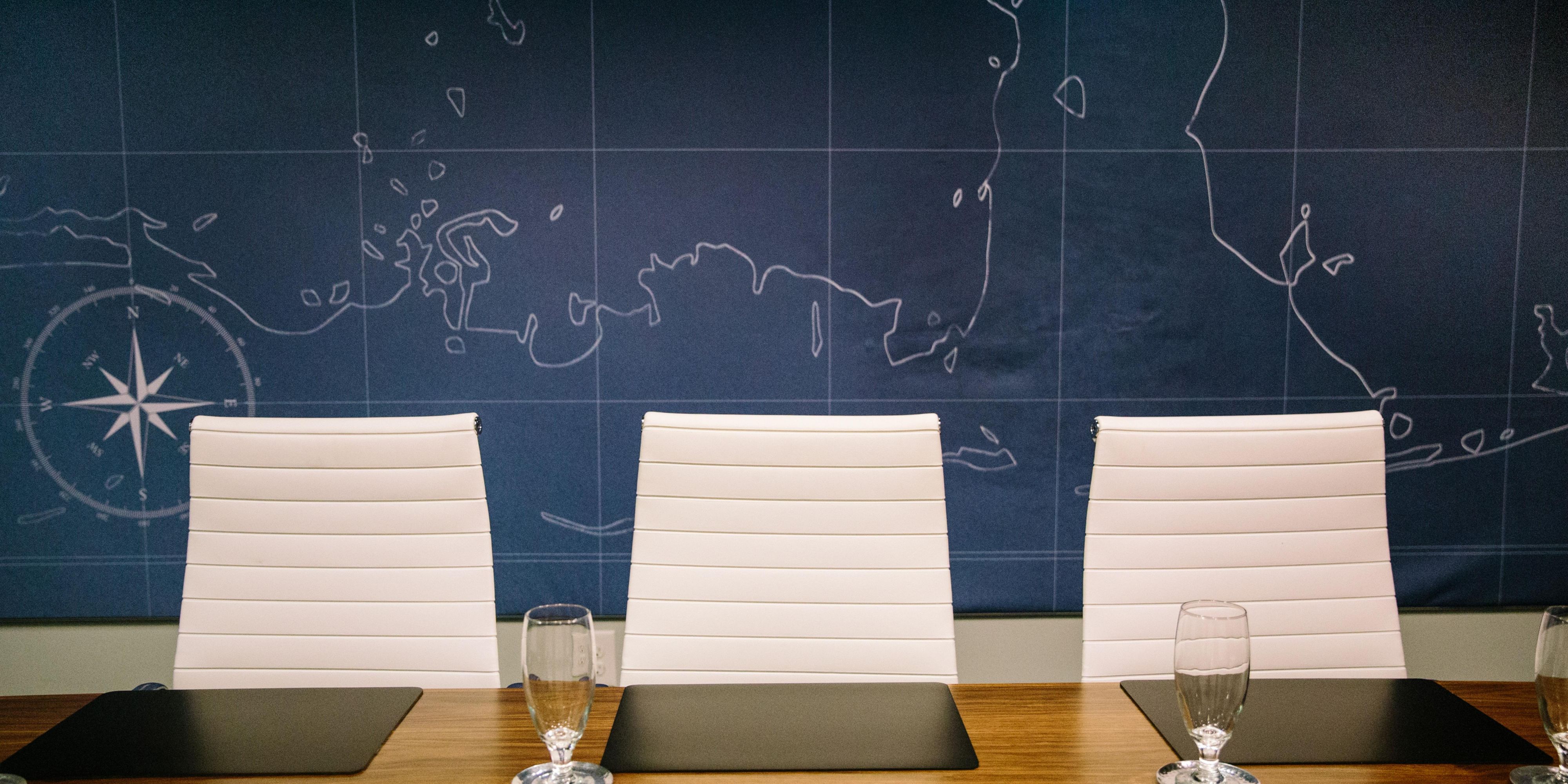 Mergulhe seu grupo em um ambiente litorâneo sereno. Temos o local perfeito para pequenas reuniões com grandes prêmios! Nossos espaços flexíveis com 966 pés quadrados. de espaço interno que ofereça polivalência funcional e inspire colaboração e criatividade.