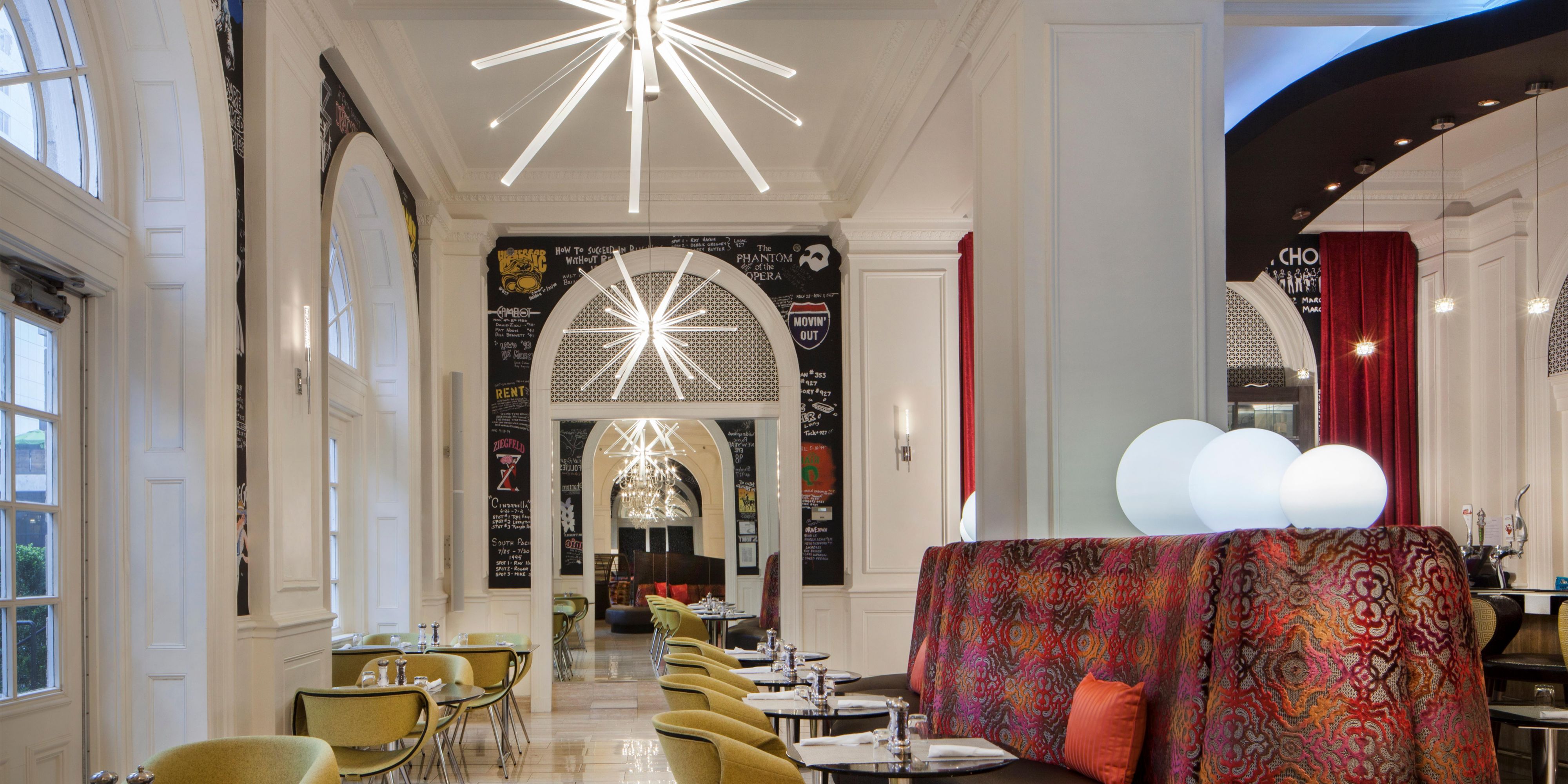 Enjoy a casual drink after work or a martini before a show at the Fox Theatre at our theater-themed bar in Midtown. Enjoy craft cocktails, local and imported beers, and wines while visual music elements and chandelier lights create a soulful ambiance. Feel the energy of our Midtown neighborhood as you mingle in our lobby lounge. Hours of Operation: Sun-Thu from 5pm-10pm and Fri-Sat from 5pm-11pm