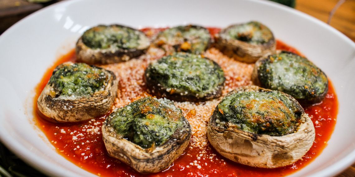 vieiras, camarones, espinacas salteadas, salsa cremosa de tomate