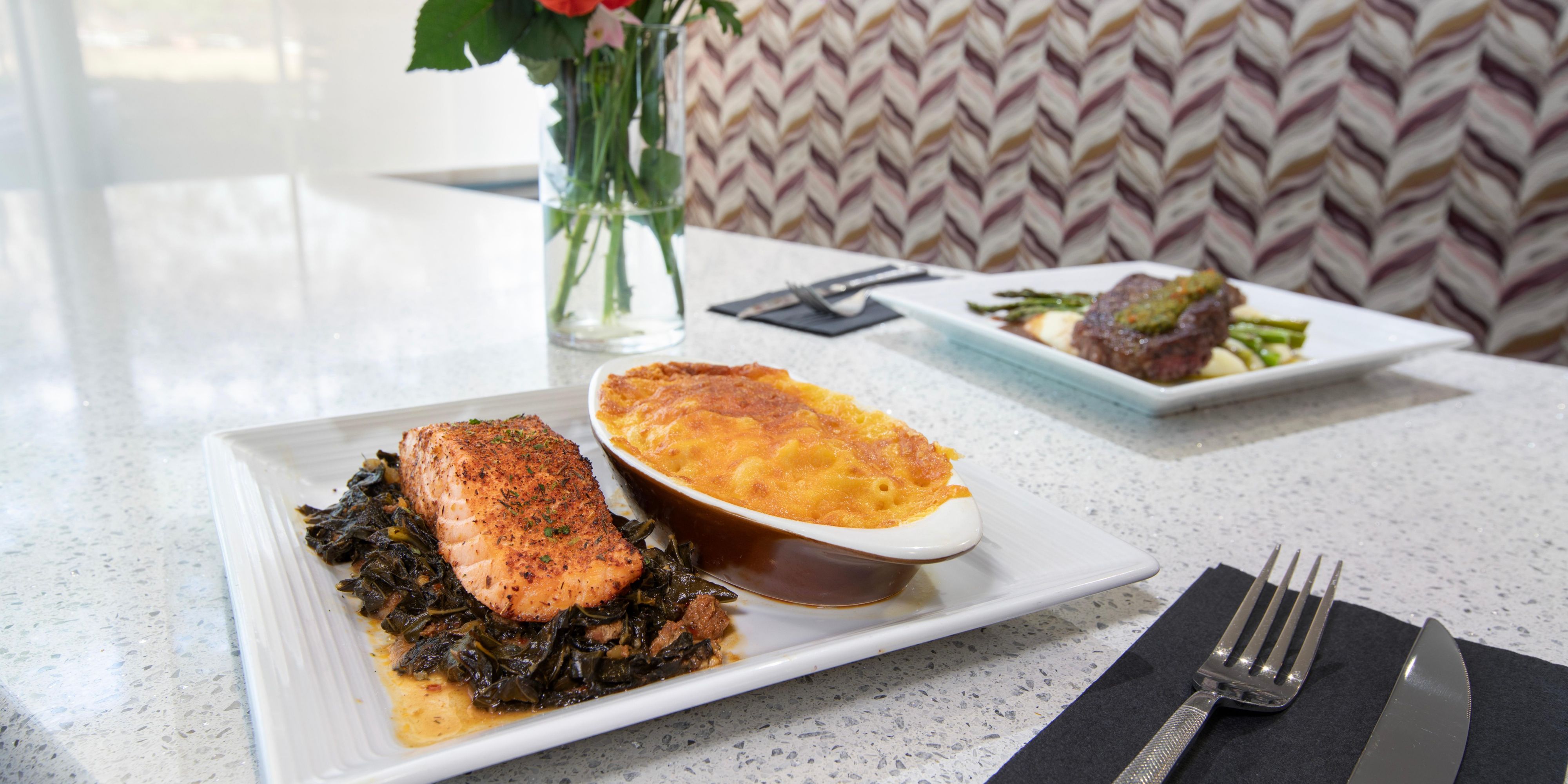 Savor locally inspired flavors at Hotel Indigo Jacksonville-Deerwood Park. Dine at 98 Forty East Bar & Bistro, open for breakfast and dinner with a full bar. Unwind on the lakefront patio, sip craft cocktails, or enjoy in-room dining for a cozy night in.