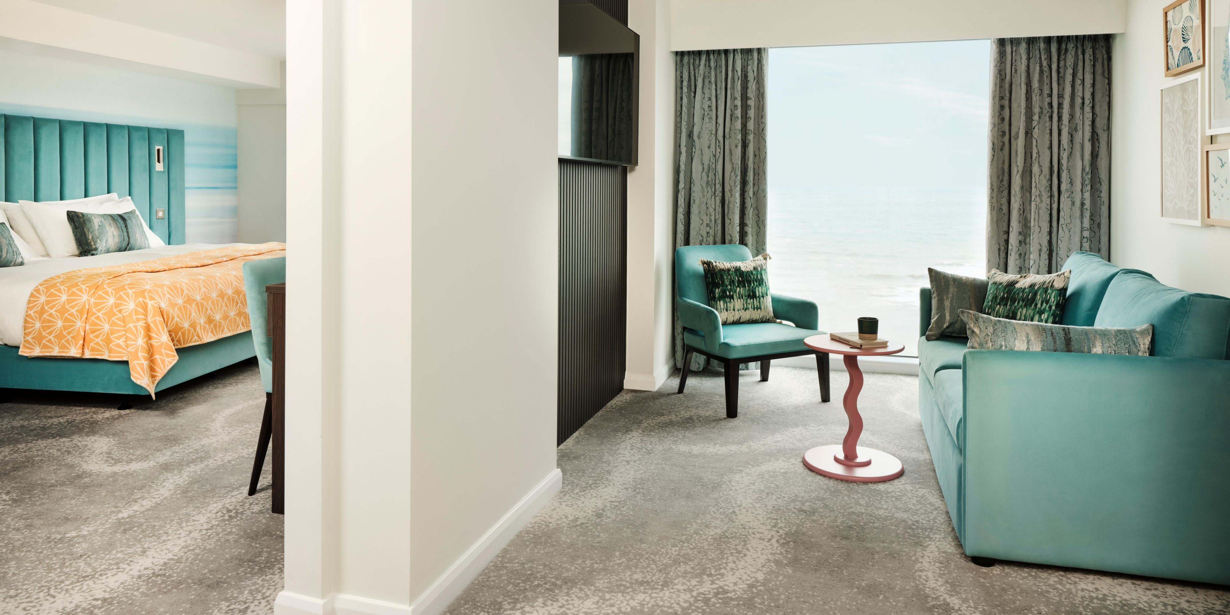 海岸の雰囲気を大切にデザインされた、落ち着いたトーキーのホテルの客室に足を踏み入れてみましょう。エアコン、ウォークインシャワー、スマートテレビ、客室コーヒー、無料Wi-Fiを完備した現代的なスタイルと魅力的な快適さをお楽しみください。