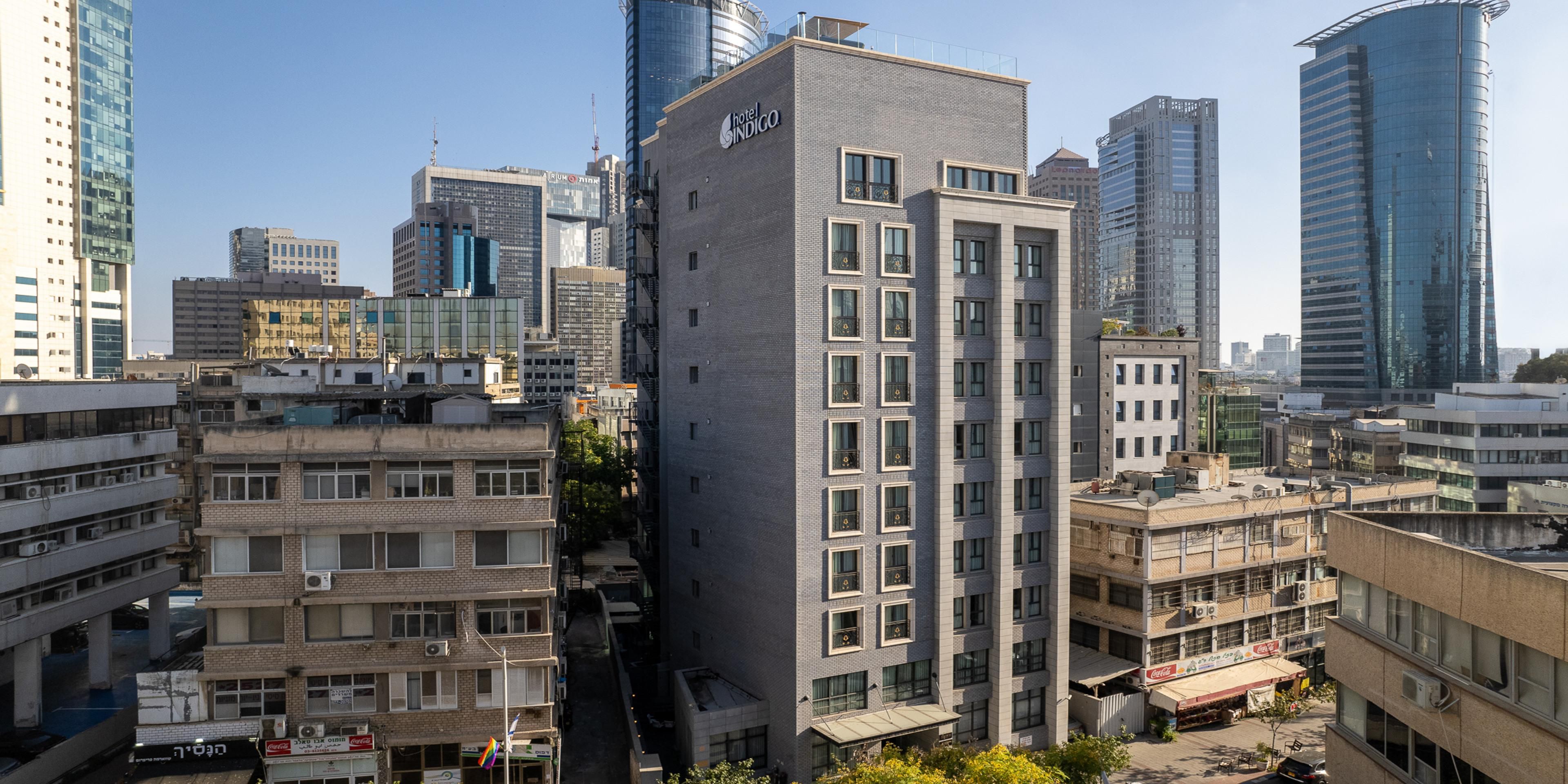 Nestled in the Diamond Exchange District on the border of Tel Aviv and Ramat Gan, Hotel Indigo® Tel Aviv – Diamond District draws inspiration from its surrounding neighborhood, blending Art Deco elements with contemporary design. Guests can enjoy the rooftop glass pool and sundeck overlooking the city skyline and the Mediterranean Sea, dine at the hotel restaurant, or unwind at SPAradise Spa .Our multilingual team is available to assist with recommendations for nearby beaches, cultural attractions, and business centers, all within easy reach of the hotel.