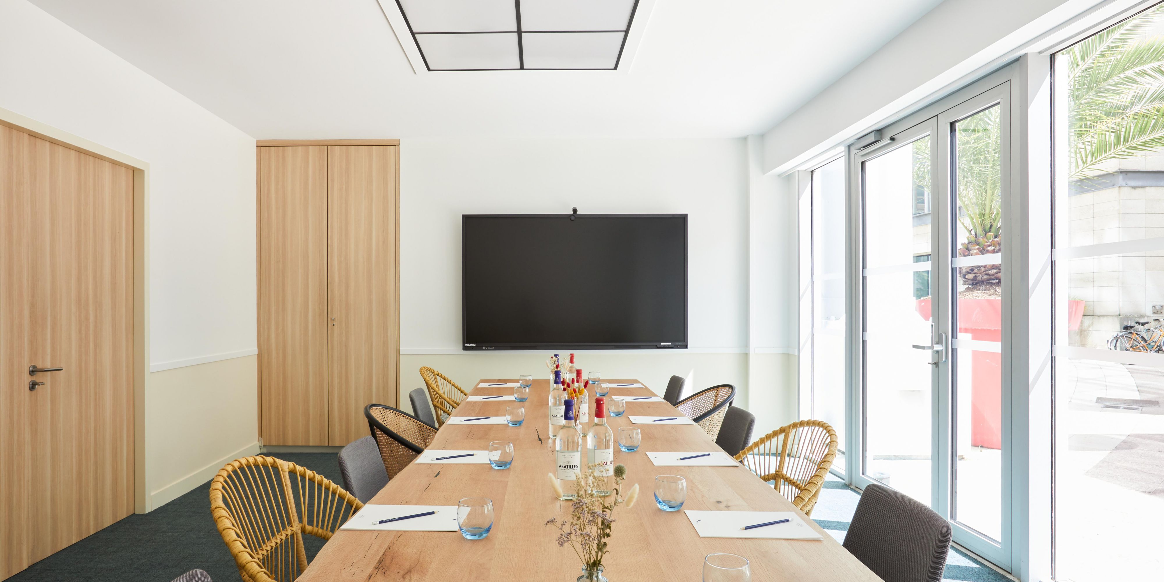 Spacious meeting room filled with natural light, perfect for up to 18 guests. Equipped with AV facilities, including videoconferencing, coffee/tea machines and microfiltered water. Enjoy direct access to the hotel forecourt, ideal for breaks or networking