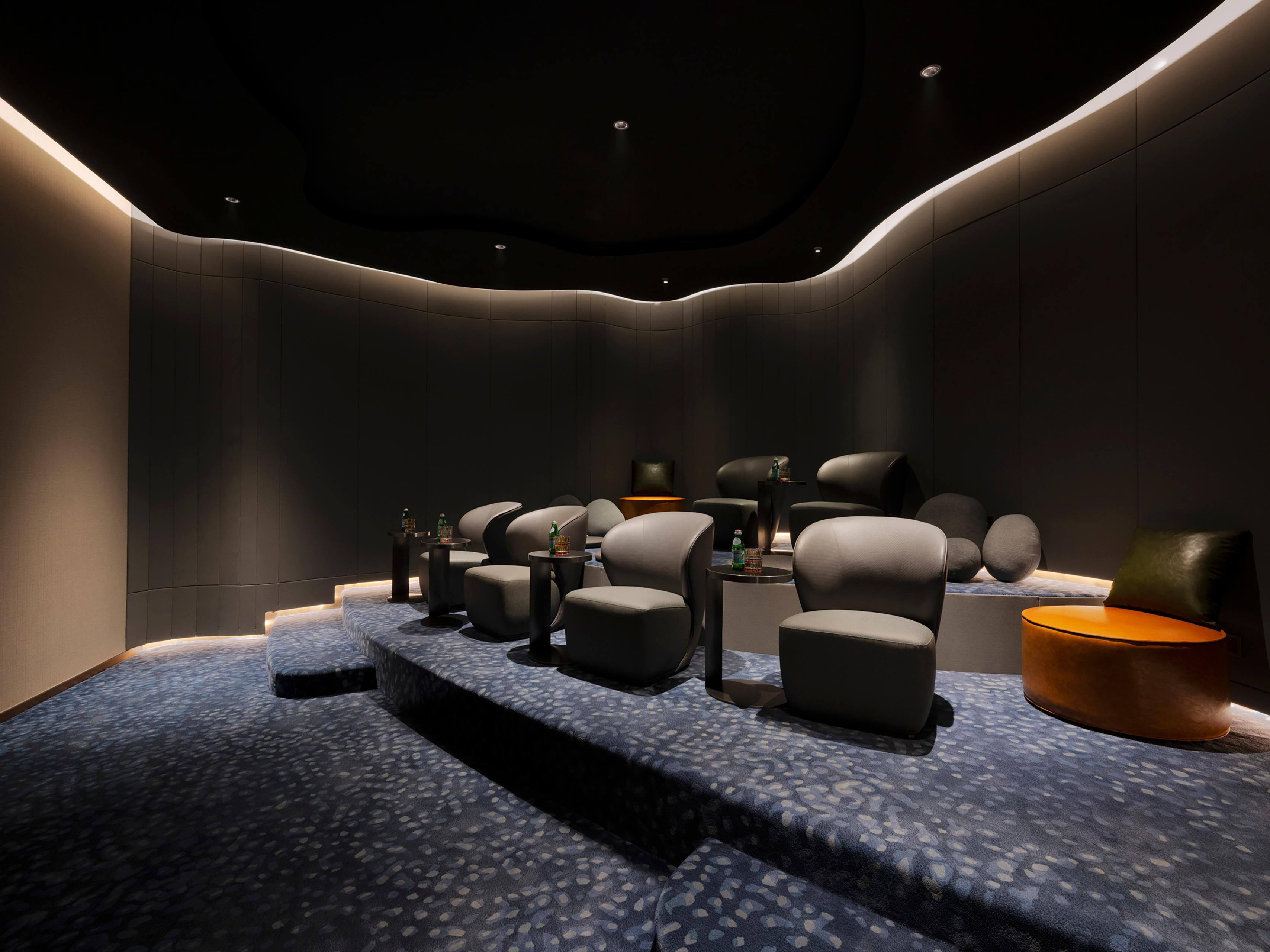 This intricately designed meeting room feature lighting frame of Ling Feng Temple's geometric elements and the colors of millennium ginkgo. Chang Shuo's vigorous strokes are reflected on the wall and ceiling to induce creative meeting inspiration.