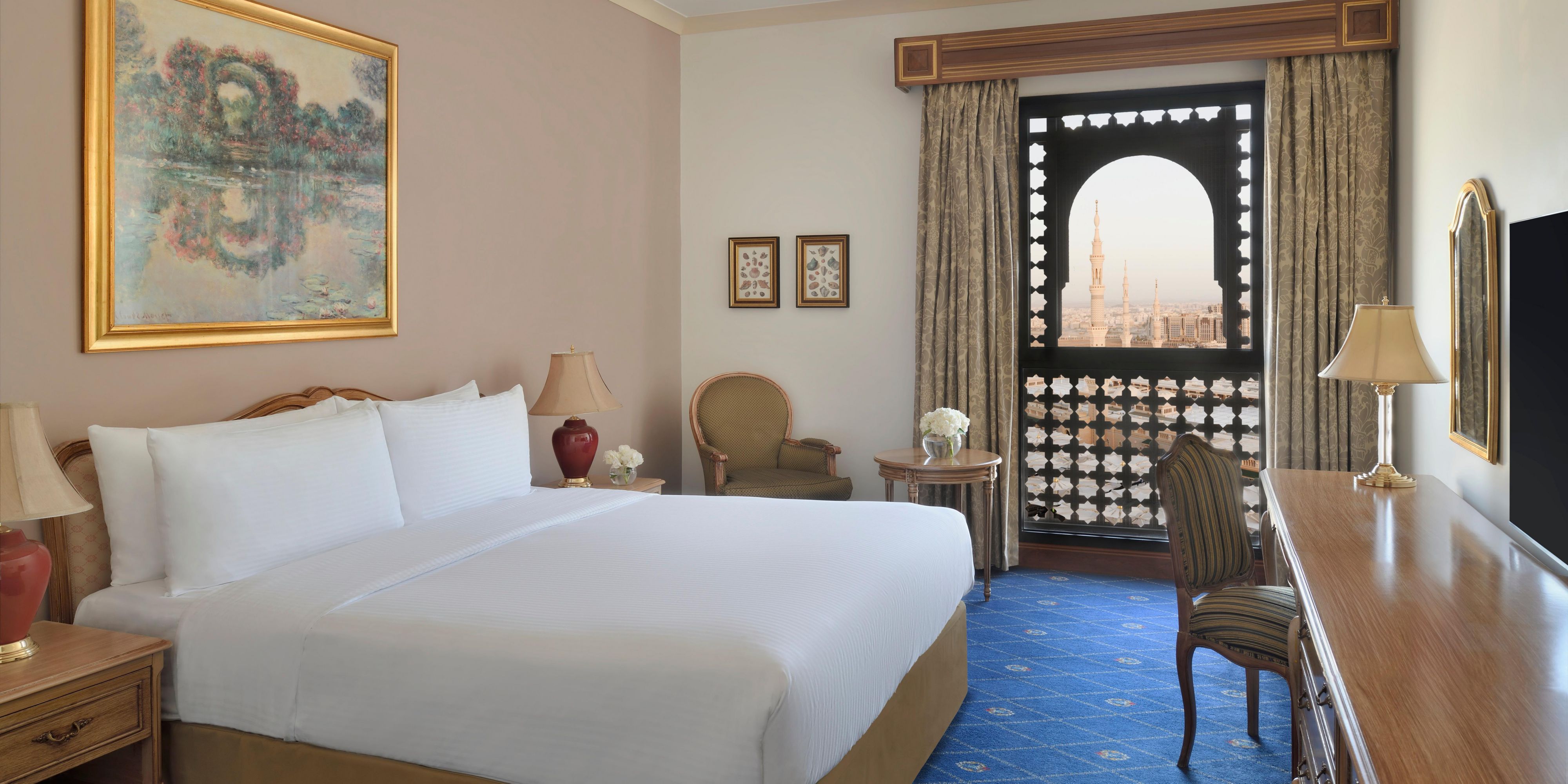 اكتشف المزيج المثالي بين المساحة ووسائل الراحة الحديثة في غرفنا الكلاسيكية. توفر كل غرفة إطلالات ساحرة على المسجد النبوي ومجهزة بمكبرات صوت حية موصولة بالحرم النبوي لضمان سماع الأذان وإقامة الصلاة.
