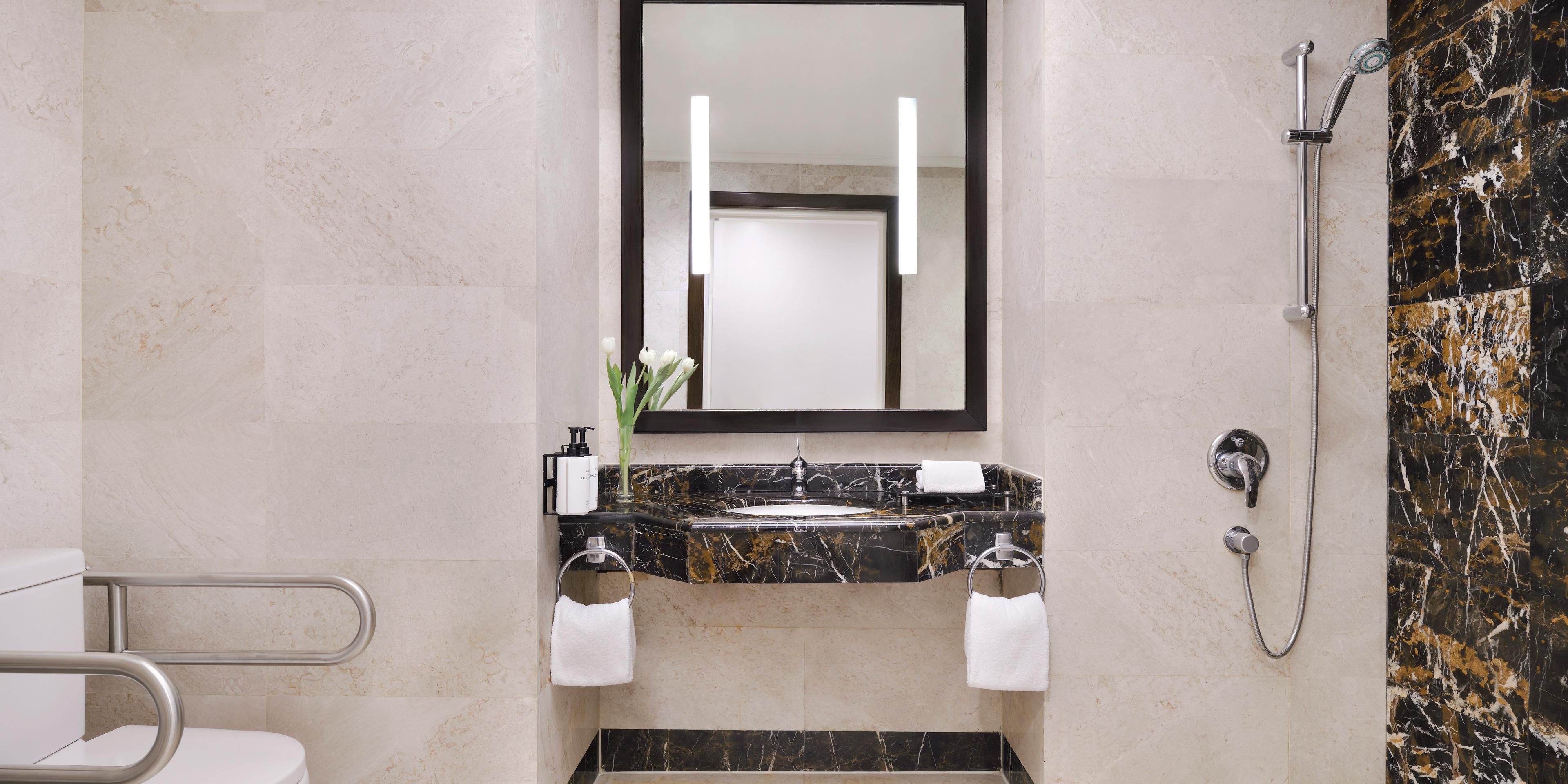 مساحة كافية لتدوير الكراسي المتحركة في الحمامات