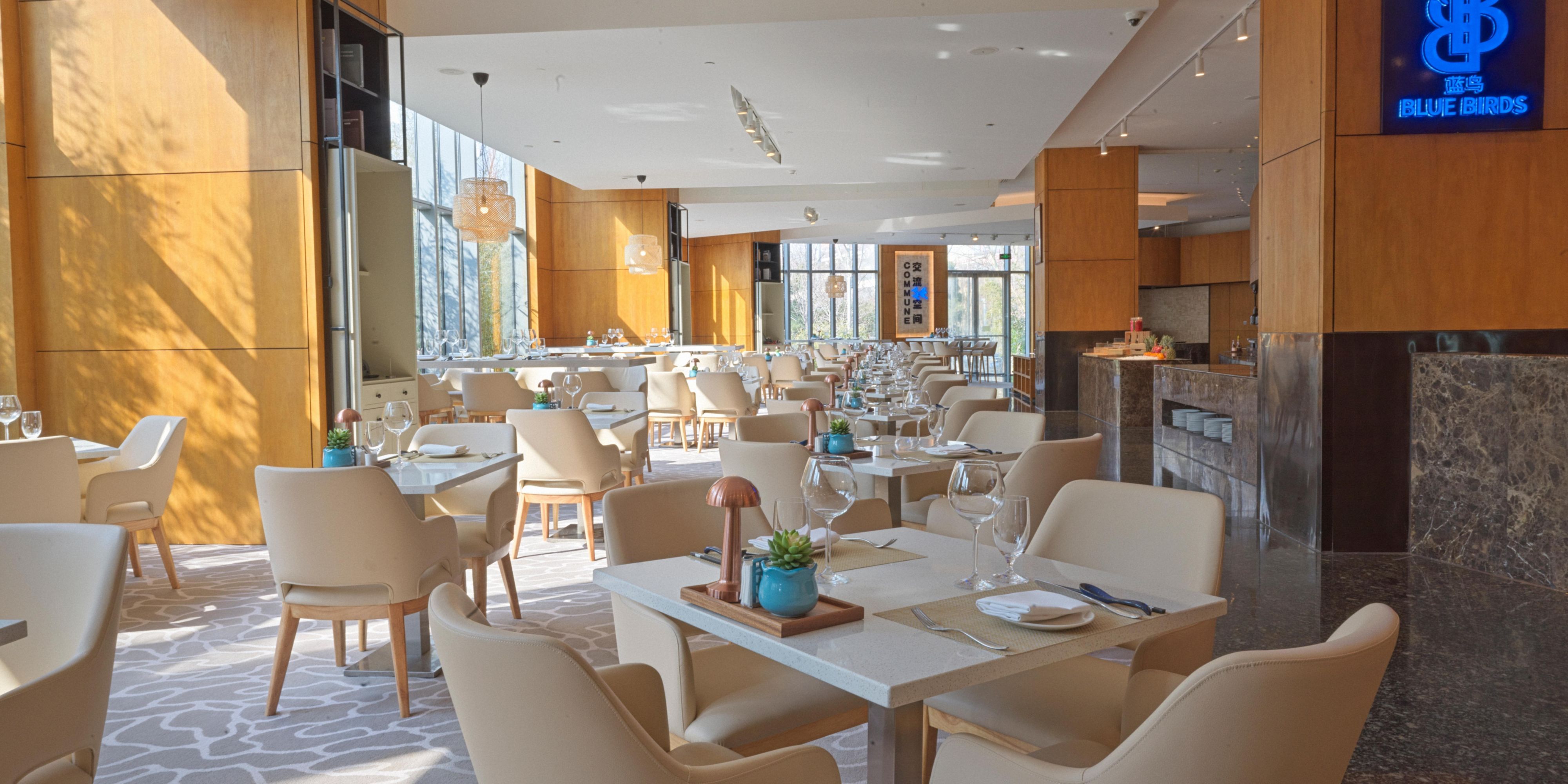 蓝鸟餐厅之名从酒店所处的奥林匹克公园内的地标性建筑中汲取灵感,满含敬意地遥映“水立方”与“鸟巢”。主打互动开放,新鲜现点,随心畅享的全新理念,为您呈上精心挑选、新鲜烹制的全服务式无国界料理,高端的桌边服务,心仪美味由专业侍者优雅地送上桌前,在观赏互动中品鉴,为您呈献一场琳琅满目的美食盛宴。