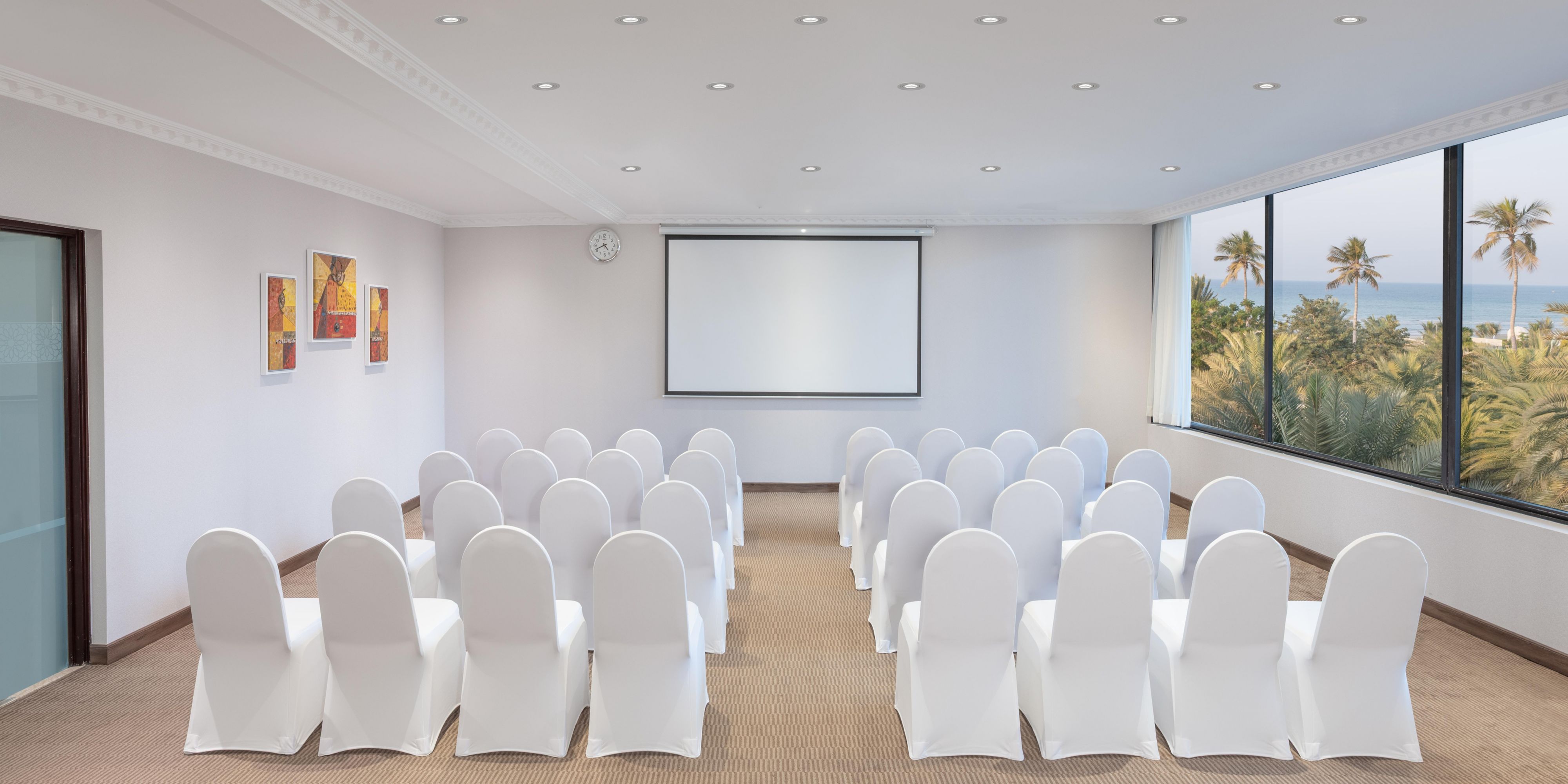 3階にあるオーシャンビューからは、マスカットの海岸線を一望できます。360°カメラなど、最新のハイブリッドミーティングテクノロジーを完備し、マスカットのシービューホテルでのカンファレンスやミーティングに最高の選択肢です。