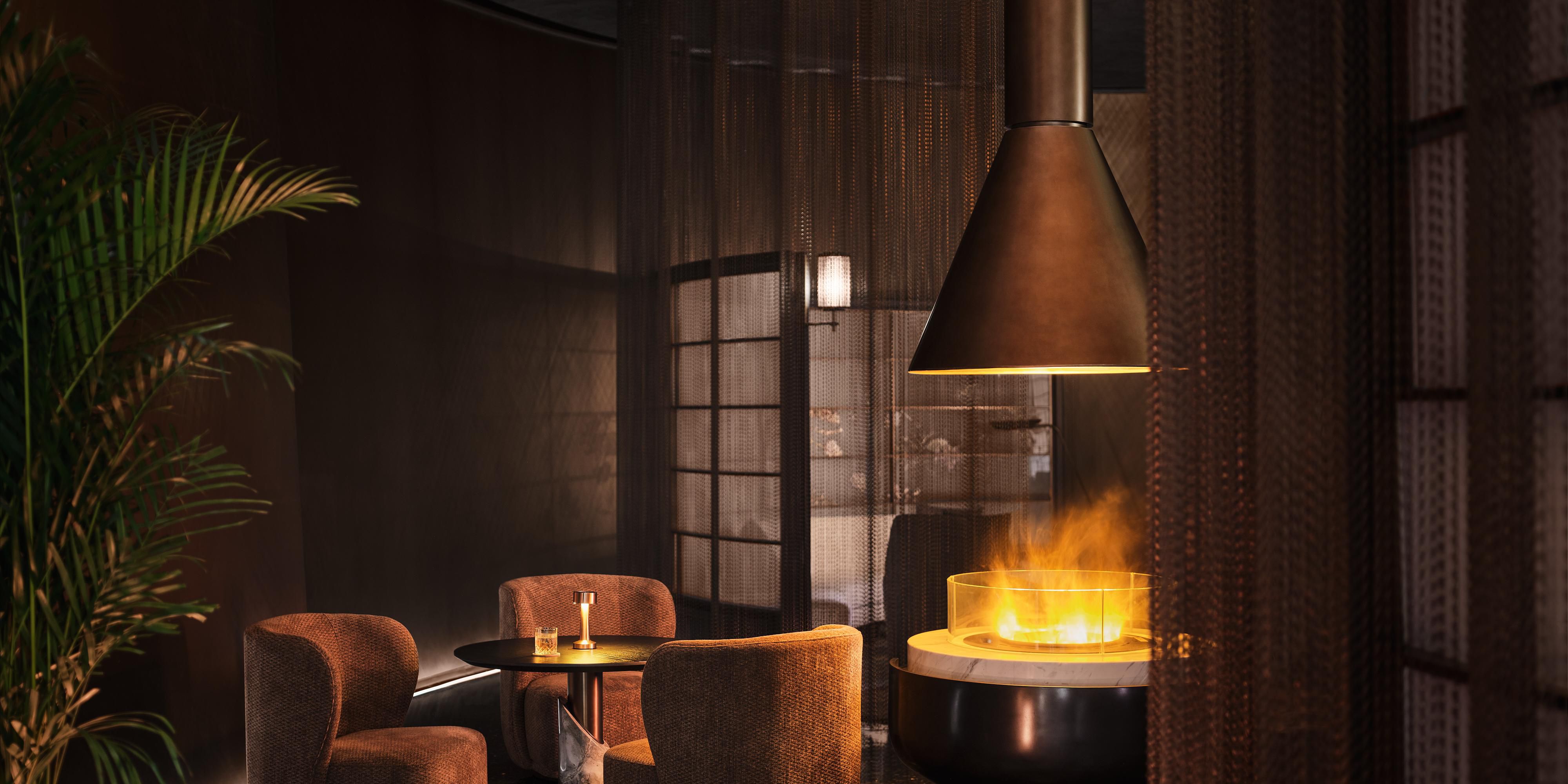 차분한 팔레트로 물들인 이 공간은 굽은 등받이가 높은 소파와 계단식 메탈릭 휘장을 통해 친밀감을 조성합니다. 대리석 바는 춤을 추는 벽난로 불씨 옆에서 부드럽게 빛납니다. 대낮에는 향기로운 맥주가 속삭이고, 황혼은 벨벳 재즈 노트와 앰버 색상의 술을 선사합니다. 그림자와 멜로디 사이의 순간이 머무는 시간을 초월한 안식처.