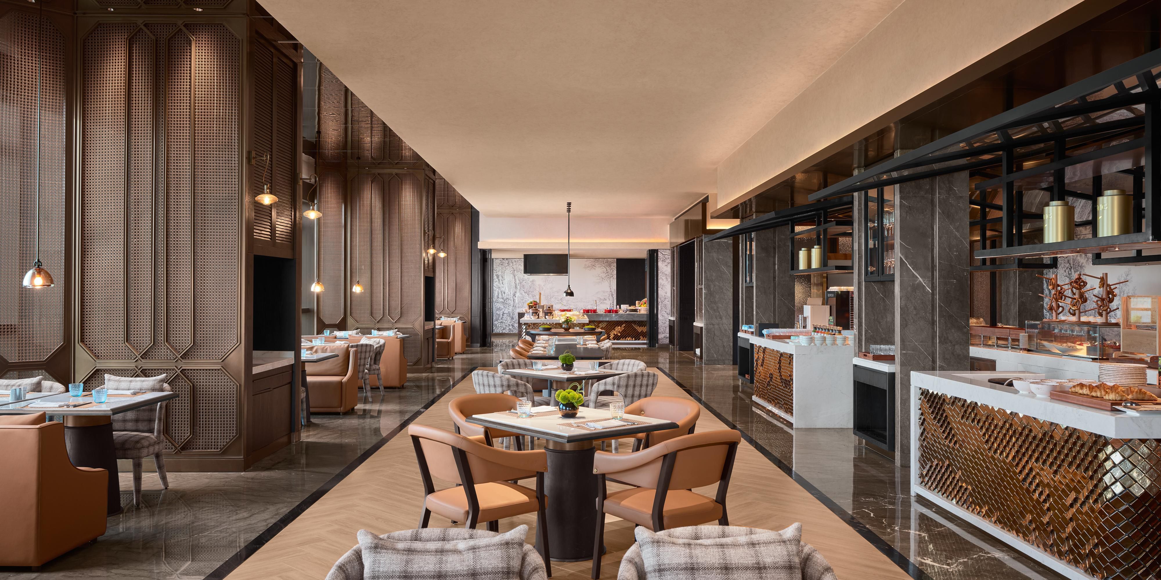 브러시드 메탈 질감이 희미한 샹들리에 아래에서 트래버틴과 대화합니다. 조식 뷔페는 도시의 아침을 활기차게 만들고, "Connoisseur's Attaché 식사"은 정오 이후 3막을 공개합니다: 셰프의 시크릿 에디션으로 큐레이트된 에피쿠로스 100 요리, Limitless Cue QR 극장 주방에서 불러온 요리 오케스트라, Attaché Ritual 떼루아 오디세이를 해독하는 전용 플레이버 소믈리에.