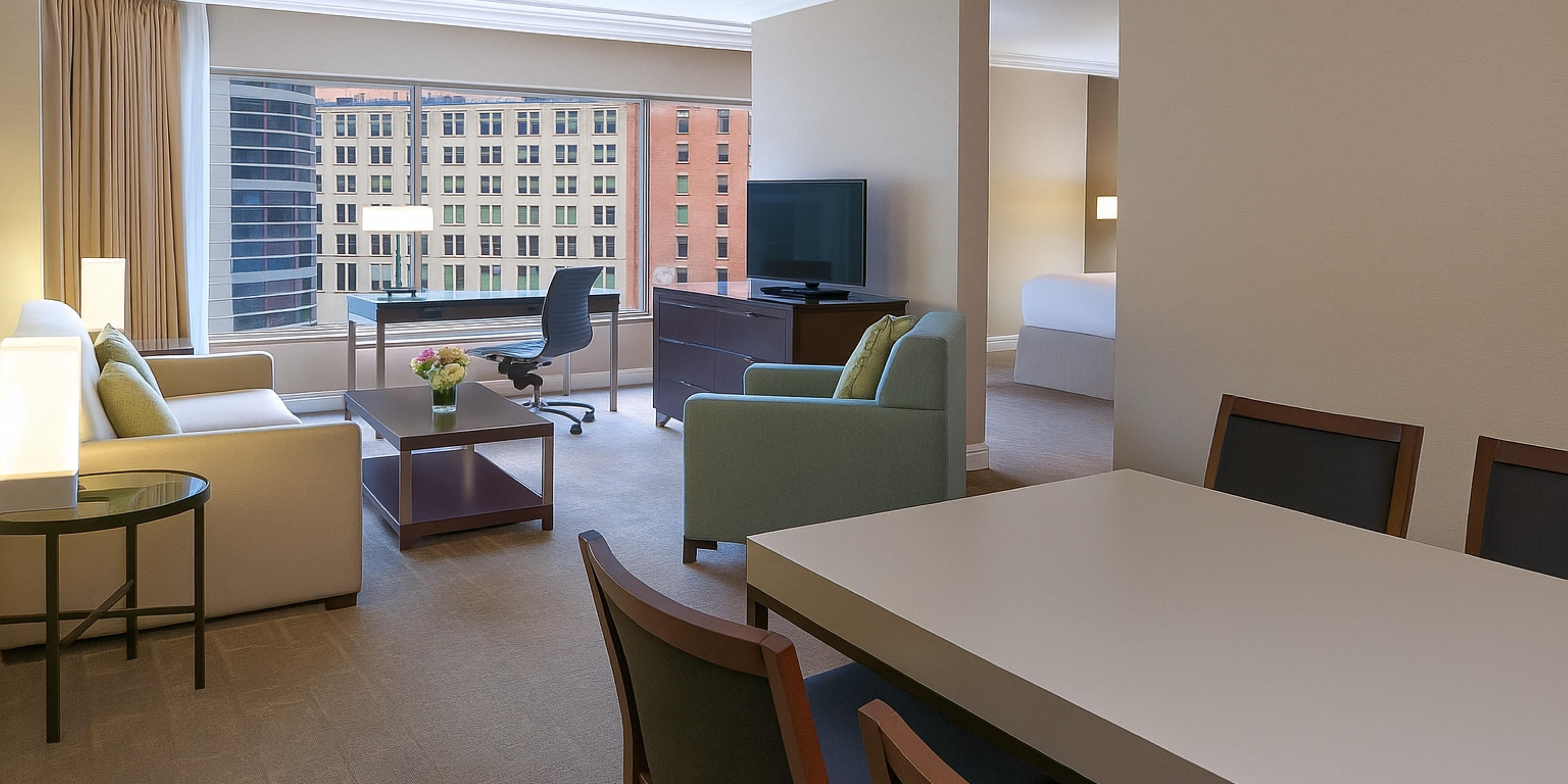 Modern furnishings and exclusive amenities set the standard for our guestrooms, each featuring either king or queen-sized beds and spa-like bathrooms. These sophisticated rooms and suites offer unrivalled views of Toronto’s downtown and lake Ontario.