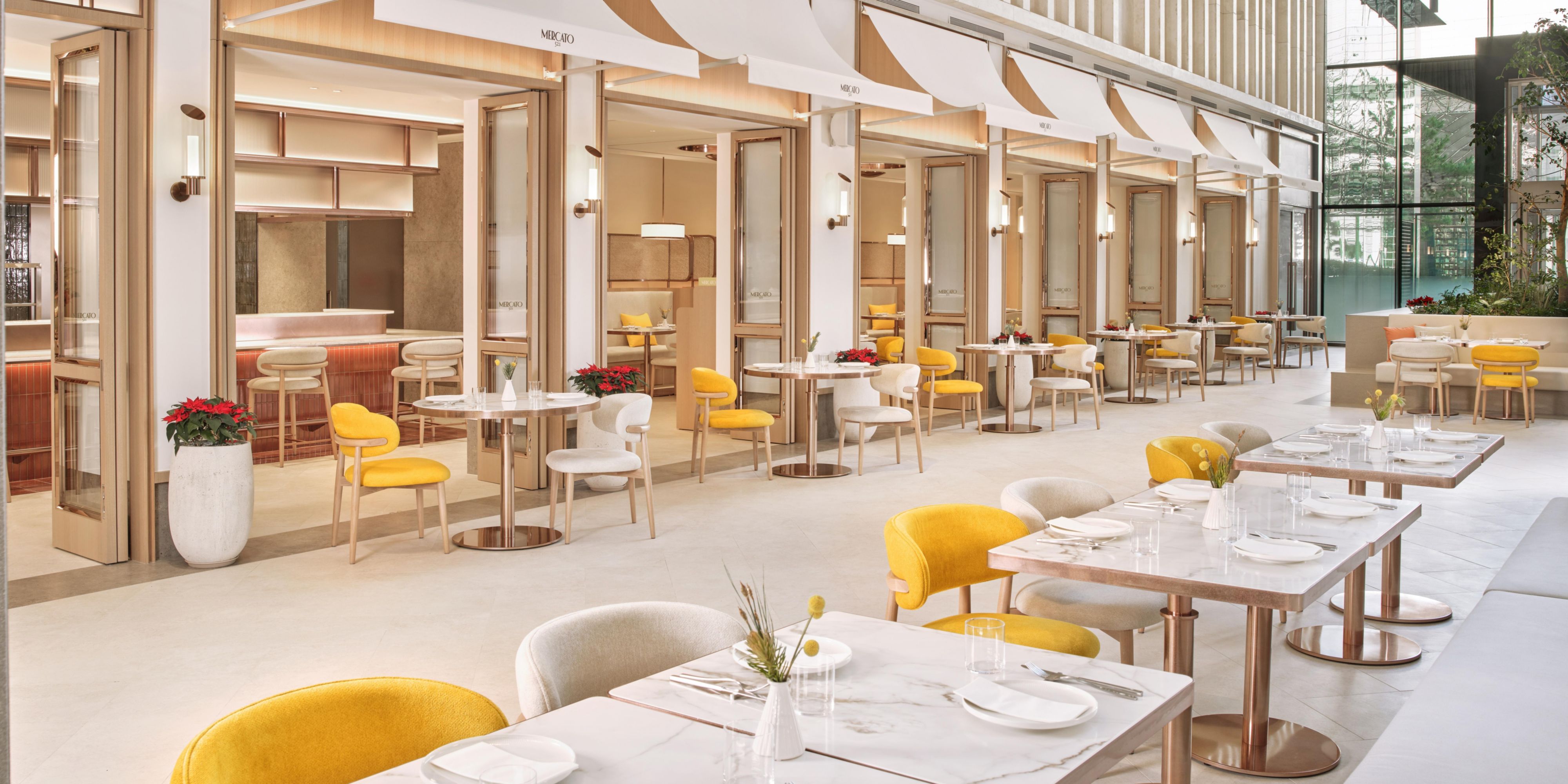 MERCATO521. is a contemporary dining & bakery inspired by vibrant European city markets. Combining “Mercato,” Italian for market, with the hotel’s address, Teheran-ro 521, it embodies urban energy. In a sunlit atrium terrace, time-inspired dishes deliver a refined, sensory culinary experience. Experience an extraordinary world of culinary delights presented by chefs from various disciplines at MERCATO521.