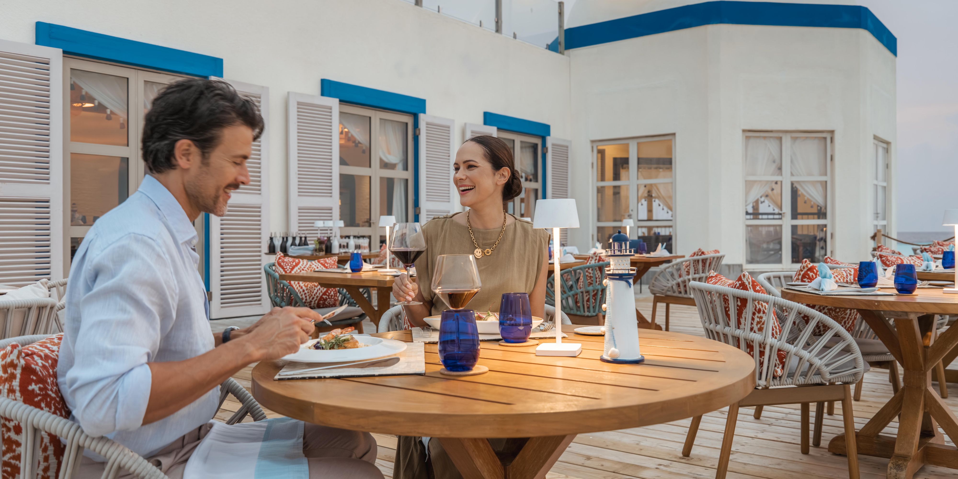 Mejore su experiencia gastronómica en The Lighthouse, un restaurante de especialidades sobre el agua que sirve platos de inspiración mediterránea complementados con impresionantes vistas al océano de 360 grados. Inspirándose en el mar Mediterráneo con un toque contemporáneo, este restaurante promete un viaje extraordinario. Comience la noche con una bebida antes de la cena en la cima del faro, seguida de una experiencia gastronómica privada seleccionada o una cena social para compartir en el área del restaurante principal.