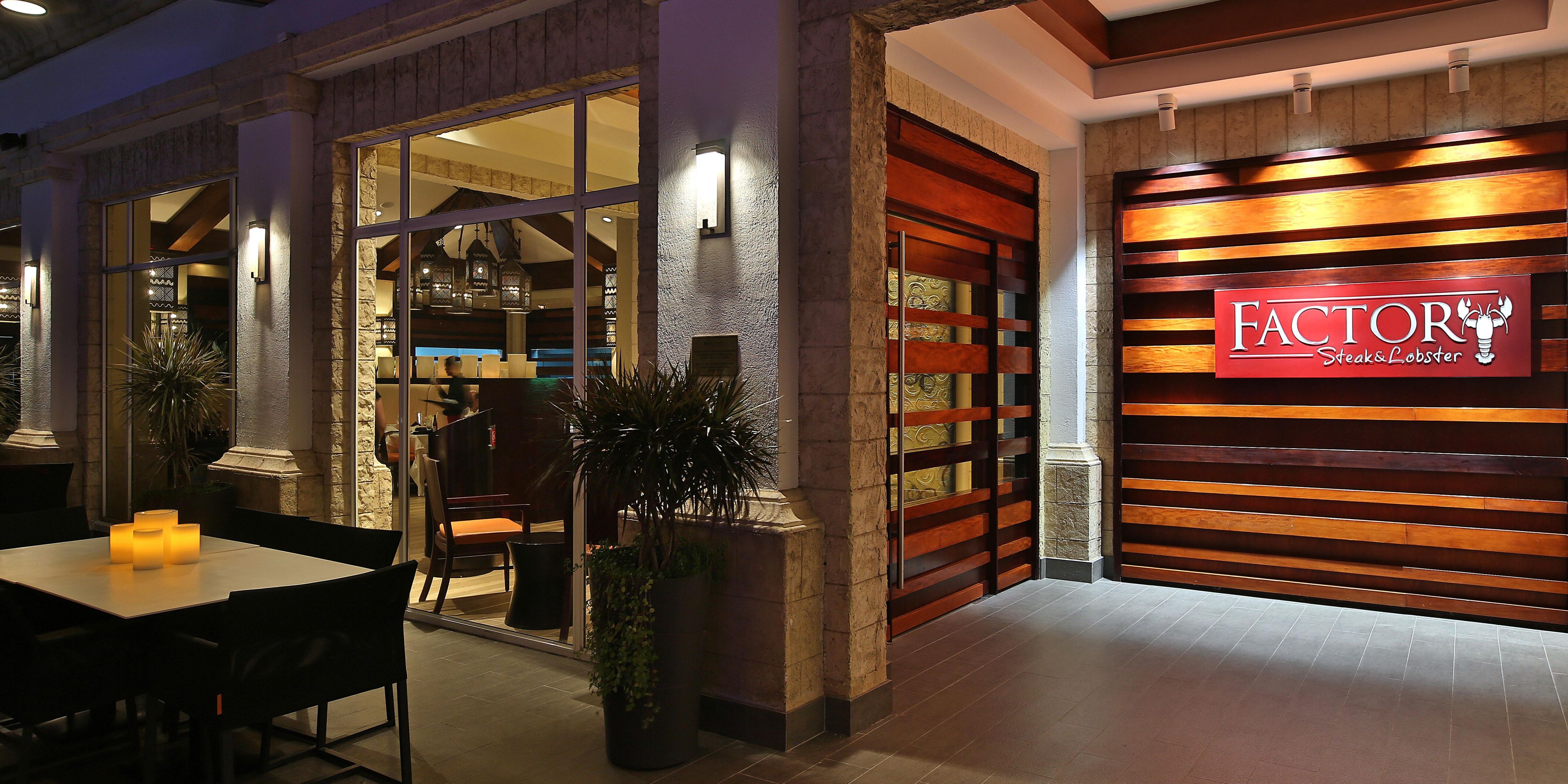 El restaurante Factory Steak and Lobster cuenta con carnes importadas, langosta a la parrilla y distintos tipos de pescados. La cocina, cubierta por paredes de vidrio, le permite observar la manera en la que preparan sus platillos mientras disfruta del ambiente elegante. Se ofrece la opción de cenar en la terraza mientras disfruta de la hermosa vista al jardín y la piscina del lugar.
