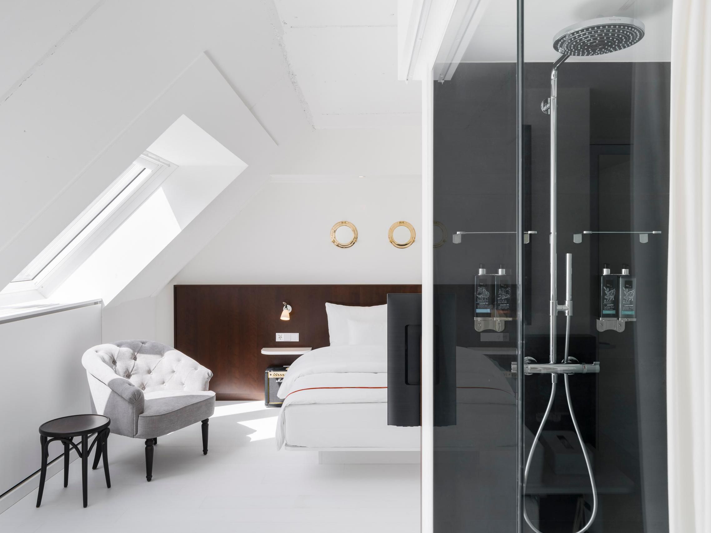 どの客室、都会の忙しい一日の後には、安らぎのひとときとなっています。中に入って、靴を脱ぎ捨てて、大きくてふわふわの羽毛布団を備えた居心地の良い特大のベッドに飛び込んでください。あたたかく木のパネル、堅木張りの床、特徴的なタッチが、雰囲気に温かみと質感を高めています。