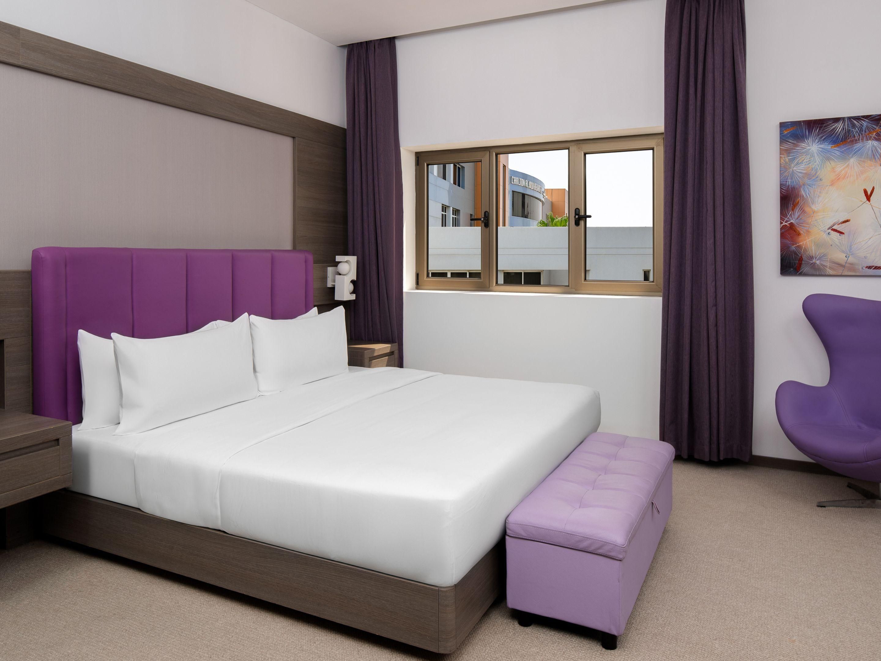 Merasa di rumah dengan dekorasi yang mengundang dan ruang yang luas di kamar kontemporer kami. WiFi gratis dan ruang kerja yang ditata dengan baik memberikan dorongan sempurna untuk produktivitas. Nikmati pemandangan kota dan temukan suasana unik yang membedakan Carlton Al Moaibed di antara hotel-hotel di Khobar.