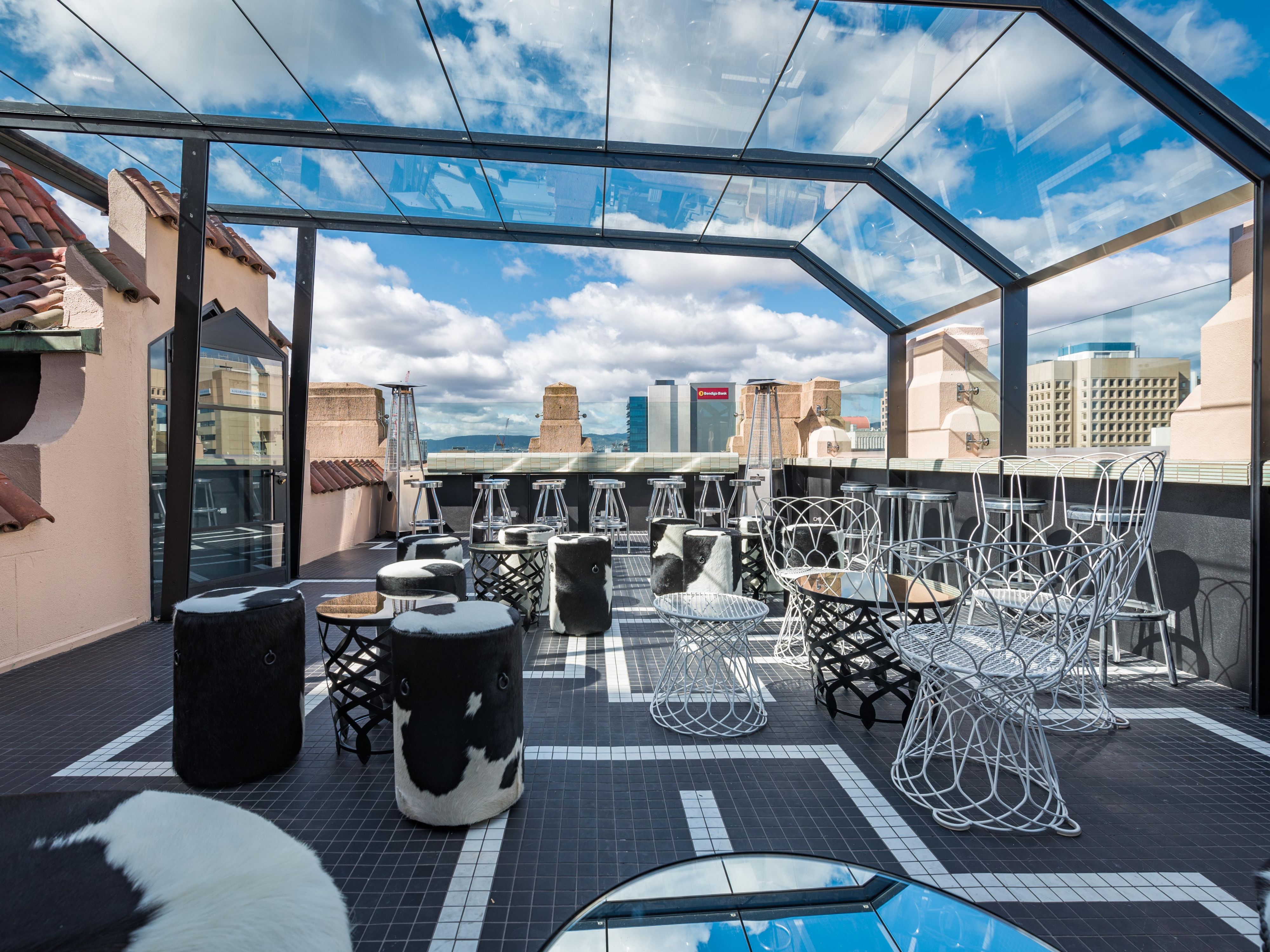 Perched atop the Mayfair Hotel Adelaide with enviable views across the Adelaide skyline and Rundle Mall, the iconic Hennessy Rooftop Bar is designed for year round enjoyment adorned with bespoke furnishings. A sophisticated escape, guests are afforded an opulent atmosphere only surpassed by menus curated with premium champagne, inventive house cocktails, and the finest South Australian beverages. Paired with light meals and classic bar snacks, Hennessy Rooftop Bar is a destination unto itself.