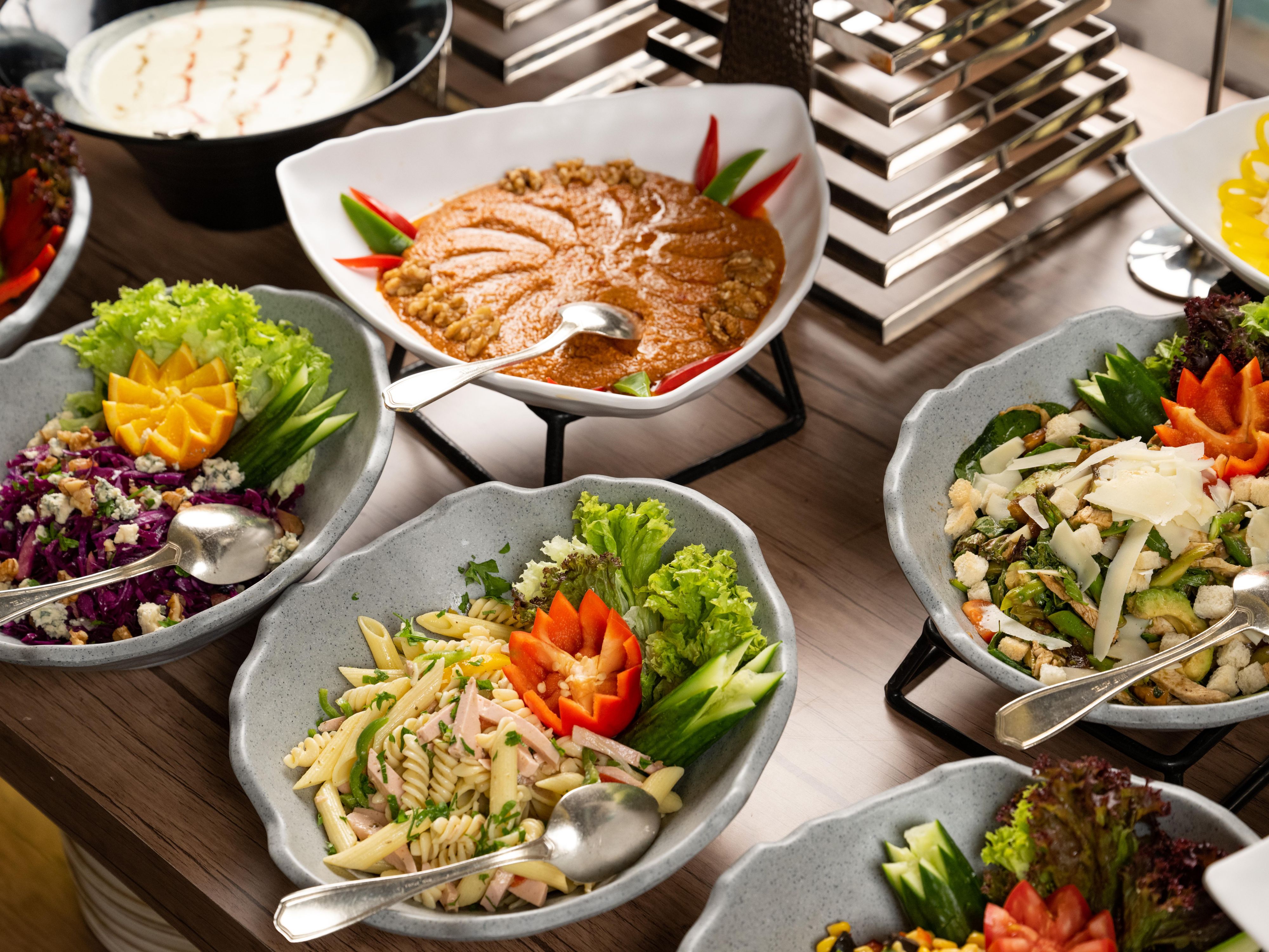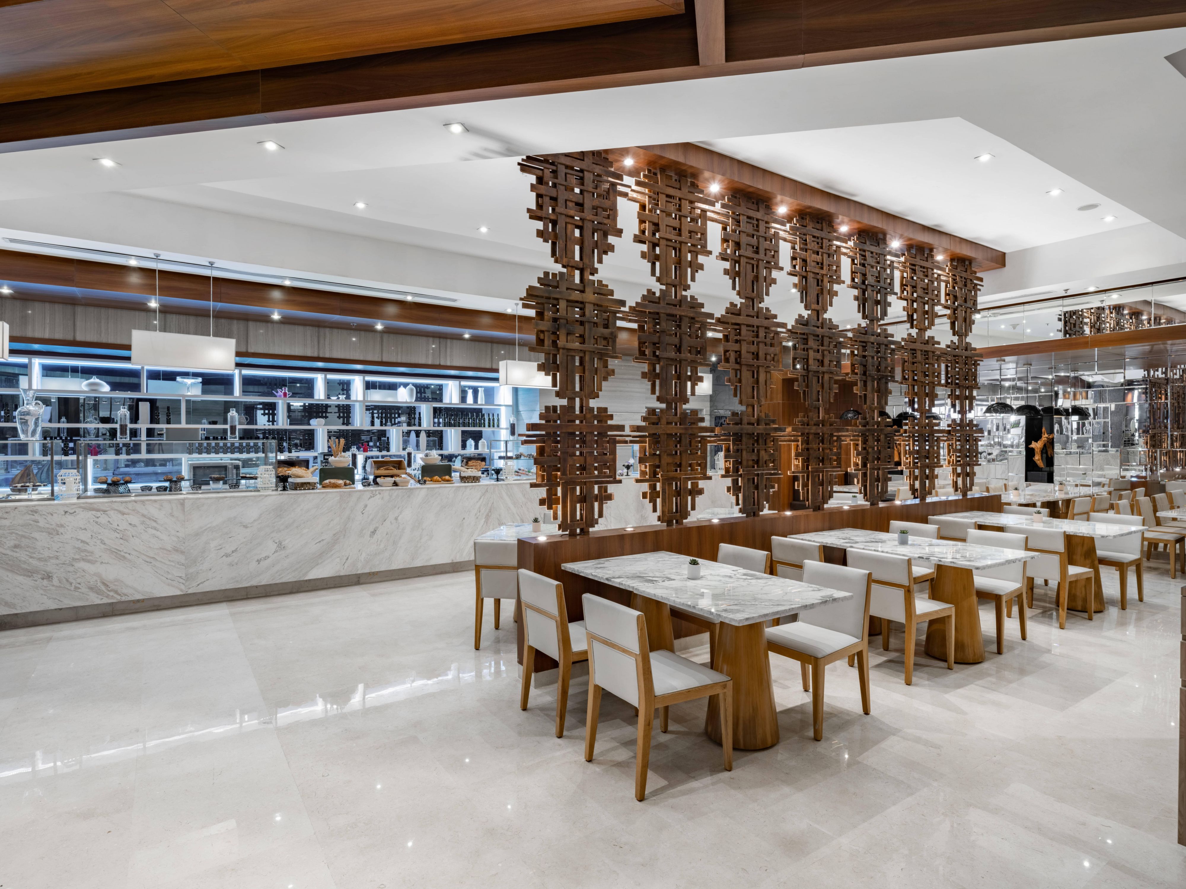 Le Comptoir Cafe では、さまざまな種類の香り高いコーヒー、フレッシュジュース、特製ブレッドをご用意しております。こちらでは、モダンなパンと伝統的なパンの組み合わせを、オーブンから直接提供します。サラダ、サンドイッチ、シンプルなあたたかく食事を提供するメニューをモダンなスタイルで提供しています。