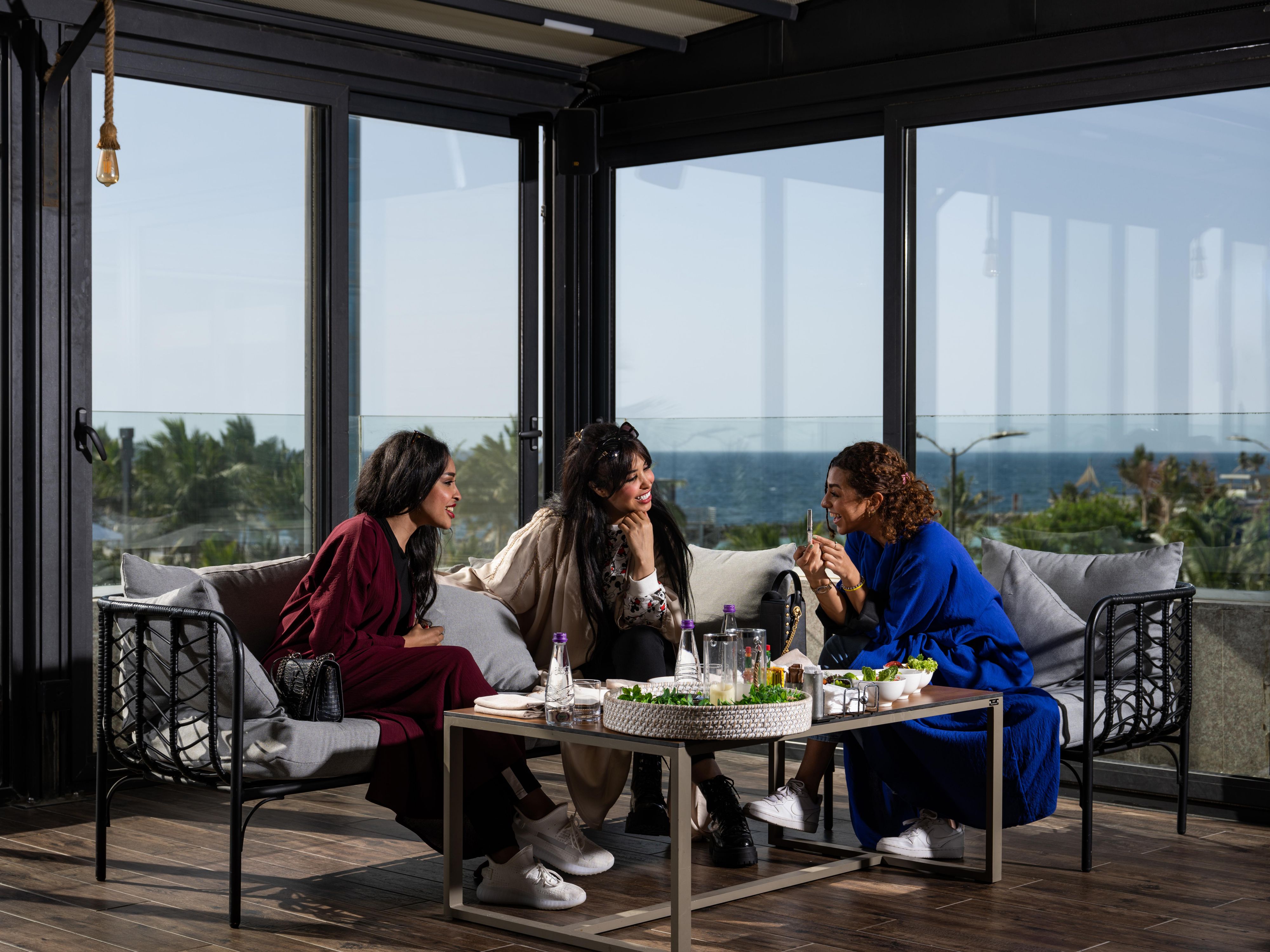 魅惑的なアストロテラスラウンジでジェッダウォーターフロントの特別な景色を眺めながら、さまざまなドリンクやスナックをお楽しみください。青く澄んだ紅海の海を眺めながら、屋外のそよ風にあたたかくながらのお食事をお楽しみいただくこともできます。