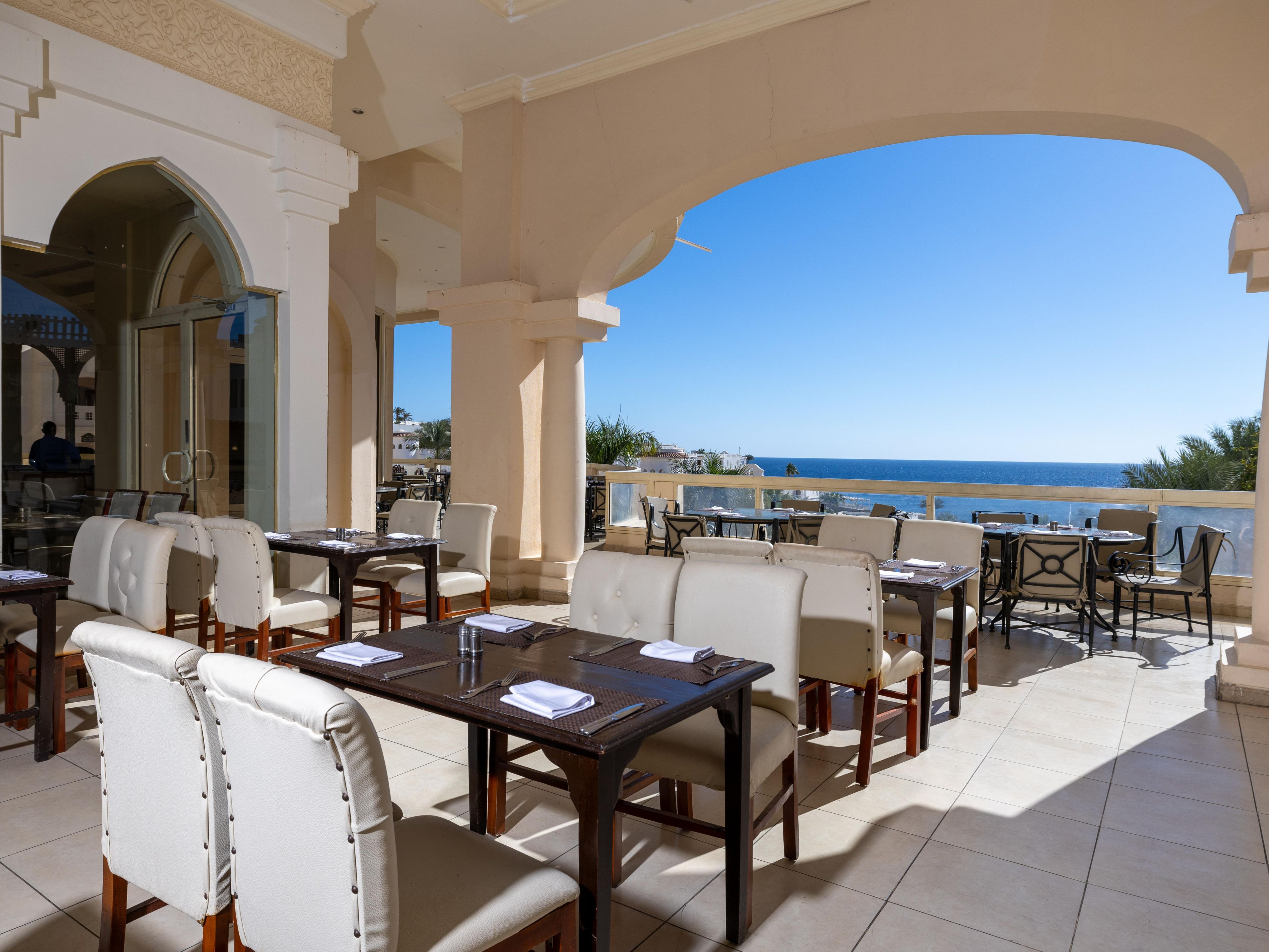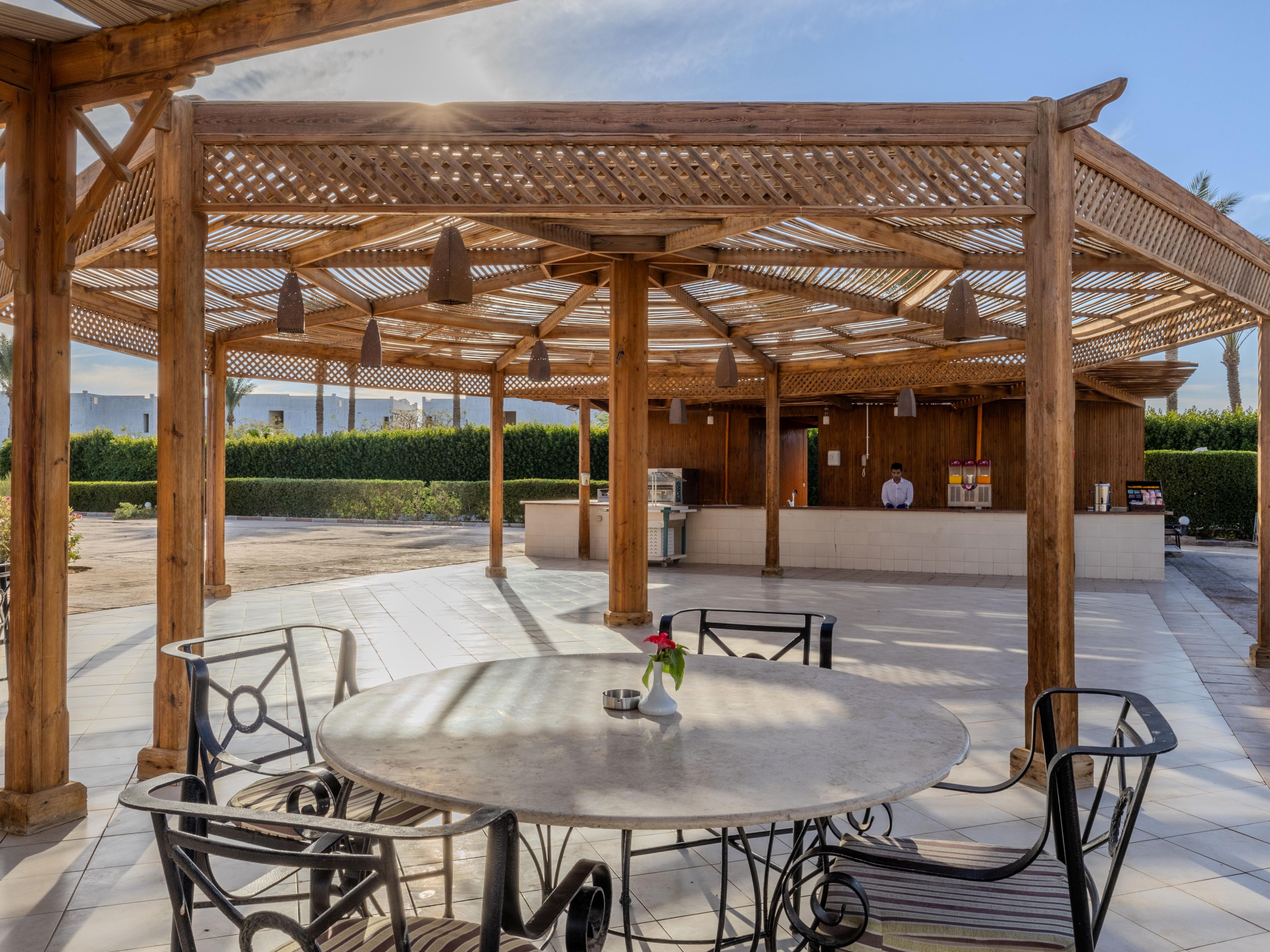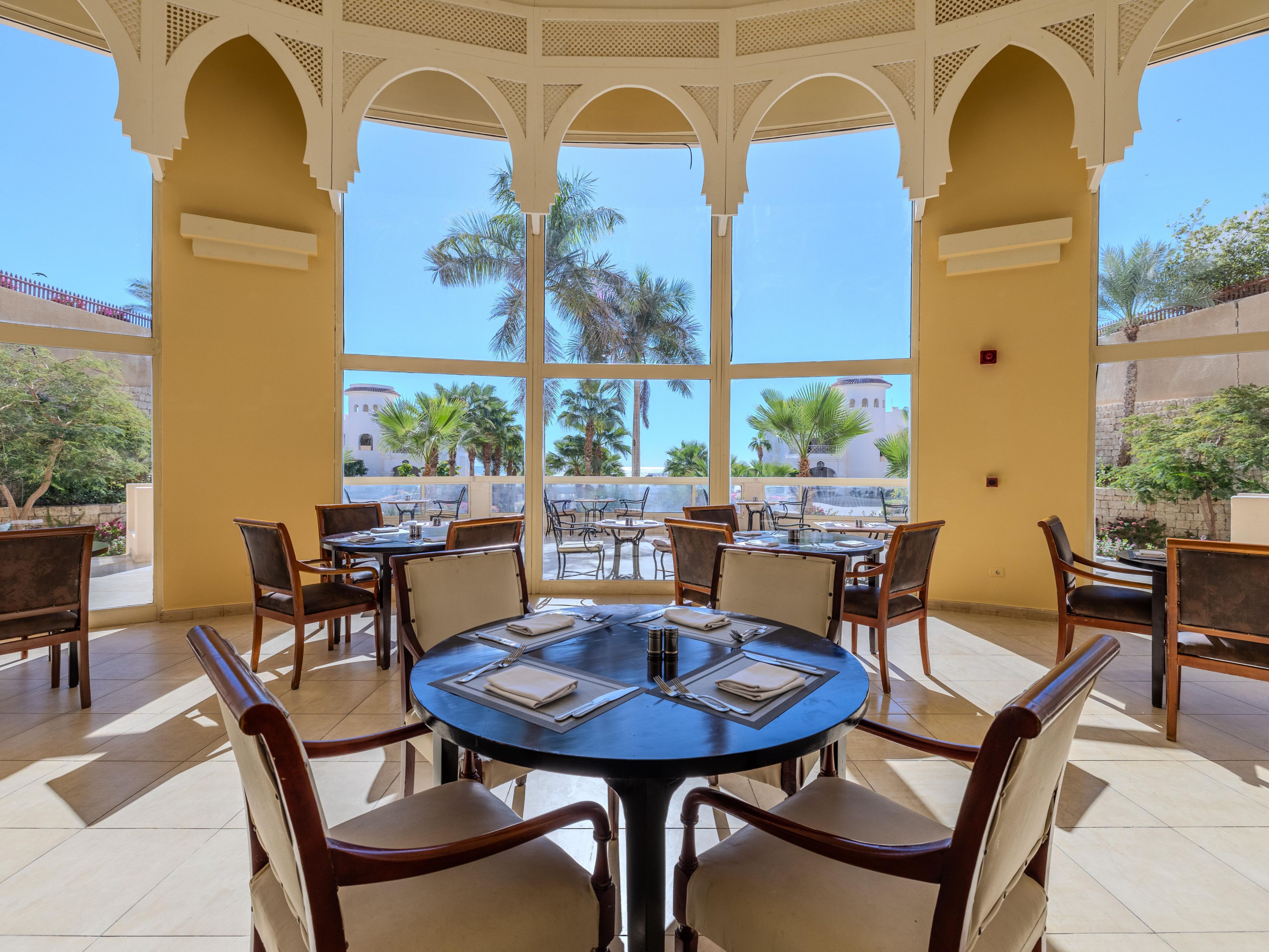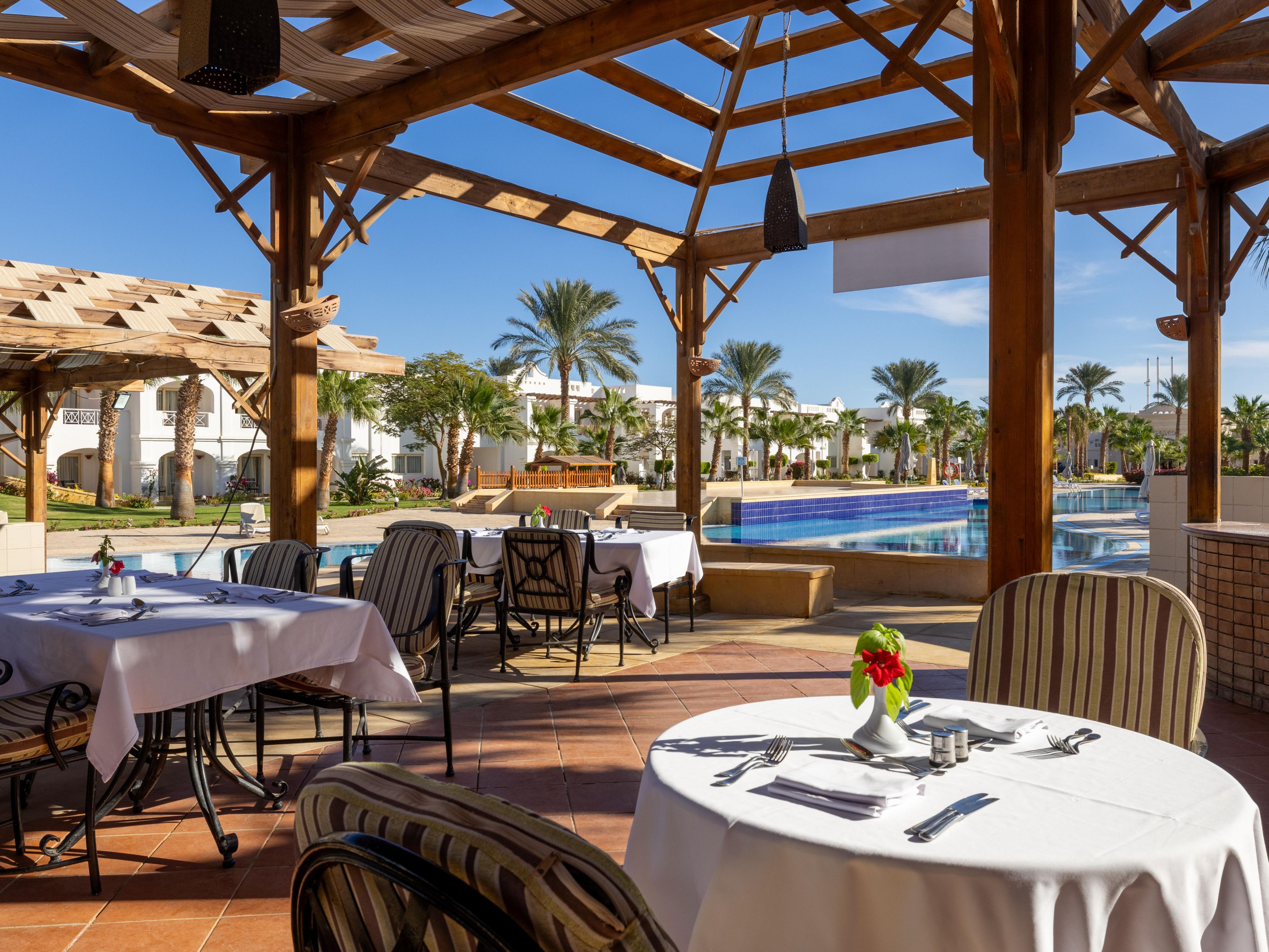 Located in the lobby, Belvedere Bar features an outdoor terrace with stunning views of the Red Sea and pools. Open 24 hours, it’s the ideal spot to relax anytime with your favorite drinks and enjoy the breathtaking scenery.