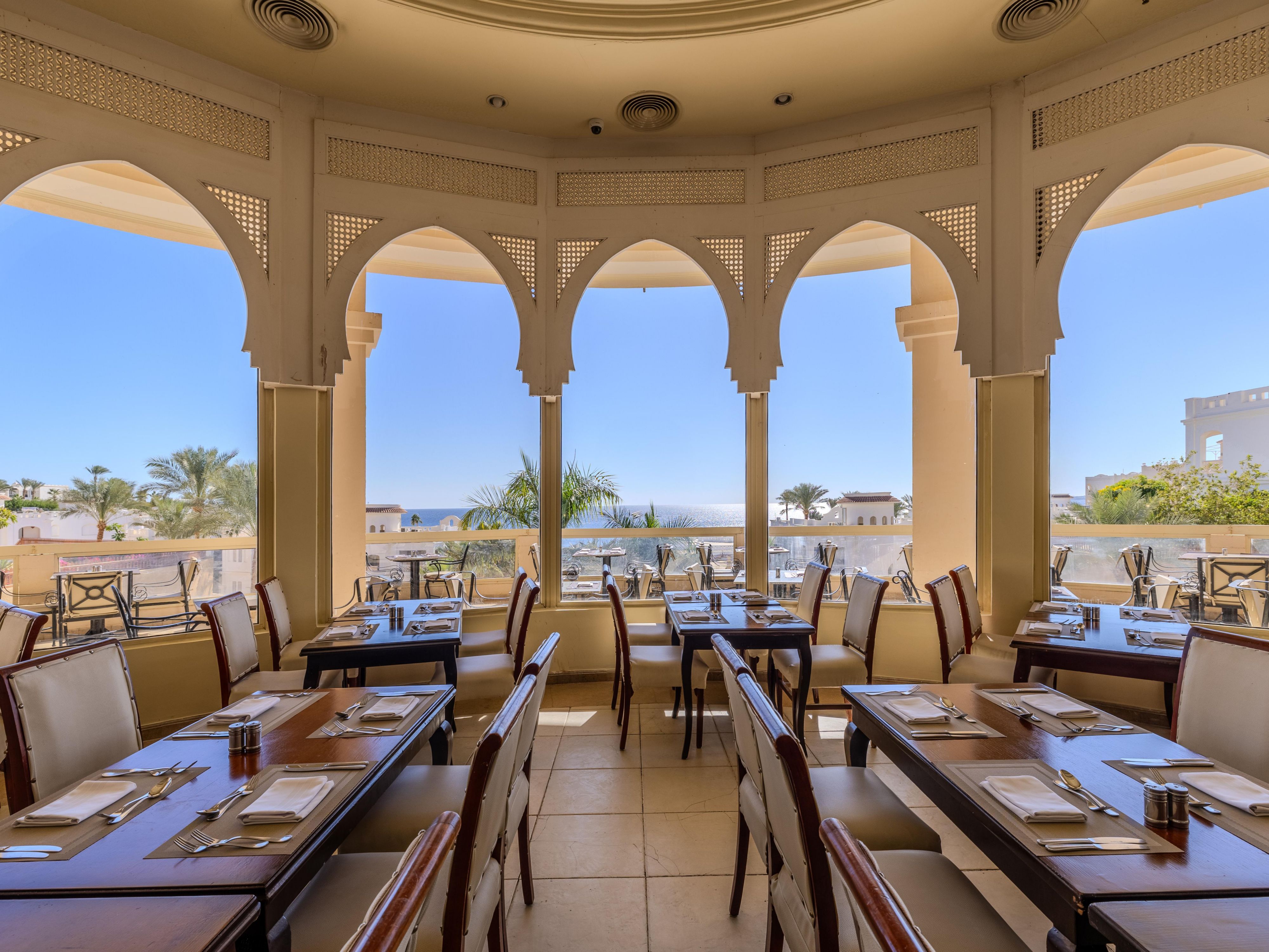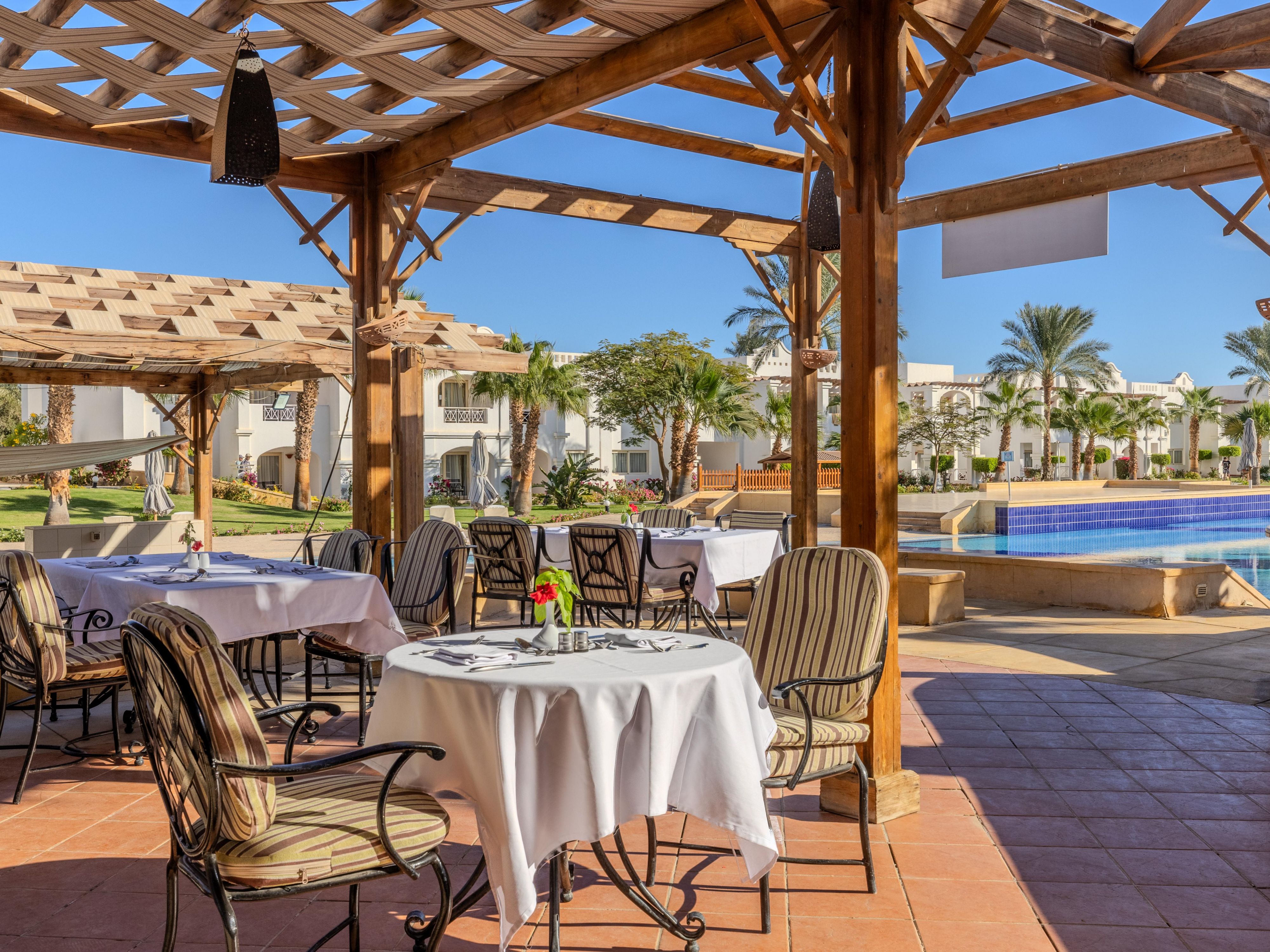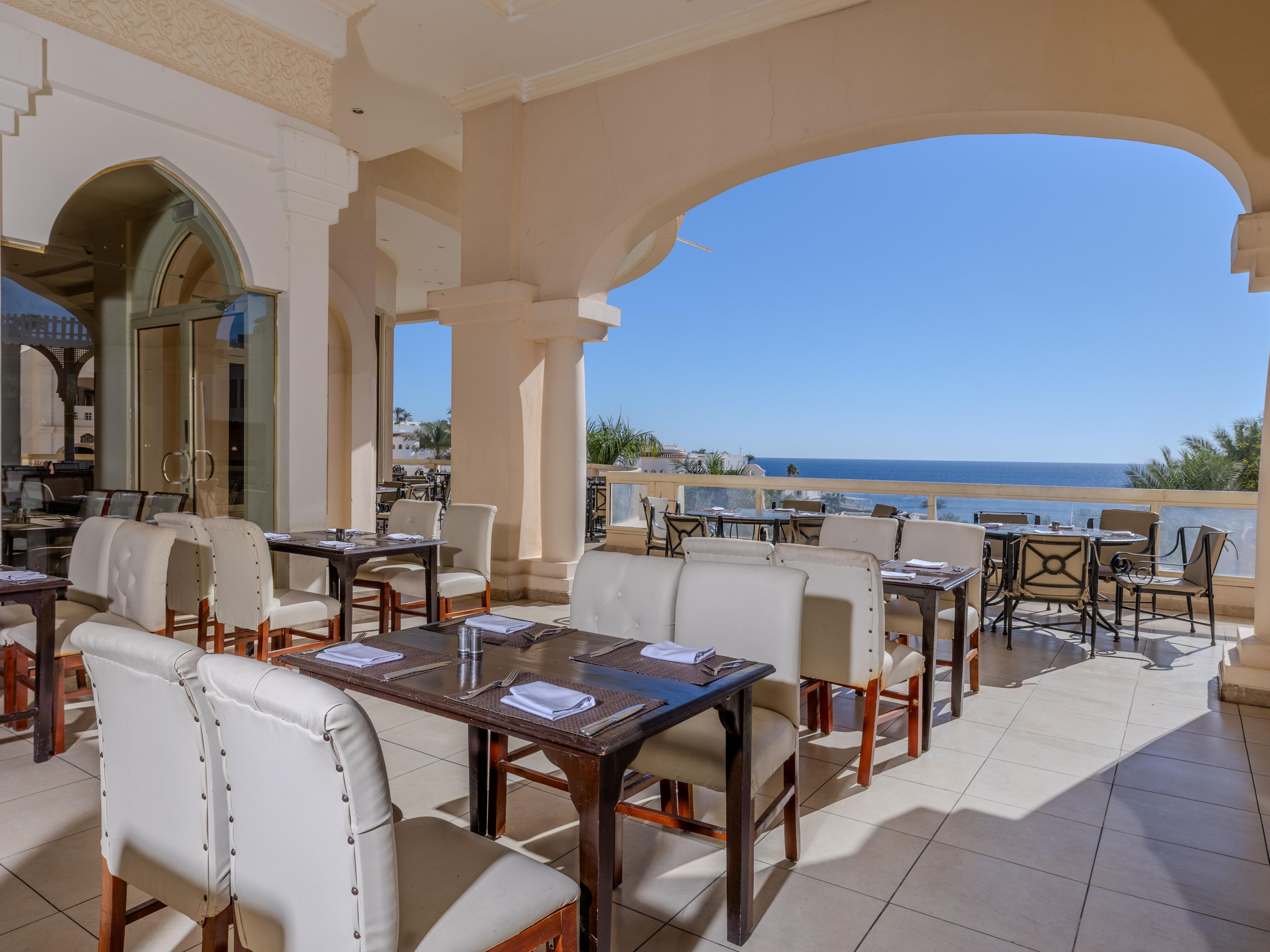 Located in the lobby, Belvedere Bar features an outdoor terrace with stunning views of the Red Sea and pools. Open 24 hours, it’s the ideal spot to relax anytime with your favorite drinks and enjoy the breathtaking scenery.