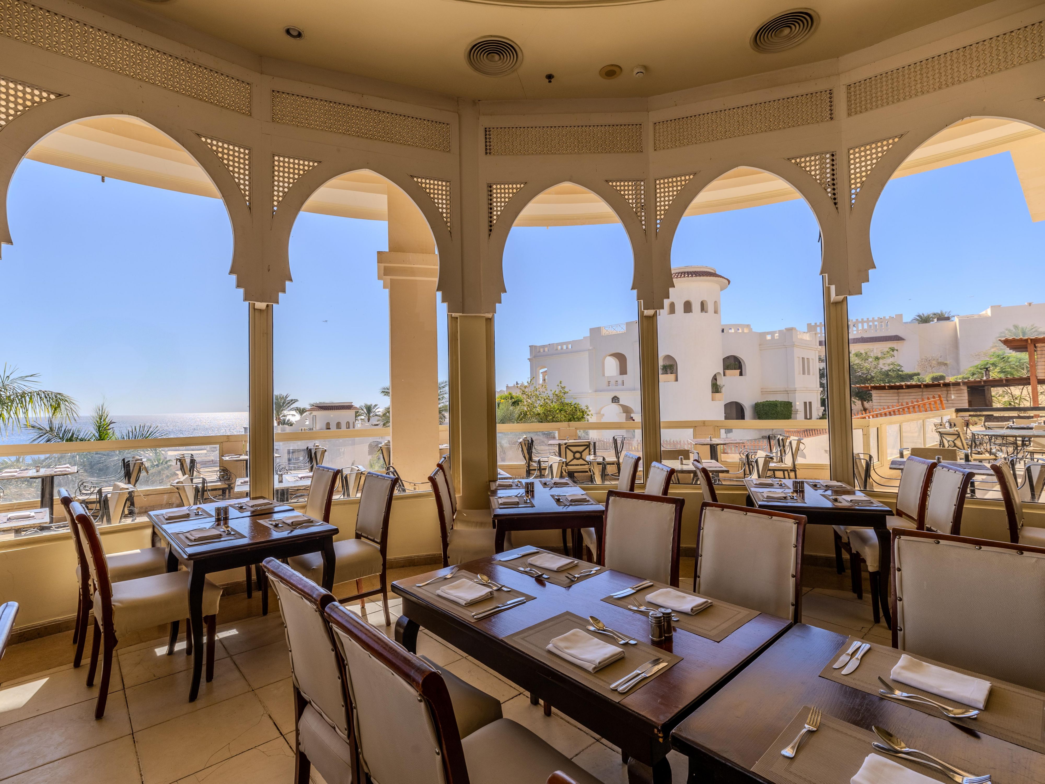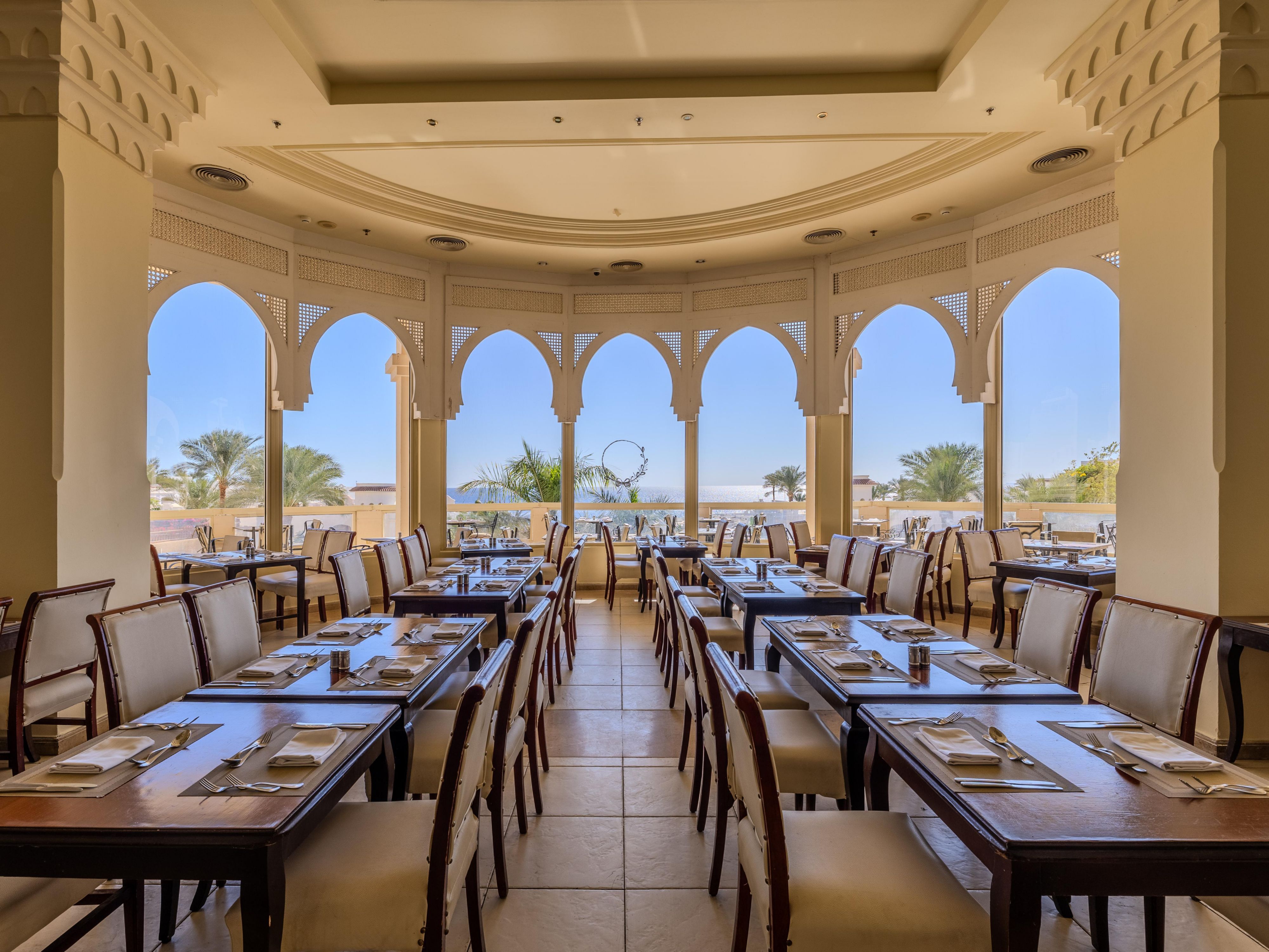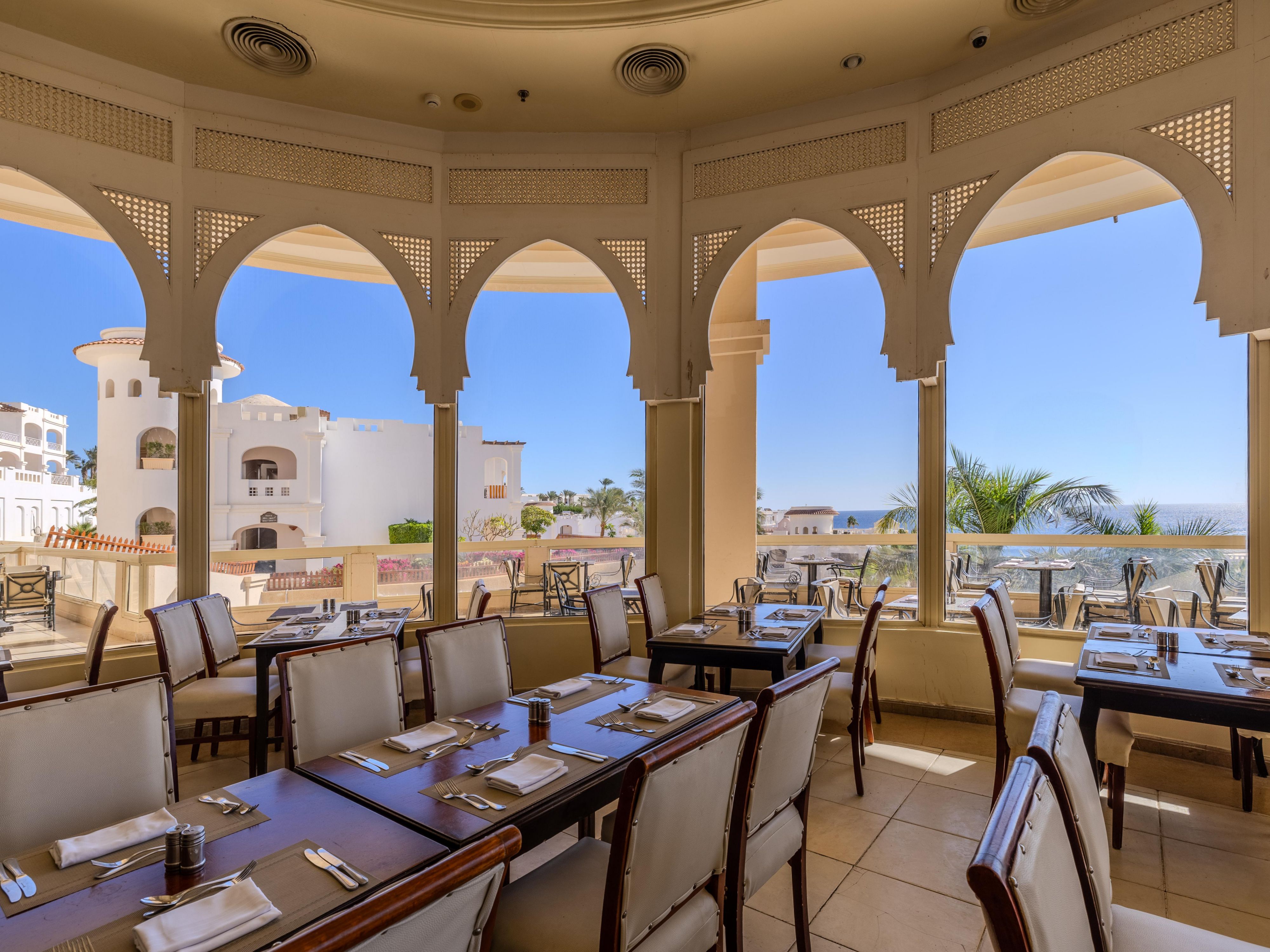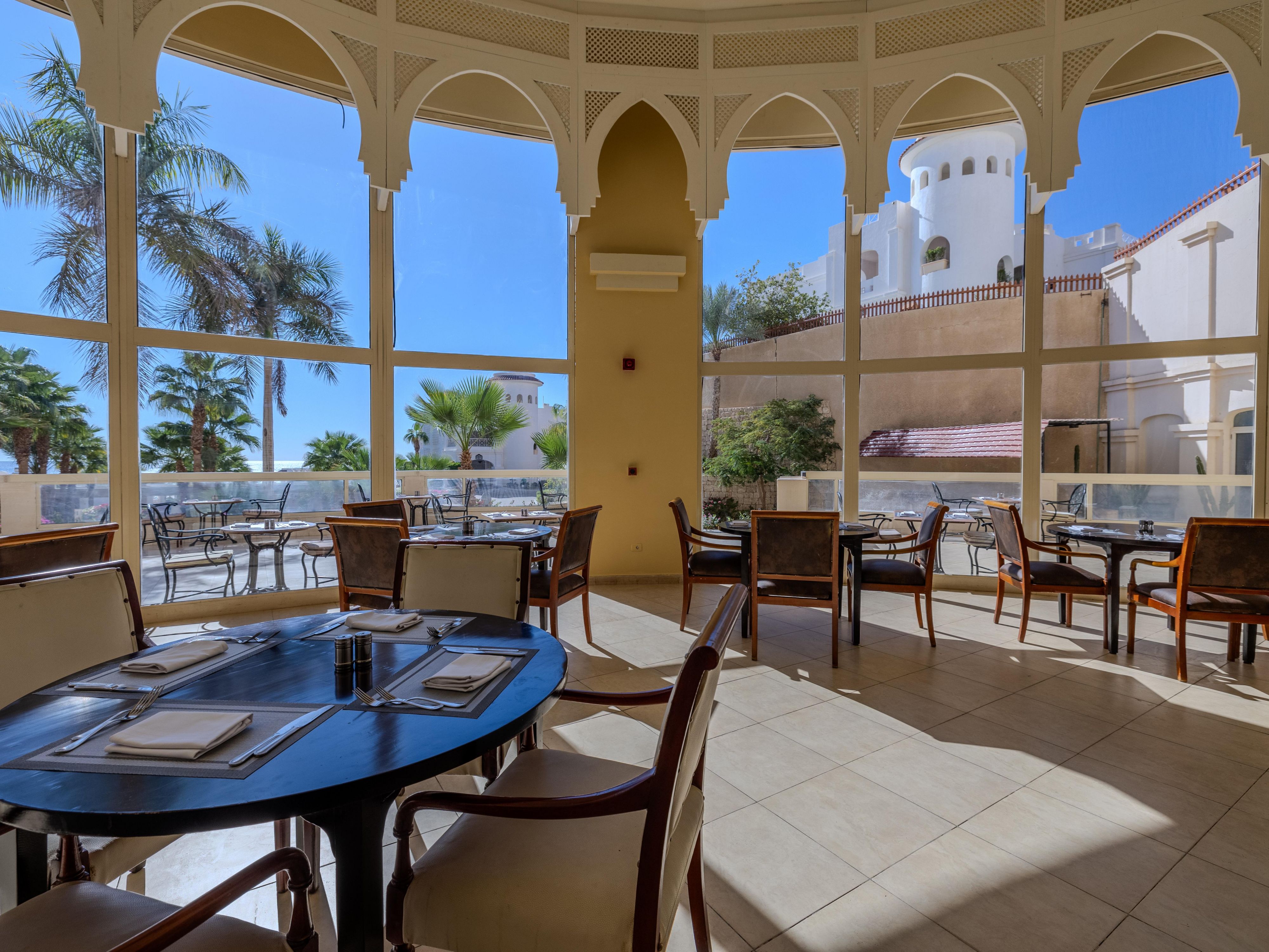 Located in the lobby, Belvedere Bar features an outdoor terrace with stunning views of the Red Sea and pools. Open 24 hours, it’s the ideal spot to relax anytime with your favorite drinks and enjoy the breathtaking scenery.
